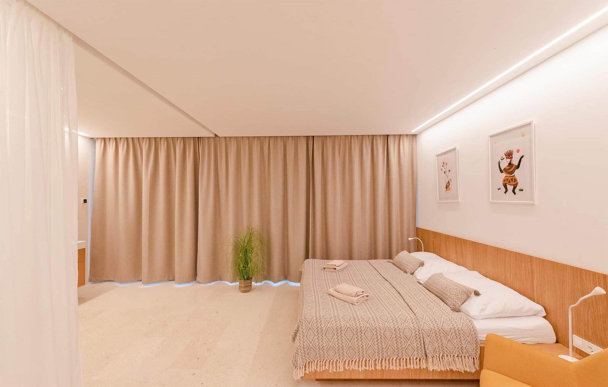 Unn deg selv ro og avslapning i dette stilfulle og romslige feriehuset i nærheten av Zadar. Ikke langt fra sjøen kan du gå inn i det vakre huset og føle deg hjemme i atmosfæren med myke duker, smakfulle møbler og utvalgt innredning. De store rommene innbyr også til å trekke seg tilbake til soverommet, noen med balkong, og lese en bok.