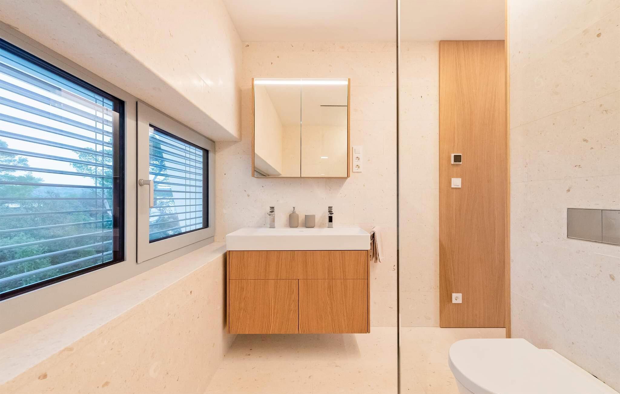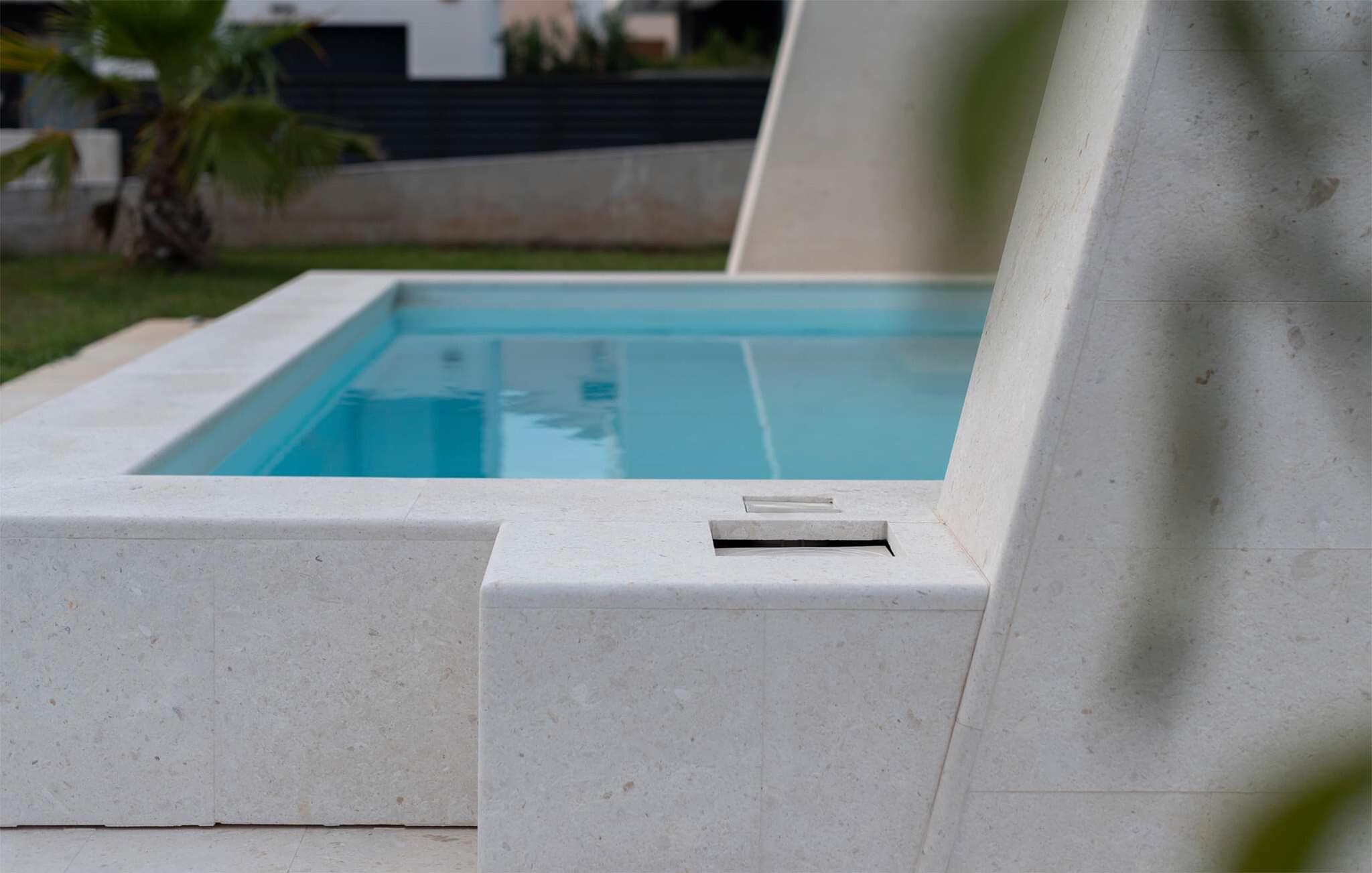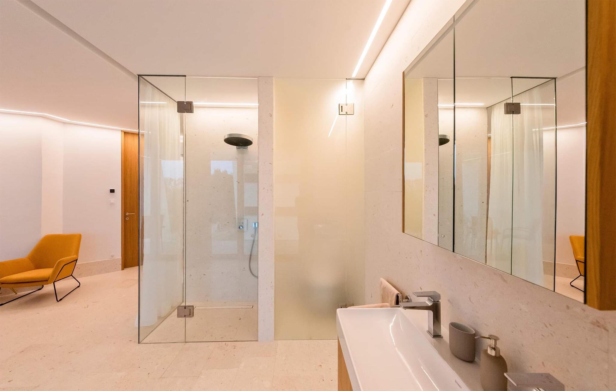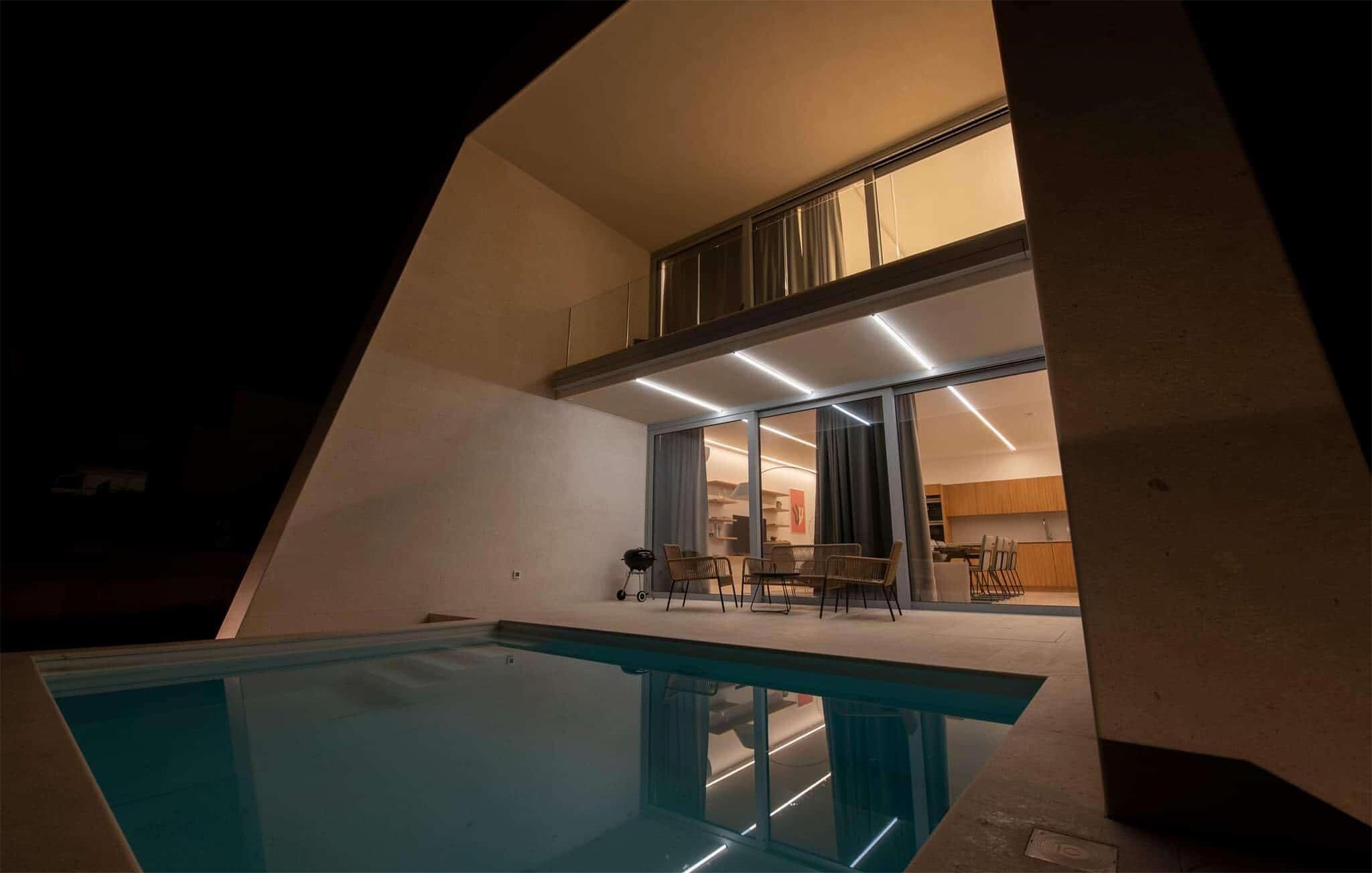 Moderne og arkitektonisk tiltalende feriehus med basseng og havutsikt.