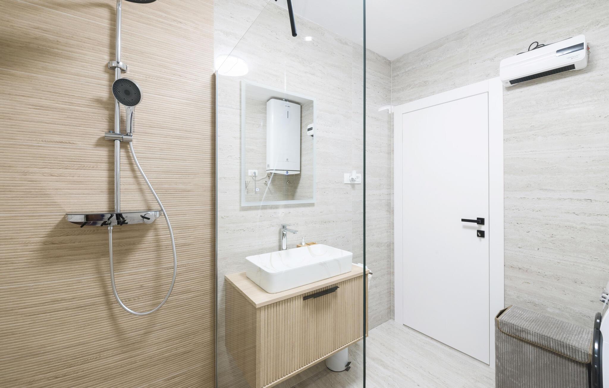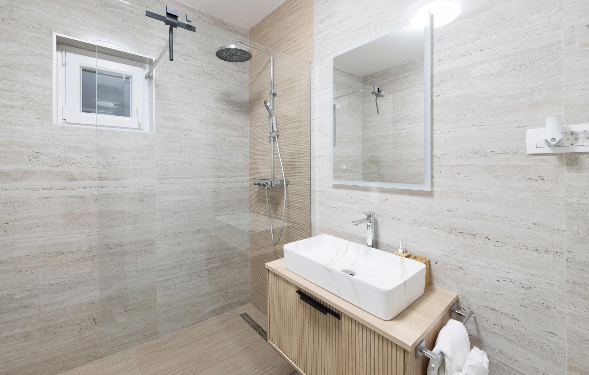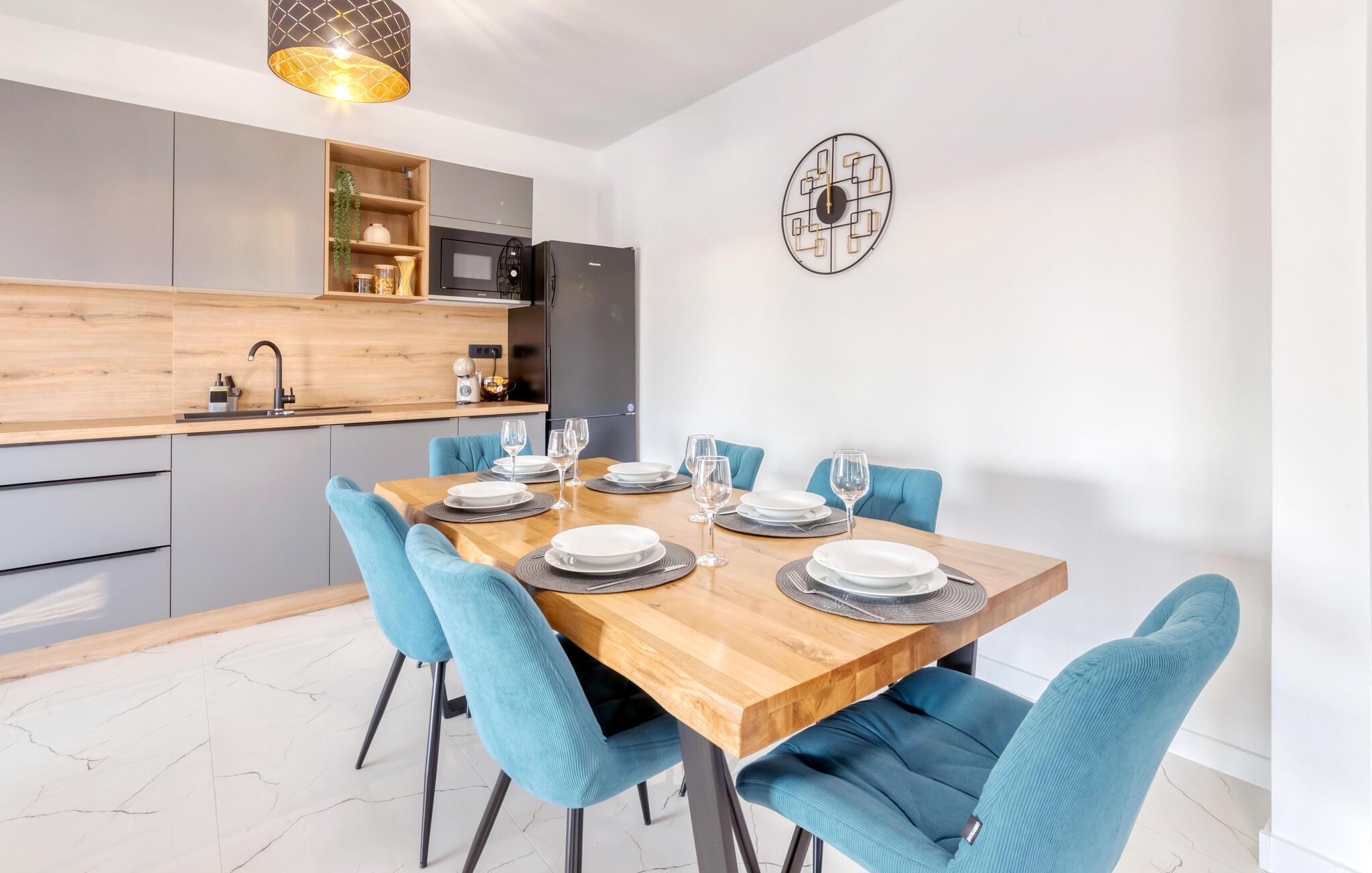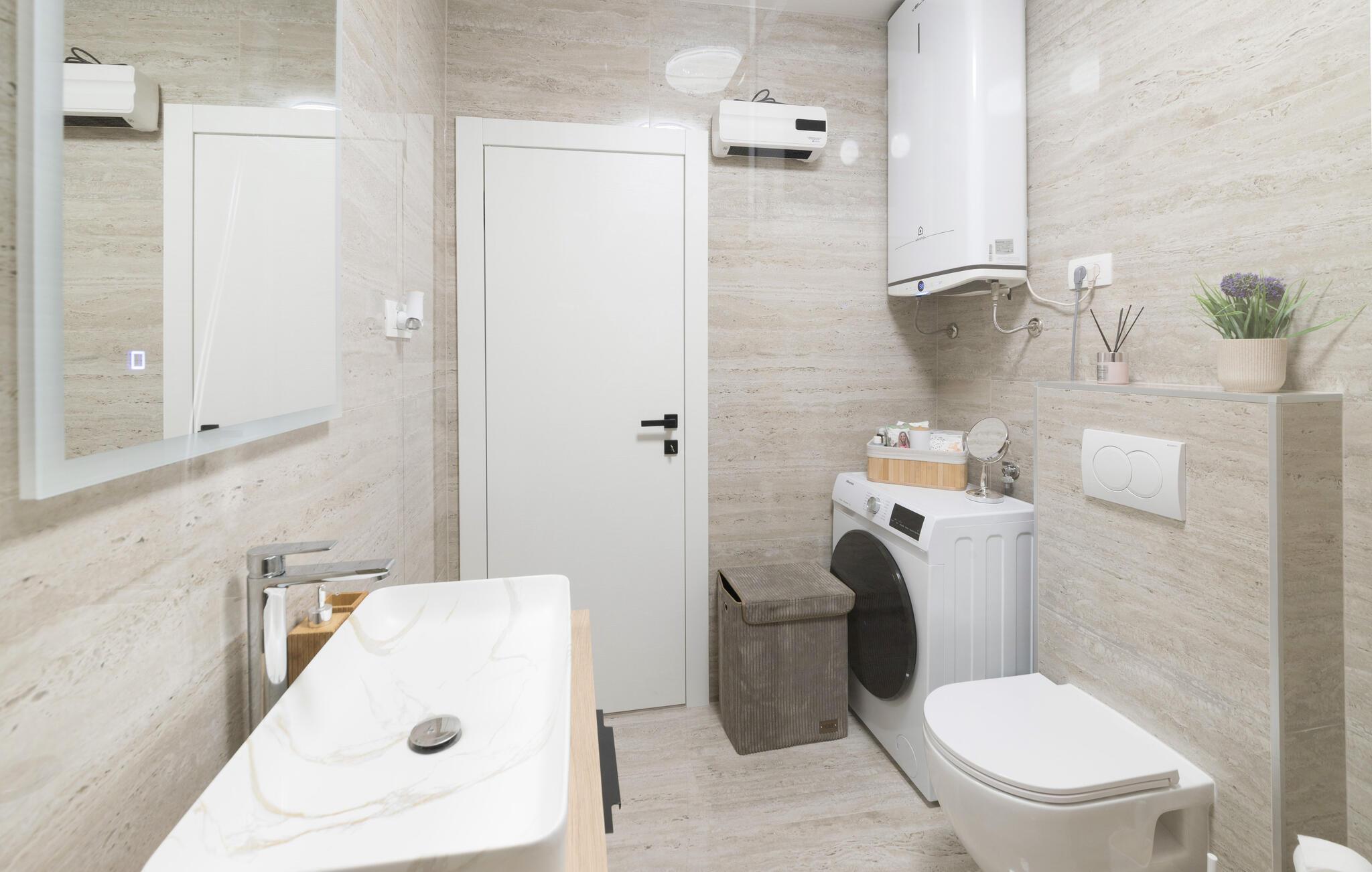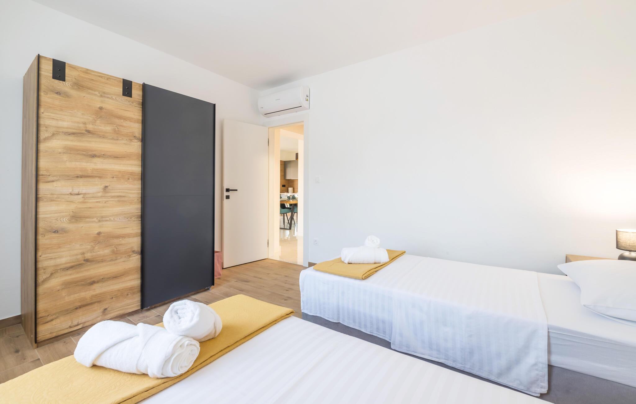 Dette innbydende huset kombinerer stilfull enkelhet med koselig komfort. Store vinduer slipper inn rikelig med lys og skaper en vennlig atmosfære, mens den fargerike sofagruppen innbyr til avslapping og velvære. Lytt til favorittmusikken din, eller slapp av og nyt en serie i strømmemodus. Tilbered deilige måltider på det moderne kjøkkenet, som kan avrundes med et godt glass kroatisk vin.