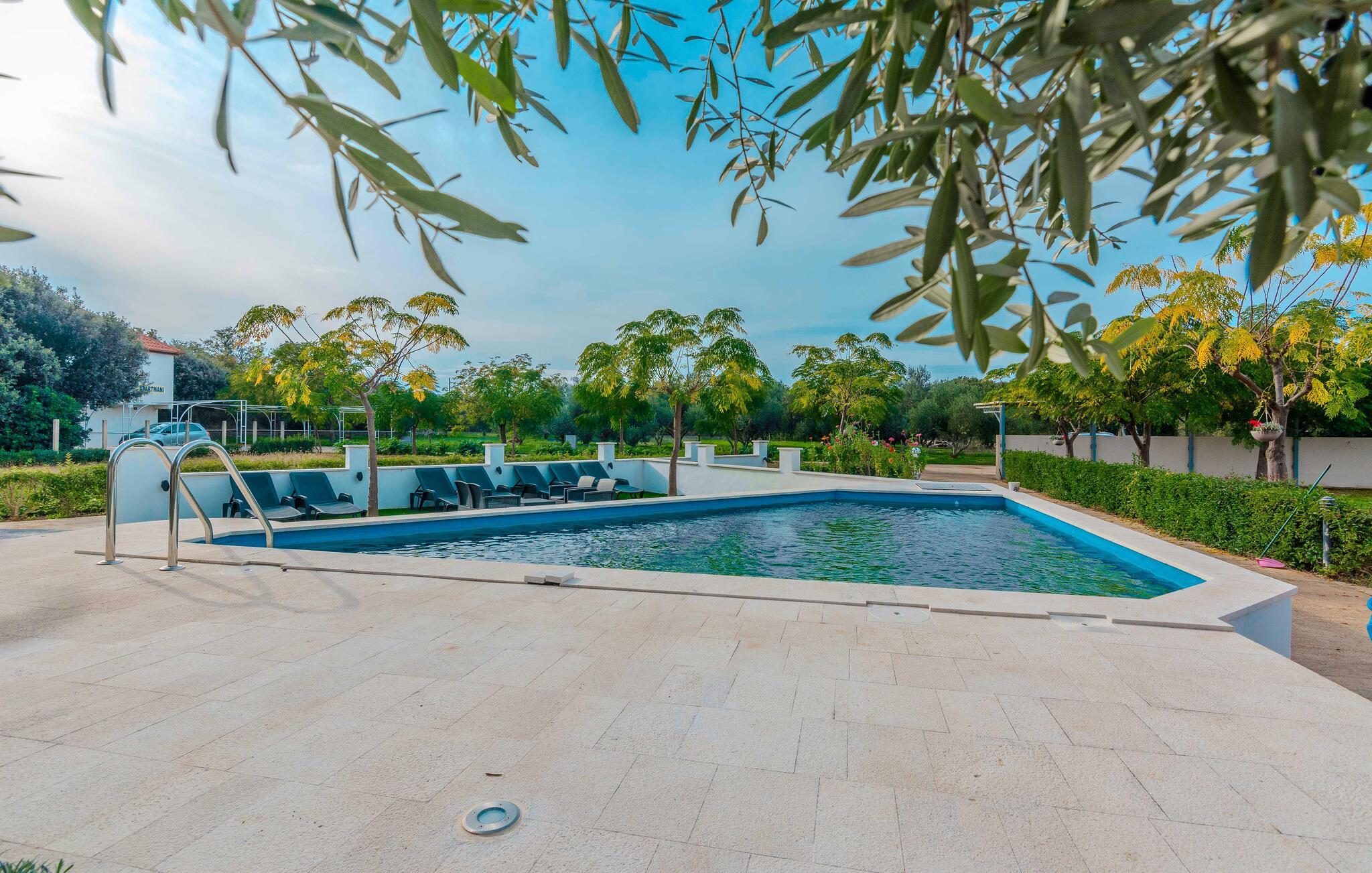 Nyt solen på den private balkongen og lytt til barna som leker. I hagen venter et felles svømmebasseng med solterrasse, ideelt for avslapping mens barna har det gøy på den skyggefulle lekeplassen.