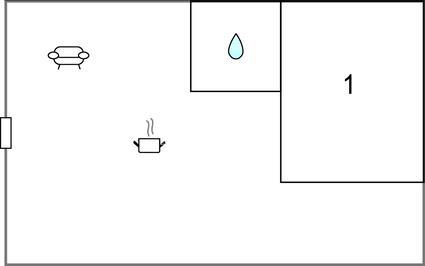 Stue/kjøkken 15m2 - 2 Soveplasser. (Sovesofa, madrass eller lign.).