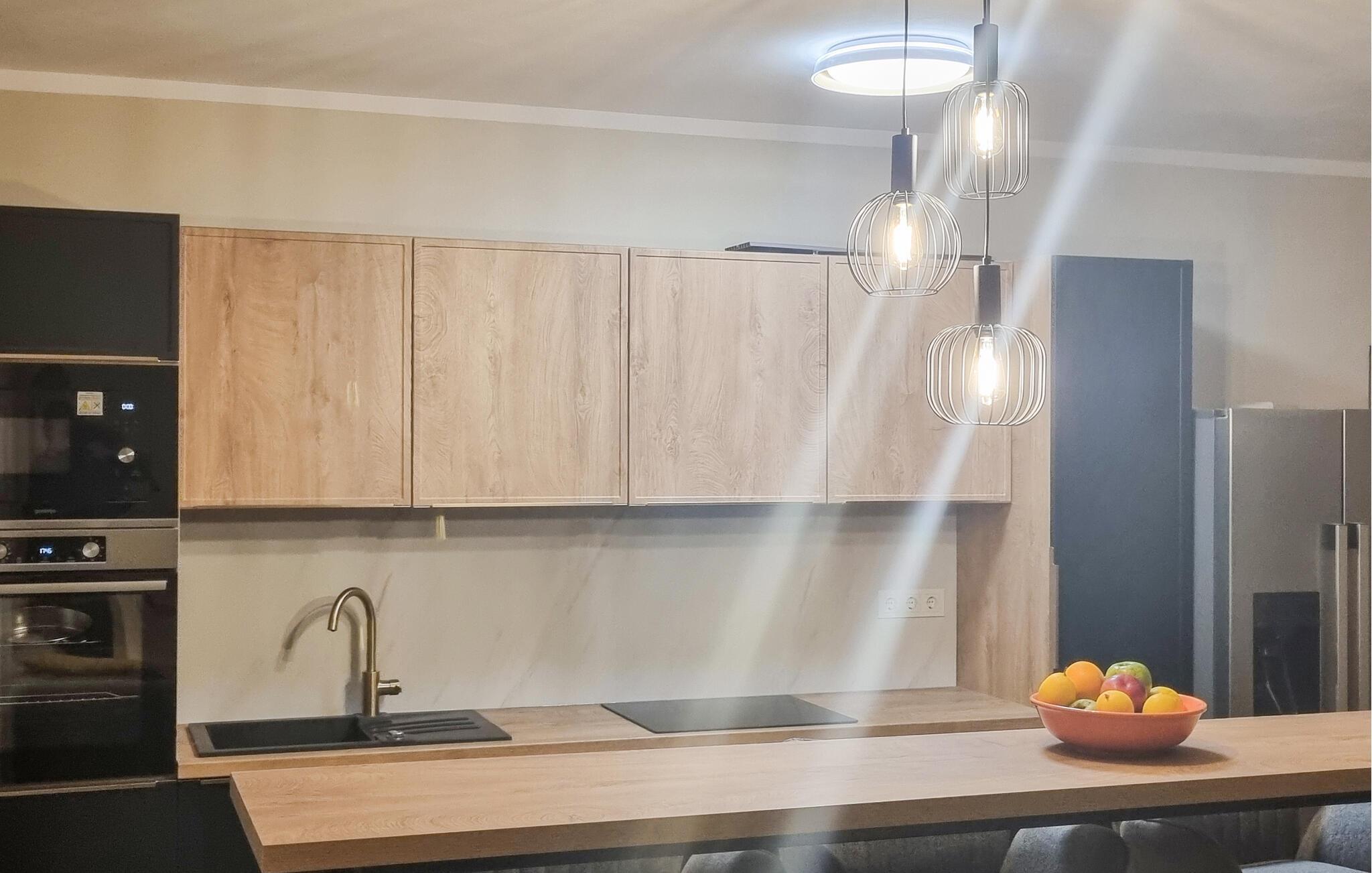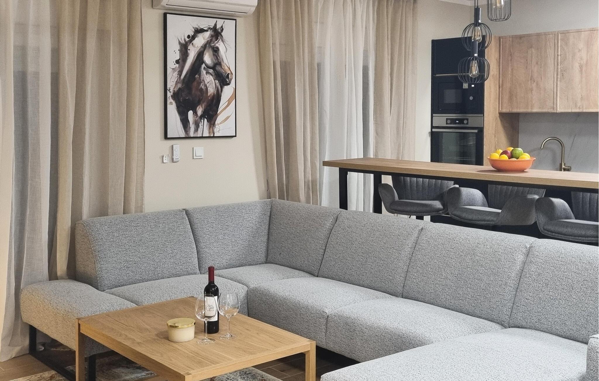 Denne vakre leiligheten kombinerer komfort og hygge slik at du føler deg som hjemme fra første stund. Nyt en avslappende pause i sofalandskapet, lytt til musikk, fordyp deg i ferielesning eller slå av en prat til langt på kveld. Tilbered velsmakende retter på kjøkkenet og skjem bort familien eller vennene dine med et godt glass vin.