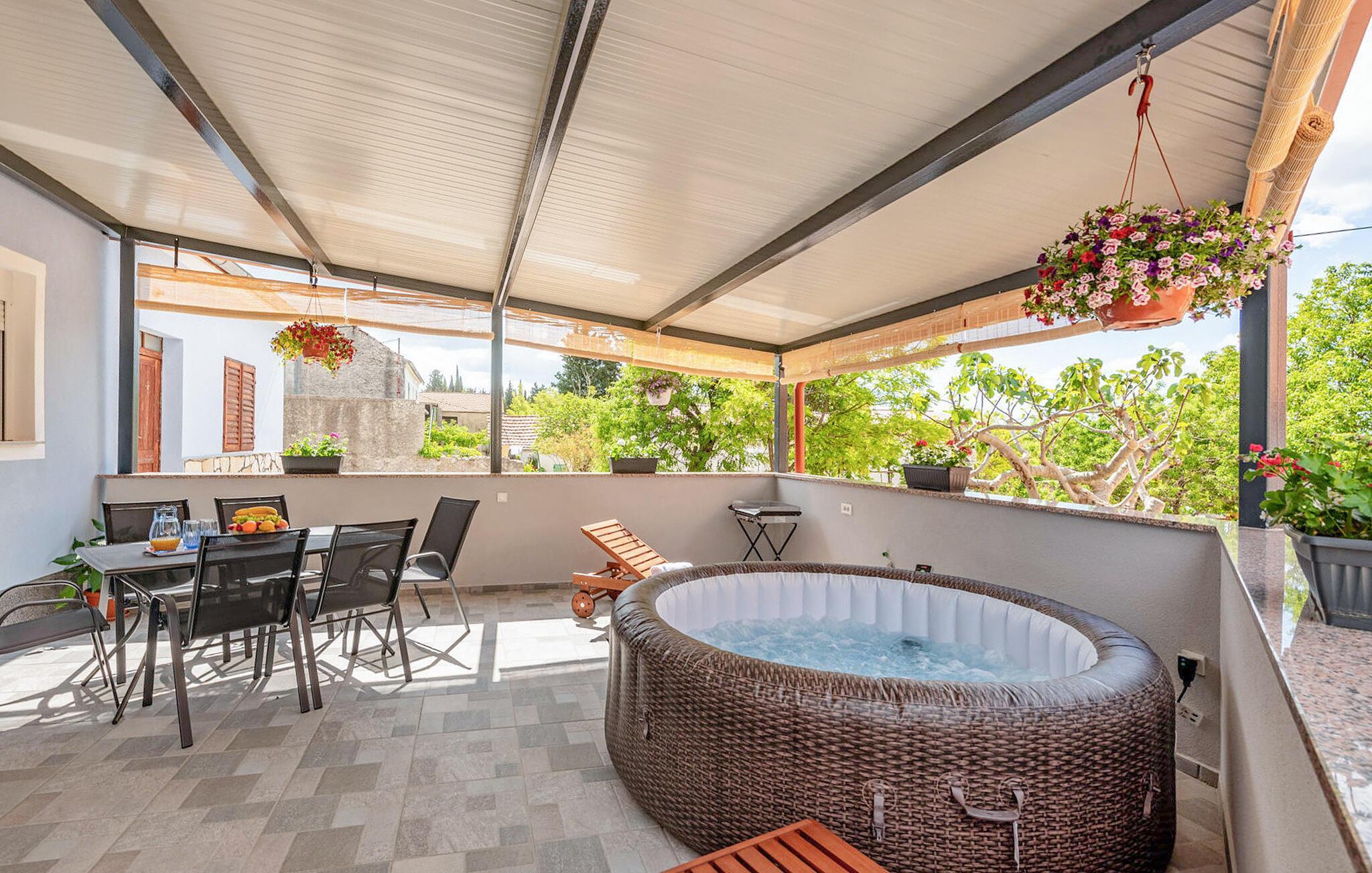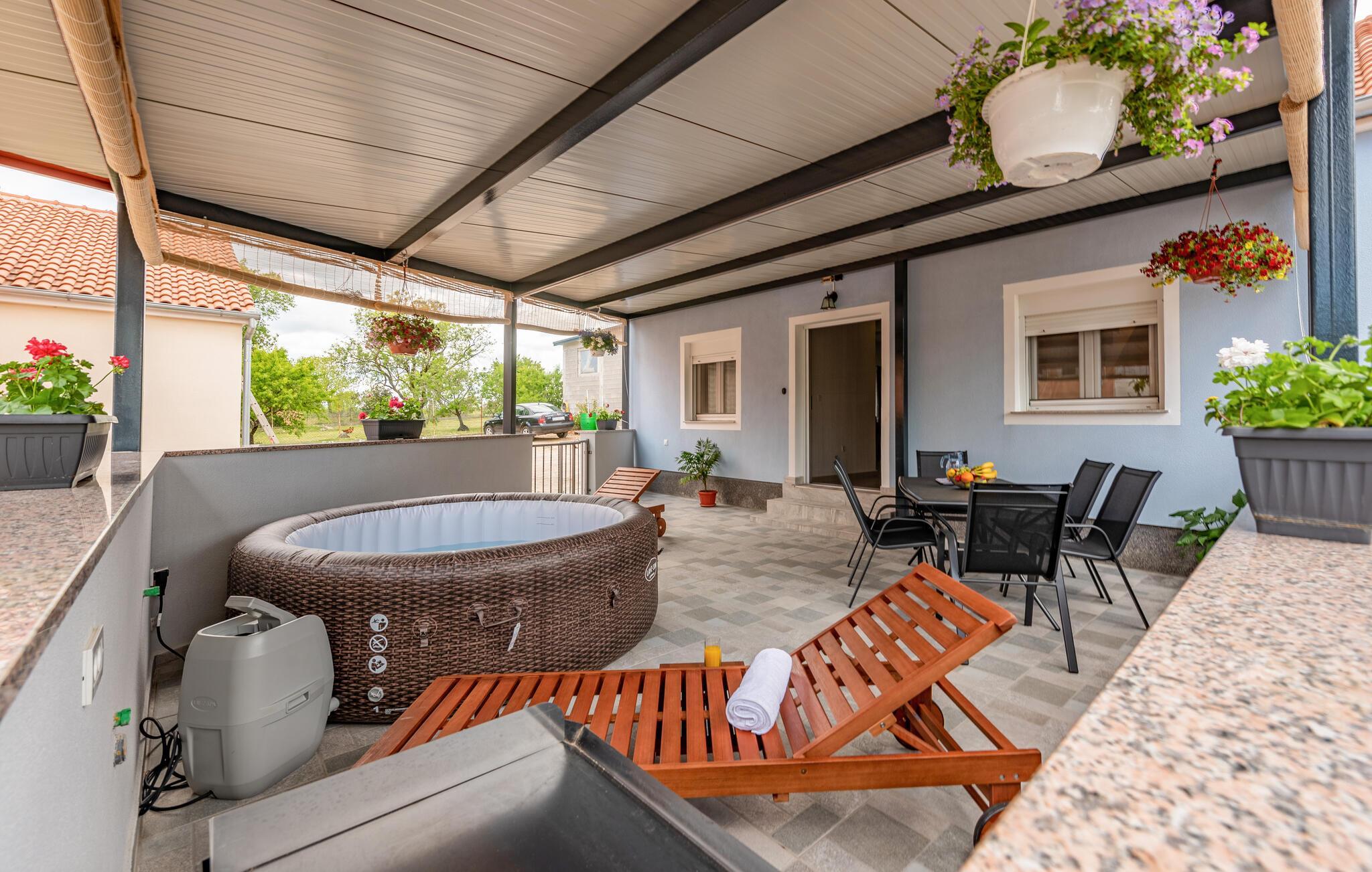 Du kan også slappe av utendørs. Nyt solen på den romslige terrassen, slapp helt av i boblebadet, og senere kan du servere smakfulle godbiter fra grillen til hele familien.