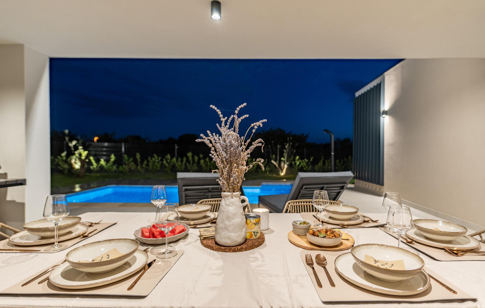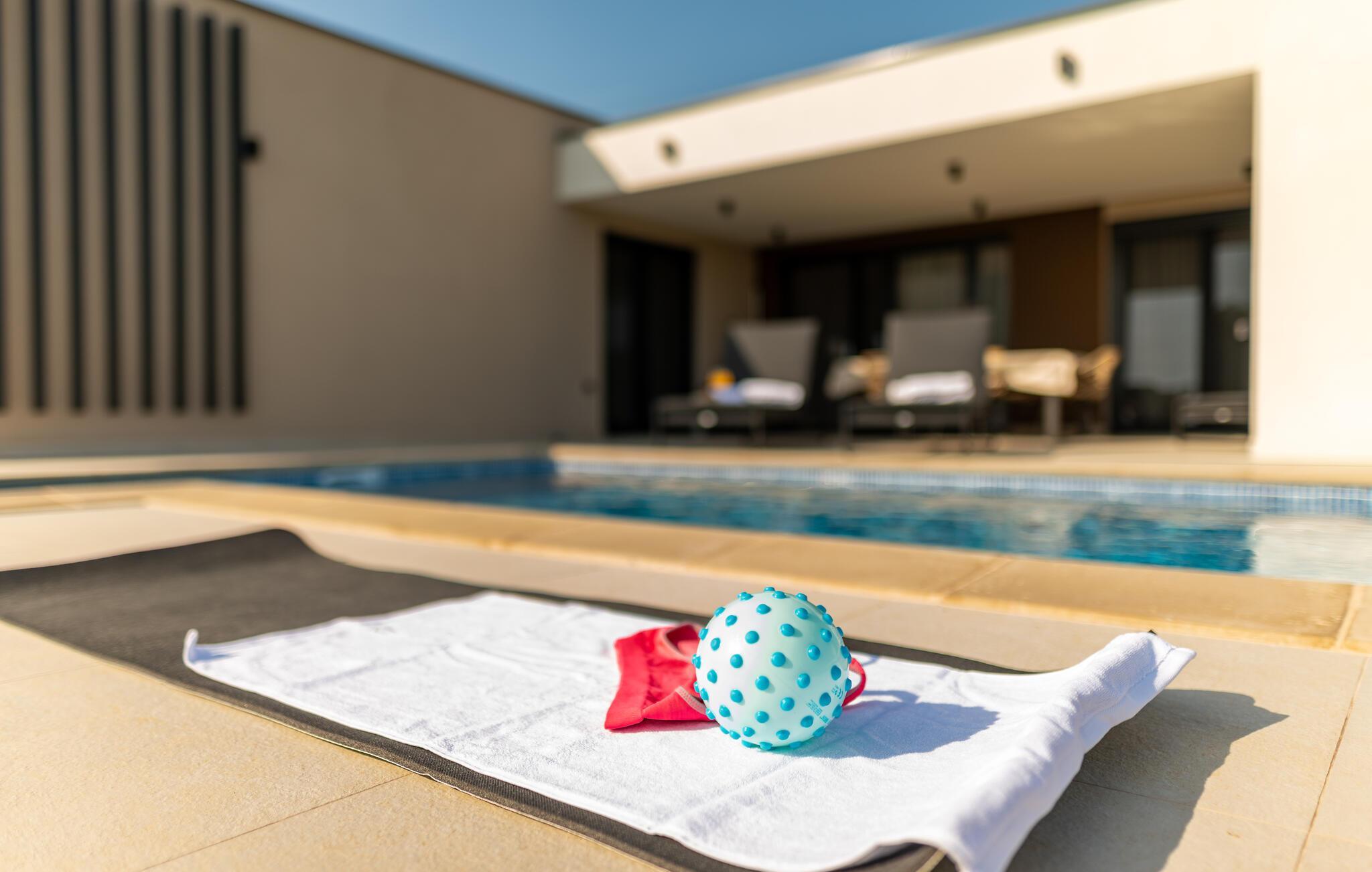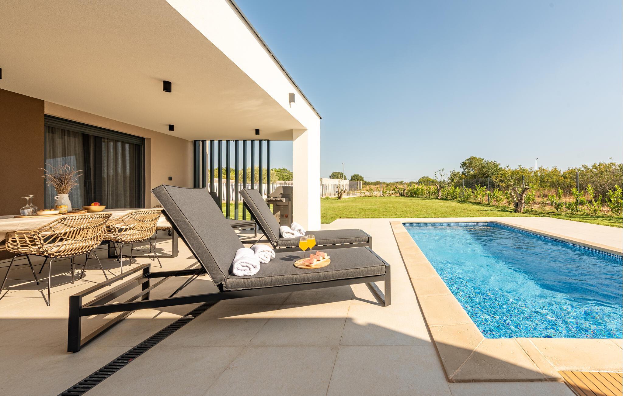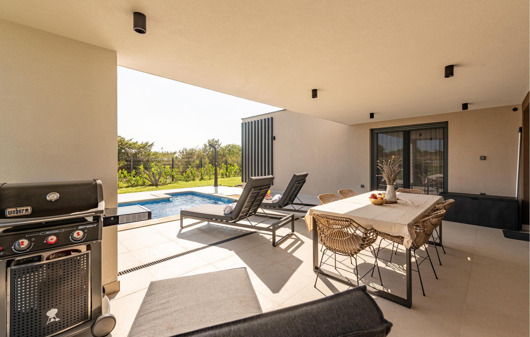 Start morgenen med åpne vinduer og utsikt over hagen og landskapet. Ta en dukkert i bassenget, spill vannpolo eller nyt freden og roen på en solseng. Om kvelden er uteområdet det ideelle stedet for en avslappet grillfest i det fri.