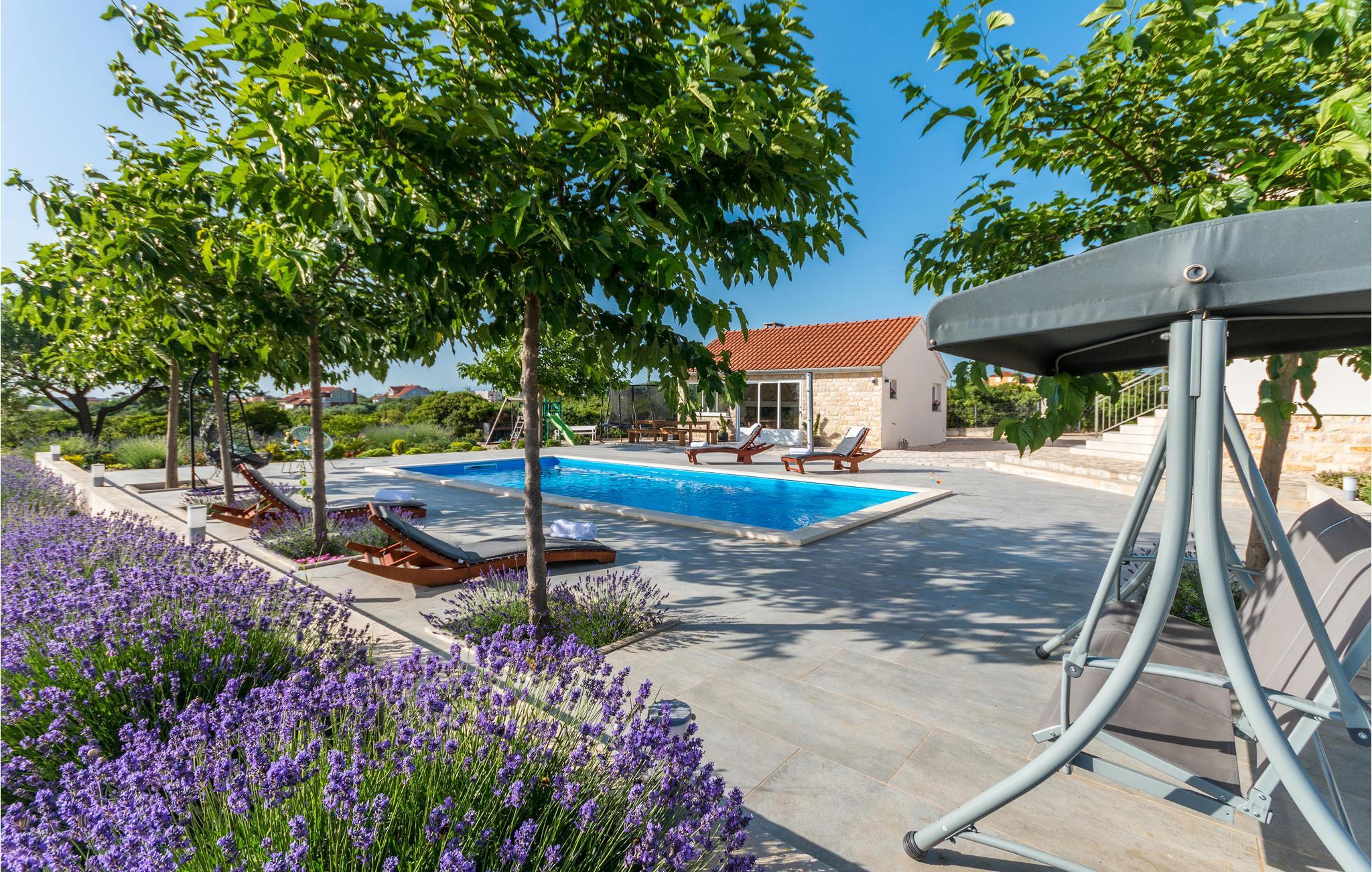 Tilbring et hyggelig opphold i dette smakfulle feriehuset med basseng, omgitt av middelhavsplanter. På den åpne terrassen, som er beskyttet mot nysgjerrige øyne, kan du nyte en forfriskende drink på milde sommerkvelder. La deg inspirere av den vakre utsikten over havet og landskapet. Bassenget med solsenger ligger foran huset, og ved siden av er det grill og lekeplassutstyr for barn. Landsbyen Debeljak ligger omtrent 17 km fra byen Zadar, med mange severdigheter og attraksjoner med moderne arkitektur og et rikt gastronomisk tilbud.