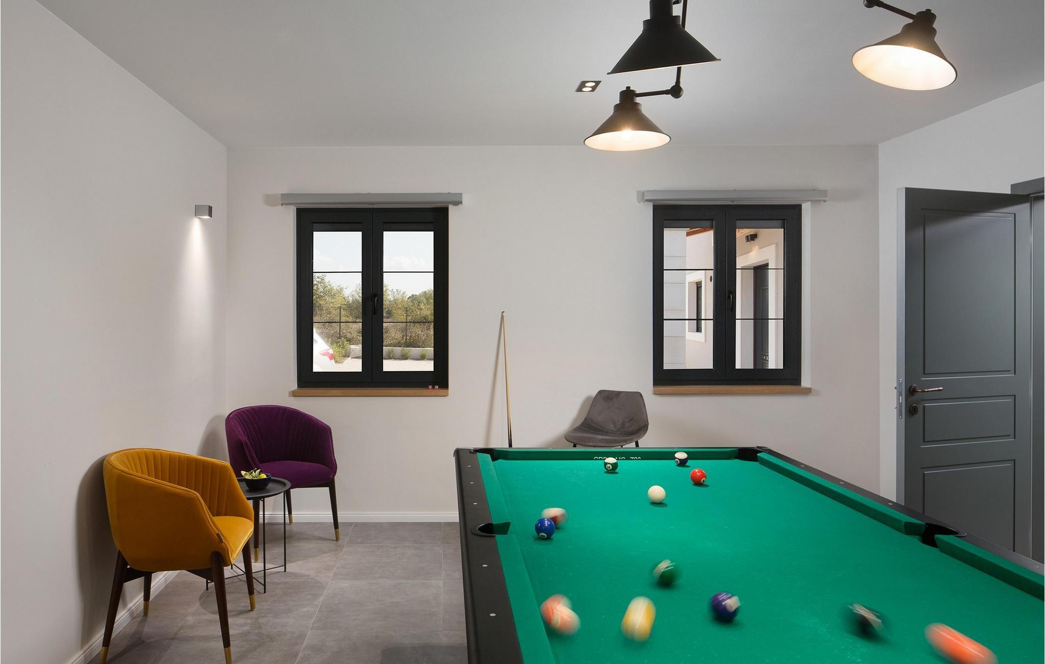 Den romslige Villa Mañana ønsker deg velkommen med et lyst og smakfullt innredet interiør, der moderne design kombinert med stilfulle møbler og rustikke elementer skaper en ekte feelgood-atmosfære. Gled deg til harmoniske måltider ved det innbydende spisebordet, konkurrer ved biljardbordet, dartskiven eller med et brettspill i spillrommet, unn deg koselige stunder i badstuen eller boblebadet og sett deg godt til rette i den koselige stuen om kvelden.