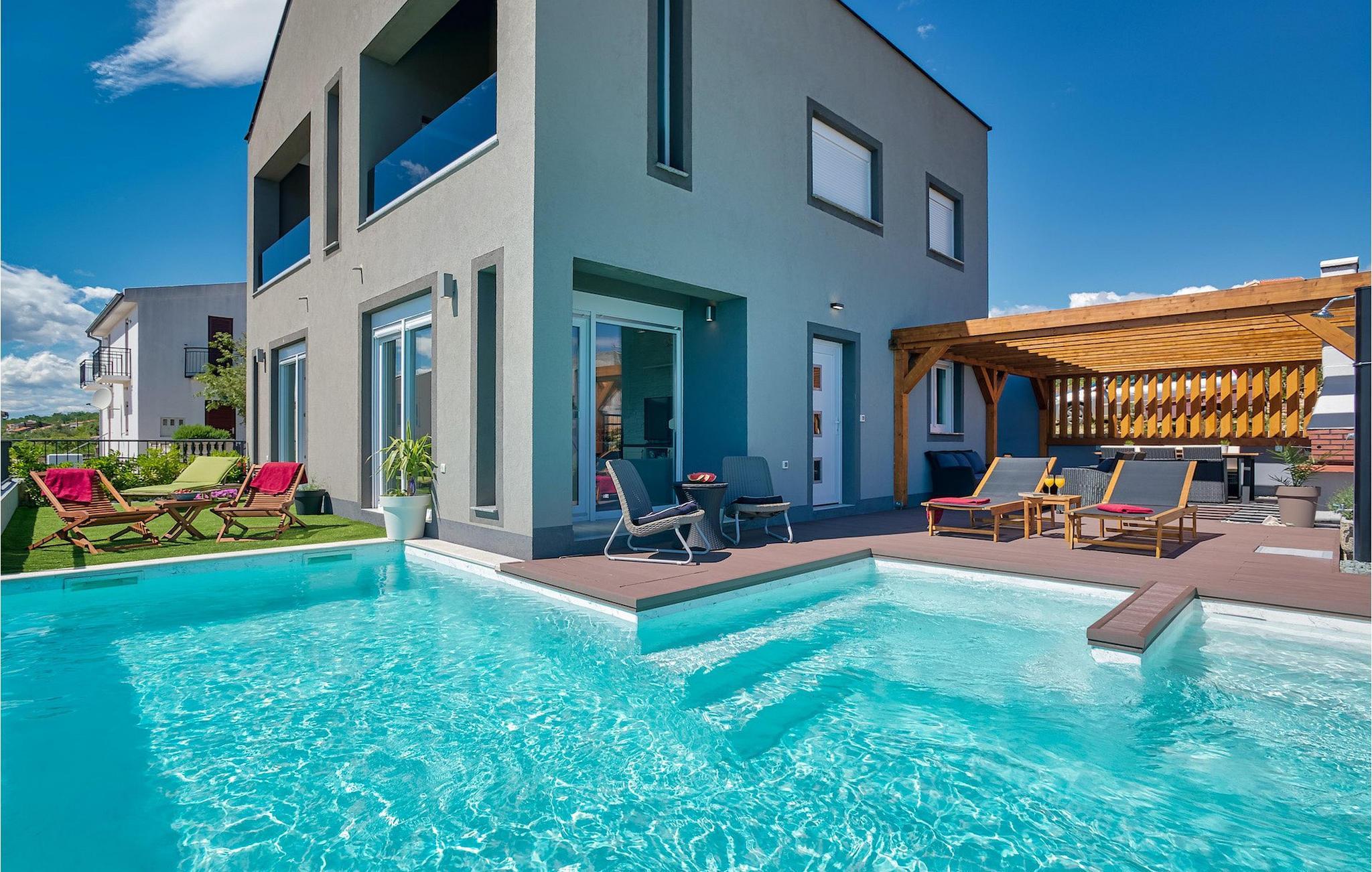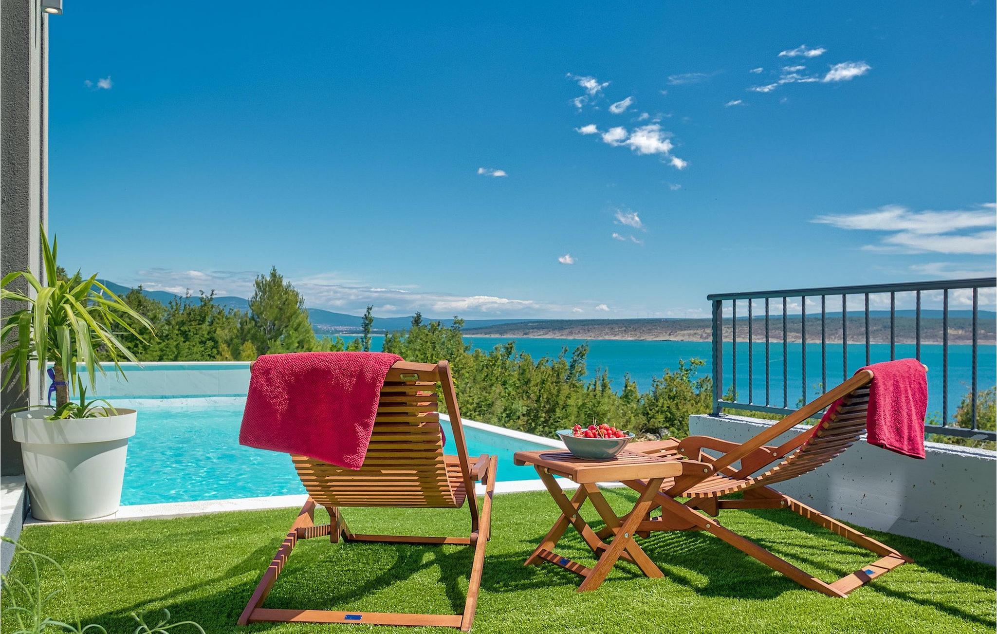 Stilfullt innredet, fantastisk havutsikt, privat basseng og bare 200 meter fra nærmeste strand - Villa Amy har alt som trengs for en ekte drømmeferie! Villaens beliggenhet gir mulighet for avslapning, men tilbyr også en rekke aktiviteter som fotturer, rafting og strikkhopping. Denne villaen er den ideelle innkvarteringen for opptil 10 personer i 4 moderne soverom, hvert med sitt eget luksuriøse bad. To av soverommene i overetasjen er perfekte for familier, da de består av et rom med dobbeltseng og et galleri med to separate enkeltsenger. Disse to soverommene har også en balkong hvor du kan slappe av og nyte den fantastiske panoramautsikten over Novigrad-bukten med en kopp kaffe. Ytterligere to soverom ligger i den lyse førsteetasjen, hvor du også finner hovedoppholdsrommet med kjøkken, stue og spiseplass. De store glassflatene gir rikelig med naturlig lys og flott havutsikt fra alle hjørner av rommet. Kjøkkenet er fullt utstyrt og har alt du kan tenkes å trenge under oppholdet. Den andre spiseplassen ligger på den overbygde terrassen, hvor du kan tilberede favorittrettene dine på kullgrillen. Terrassen er et flott sted å slappe av, med salongområde, koselige solsenger og selvfølgelig det fantastiske private bassenget. Villaen ligger i et rolig område, ca. 2 km fra nærmeste by, Maslenica. Beliggenheten er ganske uvanlig sammenlignet med de fleste steder på Adriaterhavskysten, takket være den spesielle geografiske posisjonen. Den nærmeste stranden ligger 200 meter fra villaen, men du kan også nå kysten hvis du drar nordover (kysten ved foten av Velebit-fjellet) eller sørover (Zadar-området). Elvekløften Zrmanja, som er kjent for rafting, ligger bare noen kilometer fra villaen. Det mest populære strikkhoppstedet i regionen ligger på Maslenica-broen. Nærheten til fjellene byr på mange muligheter for fotturister. Hvis du vil utforske området rundt, anbefaler vi at du besøker den historiske byen Nin og regionens hovedstad Zadar (begge ca. 40 kilometer fra villaen). I denne delen av Dalmatia er det 3 naturparker - Telaica, Nord-Velebit og Vrana-sjøen, samt 5 nasjonalparker - Paklenica, Plitvice, Kornati, Krka og Velebit, noe som gjør Zadar til det beste turistområdet i Kroatia.