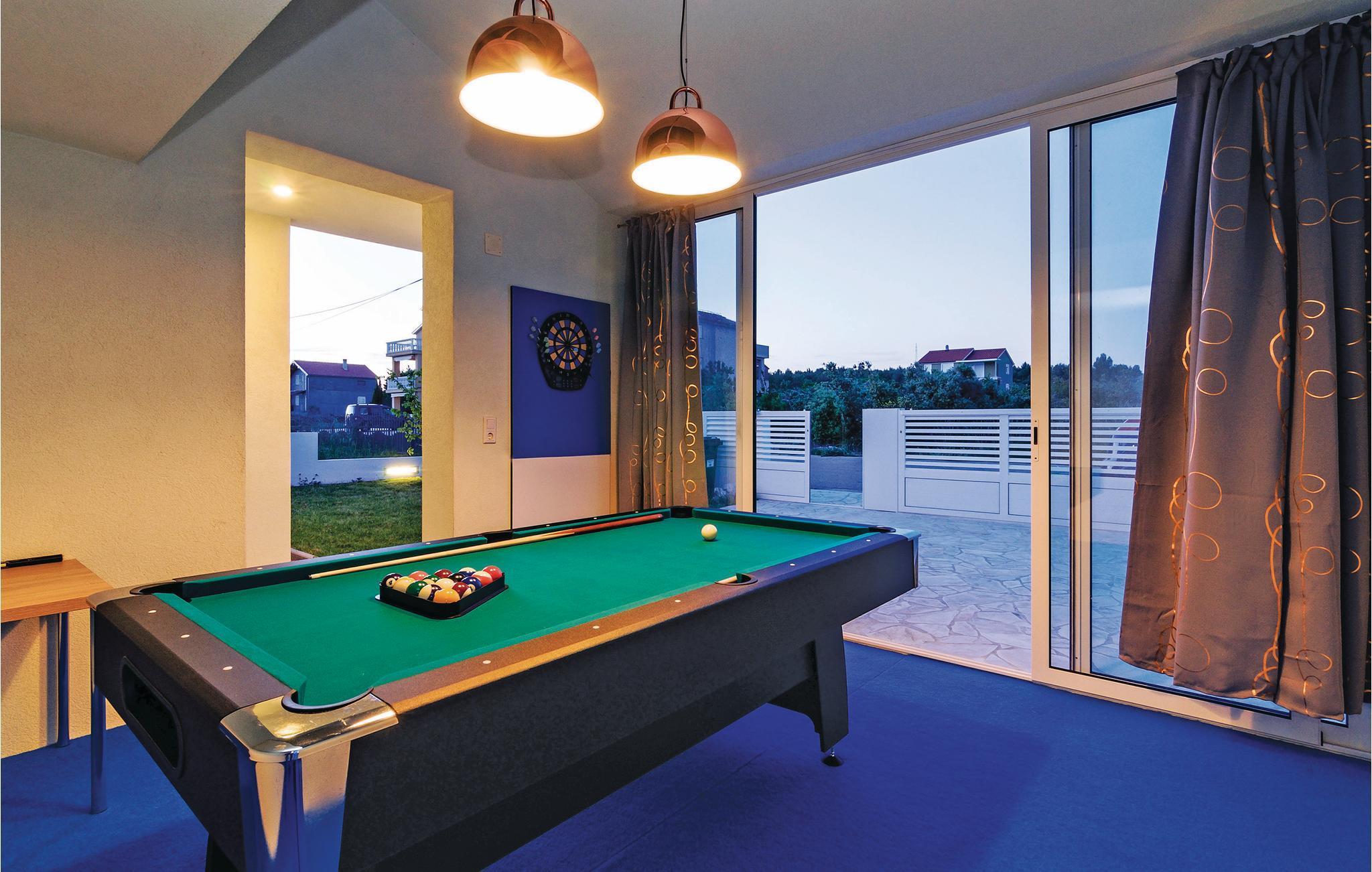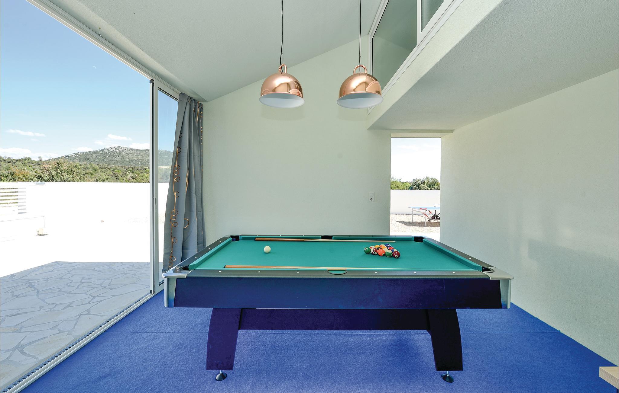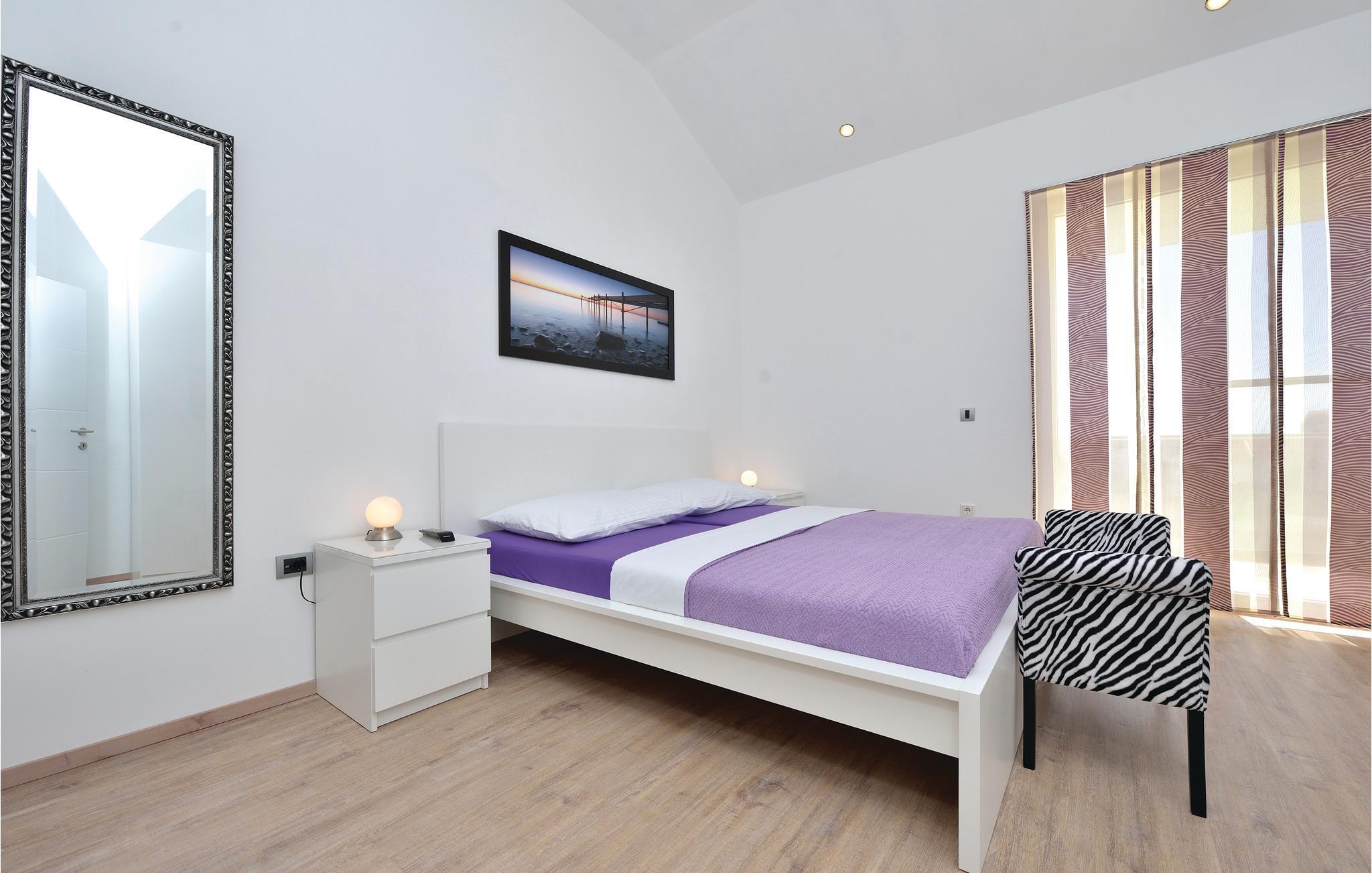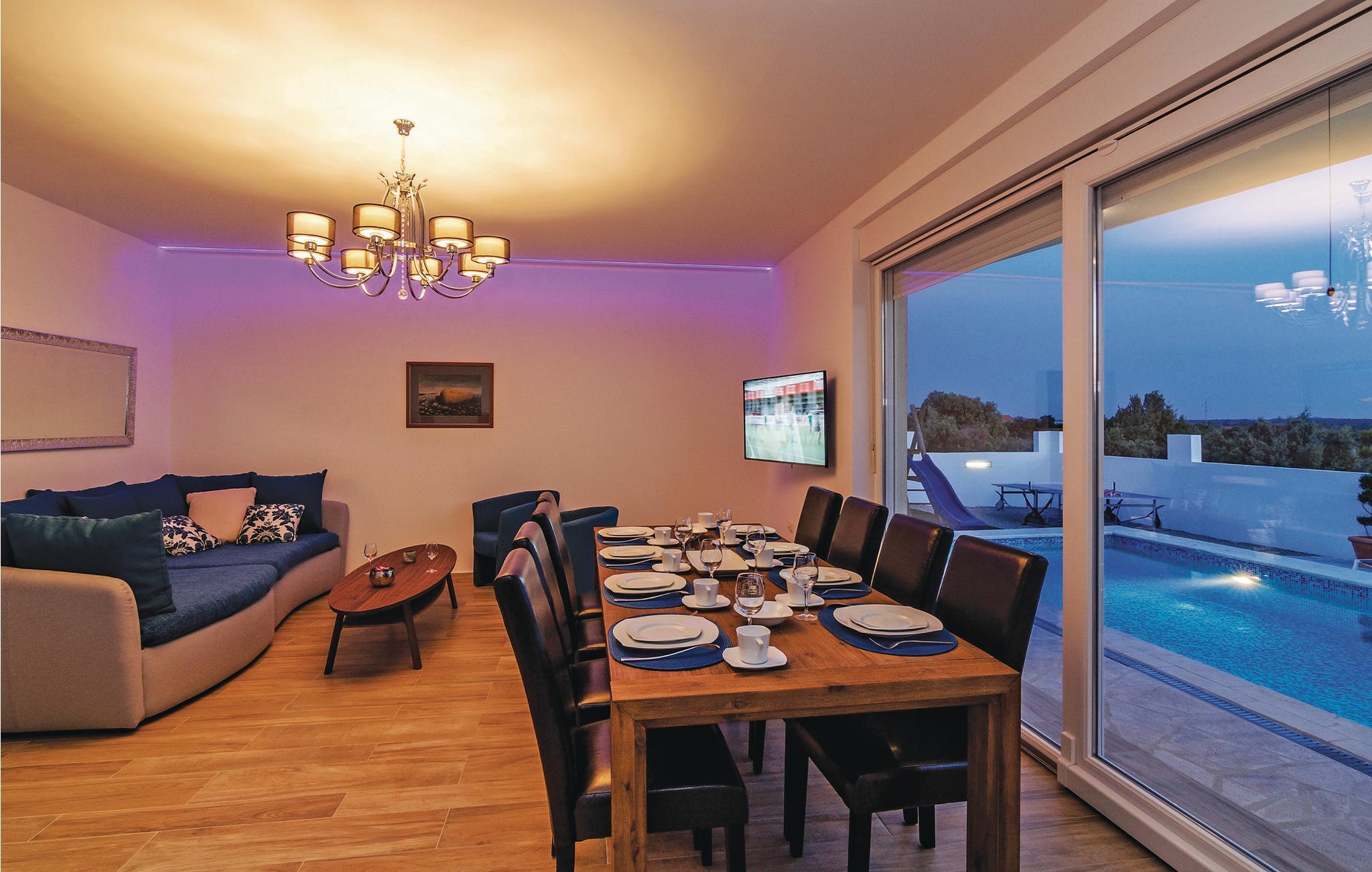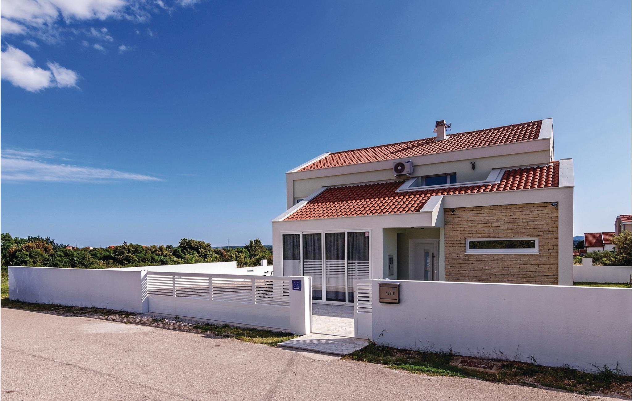 Dette fullt utstyrte og stilfullt møblerte feriehuset ligger på en tomt på 600 m2. Fra balkongen i første etasje har du delvis utsikt over Vrana-sjøen, som du absolutt bør besøke under oppholdet. Innkvarteringen har fire soverom, et fullt utstyrt kjøkken og en spisestue. I rekreasjonsrommet finner du biljard og dart. Fuglekikkere vil glede seg over det nærliggende ornitologiske reservatet, og det er også muligheter for ridning.