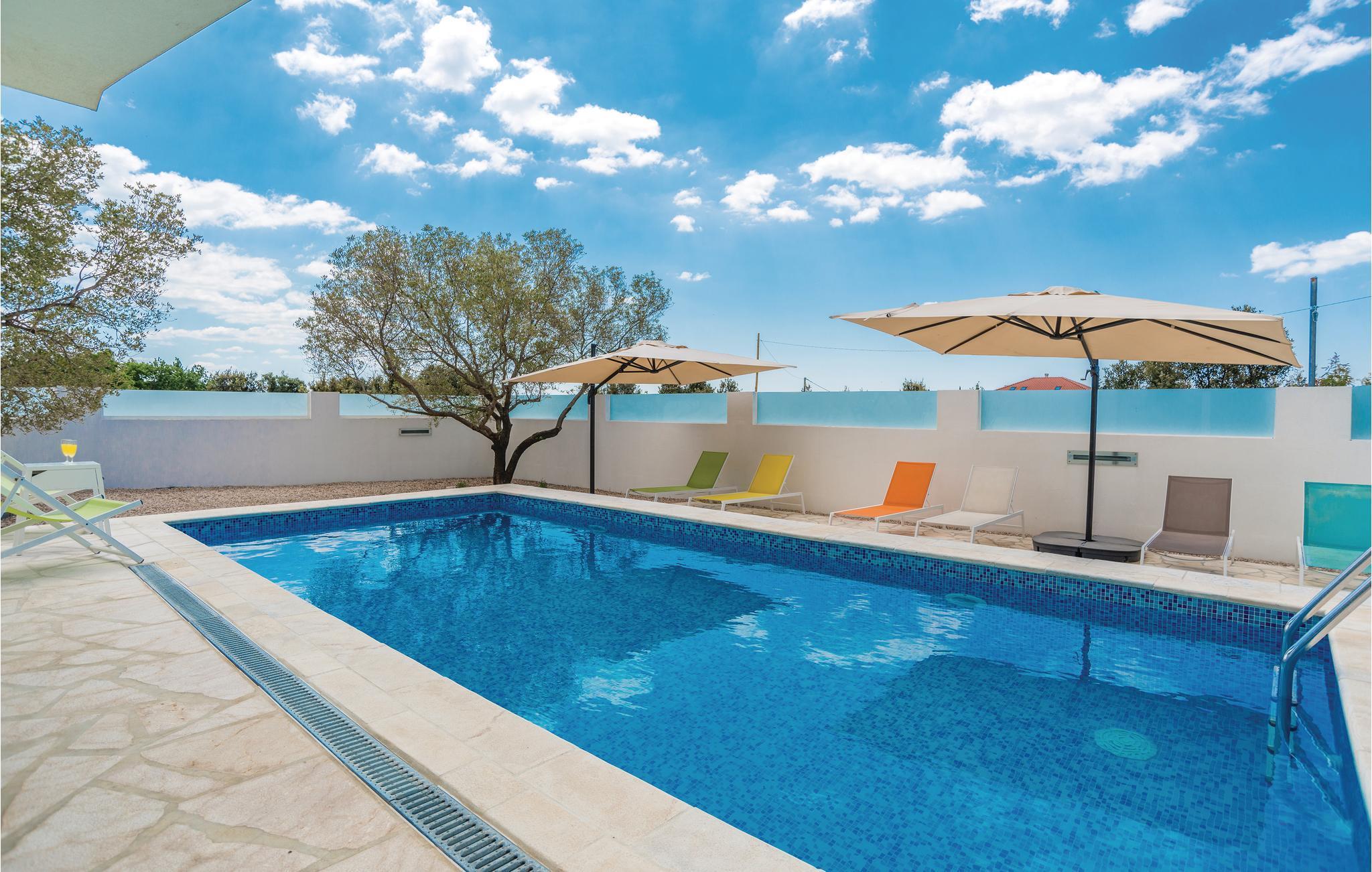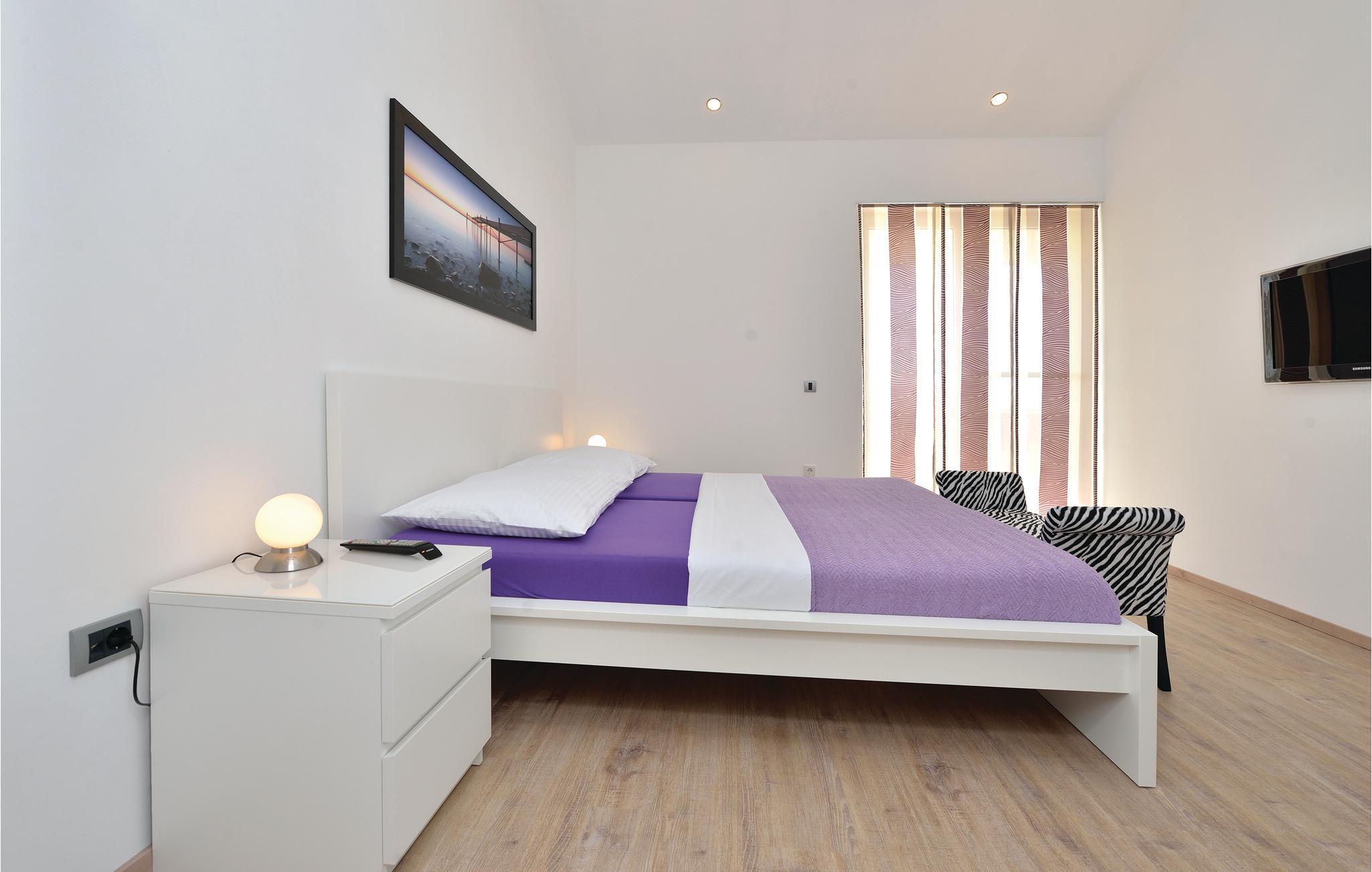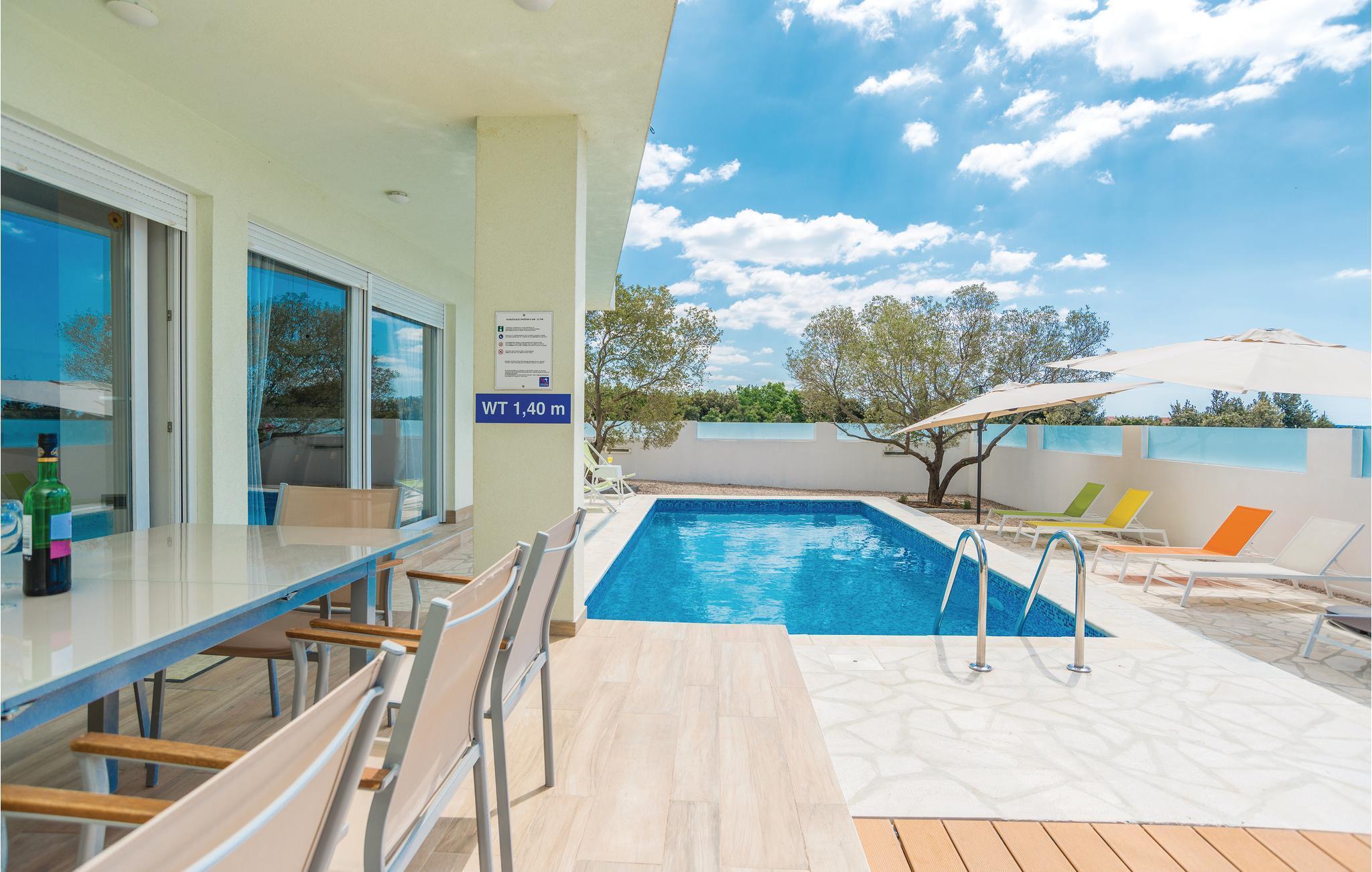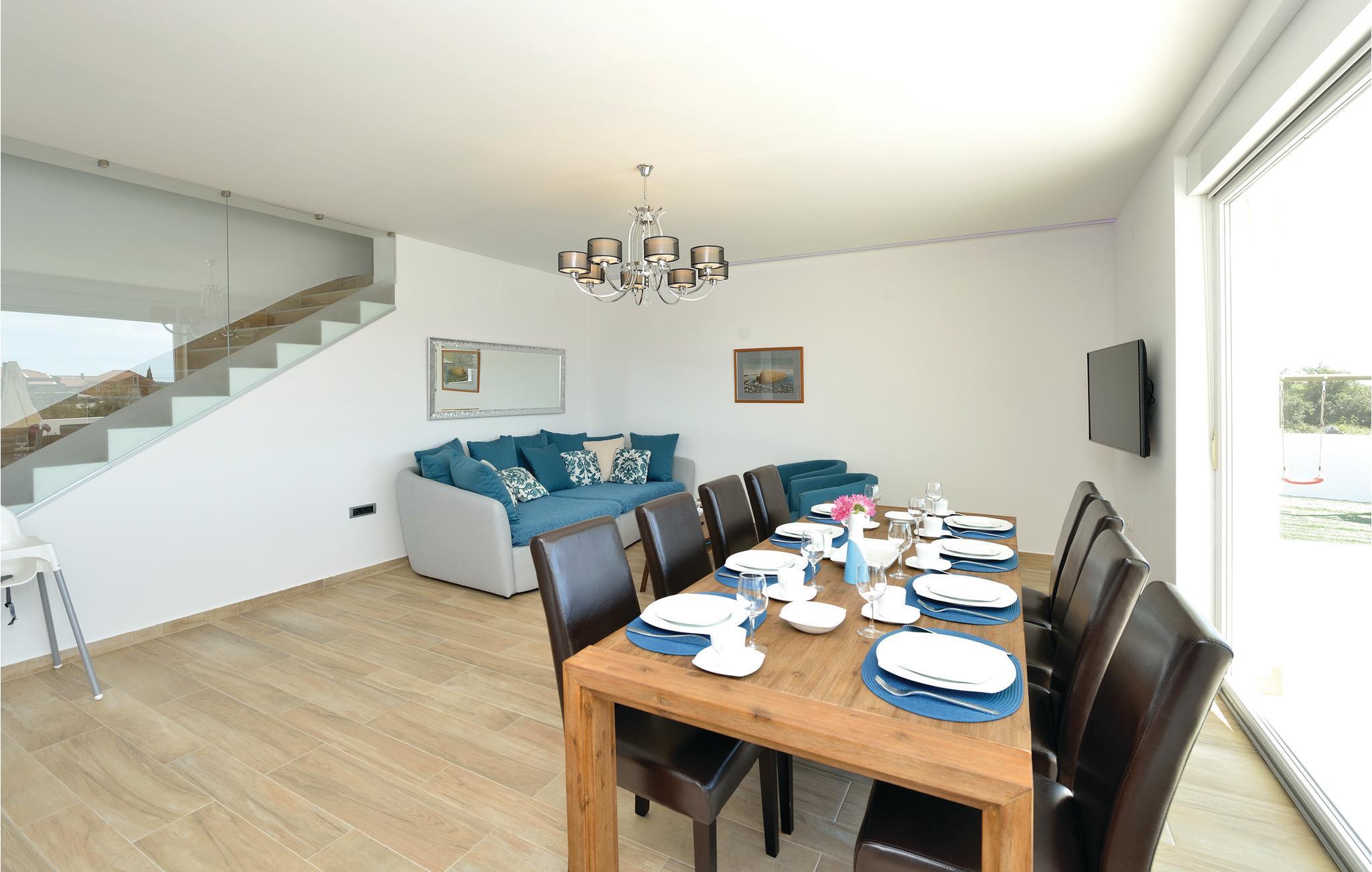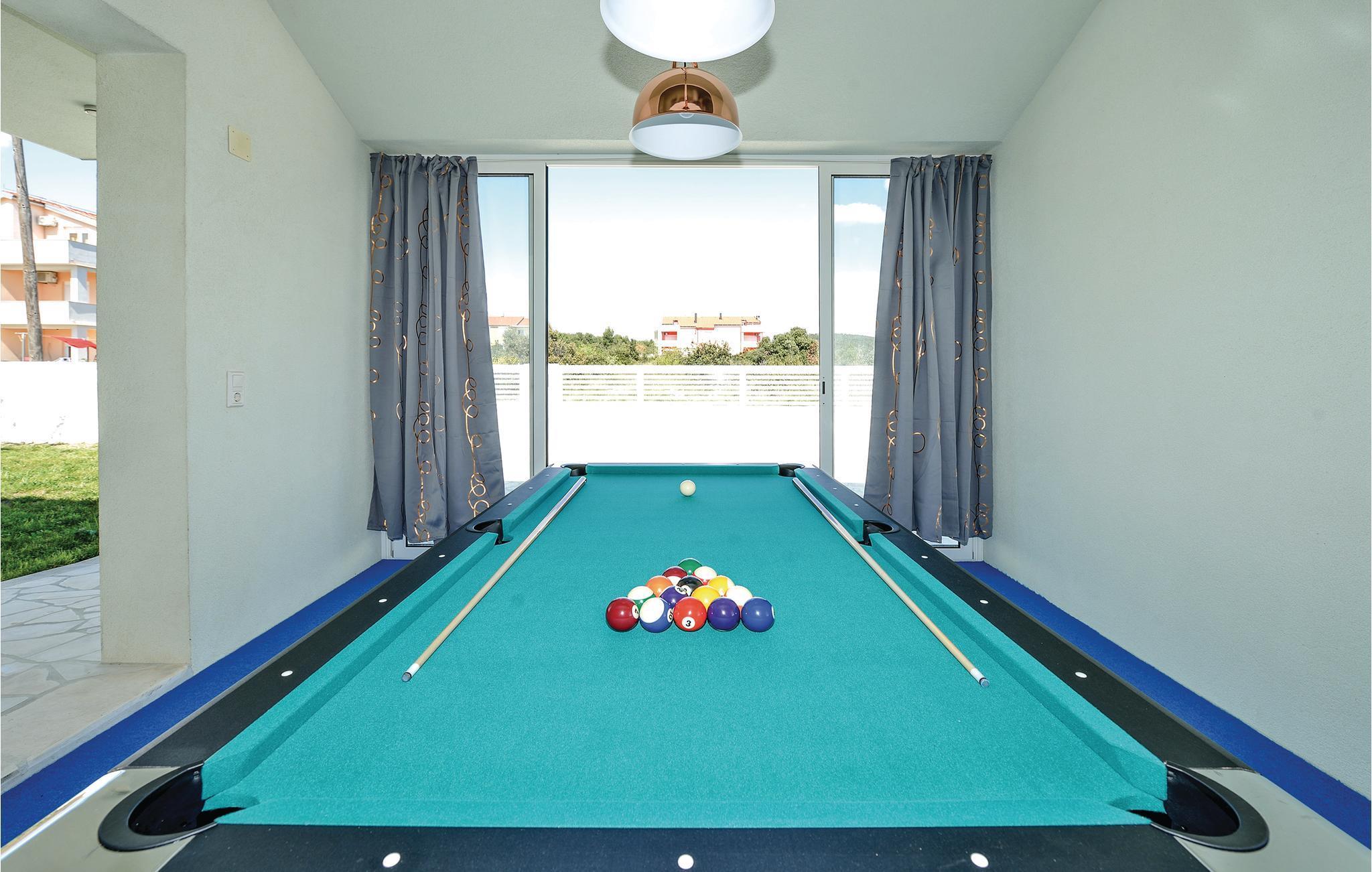 Dette fullt utstyrte og stilfullt møblerte feriehuset ligger på en tomt på 600 m2. Fra balkongen i første etasje har du delvis utsikt over Vrana-sjøen, som du absolutt bør besøke under oppholdet. Innkvarteringen har fire soverom, et fullt utstyrt kjøkken og en spisestue. I rekreasjonsrommet finner du biljard og dart. Fuglekikkere vil glede seg over det nærliggende ornitologiske reservatet, og det er også muligheter for ridning.