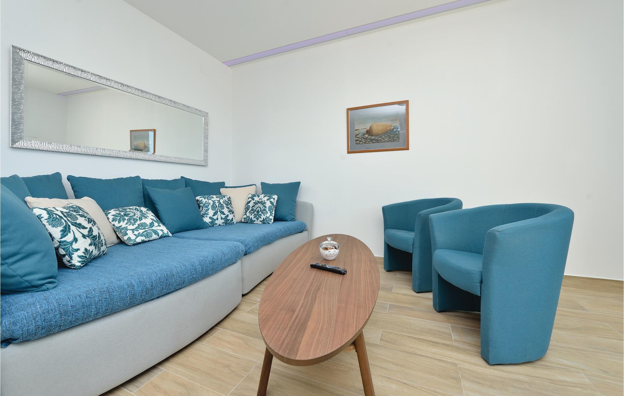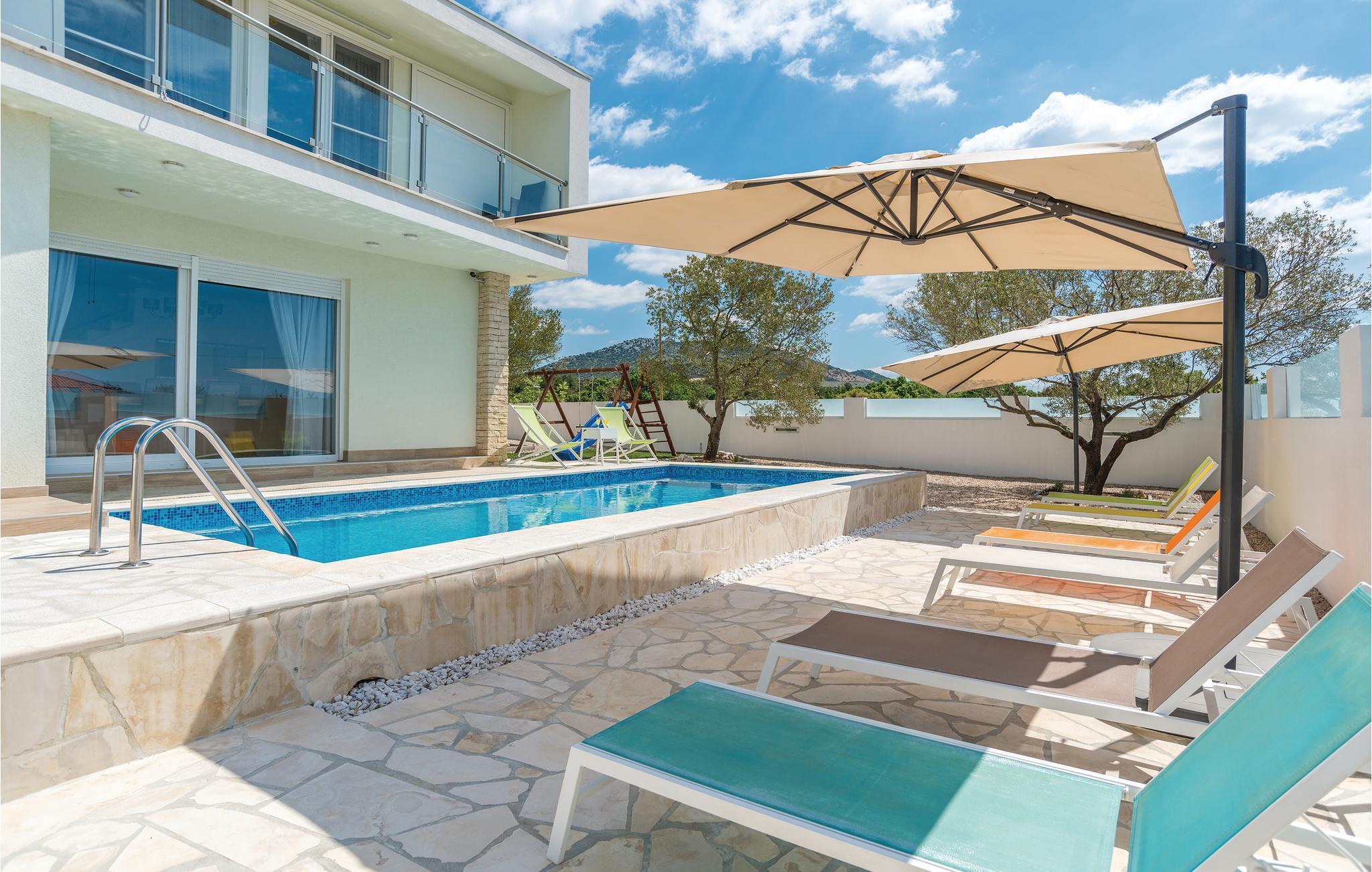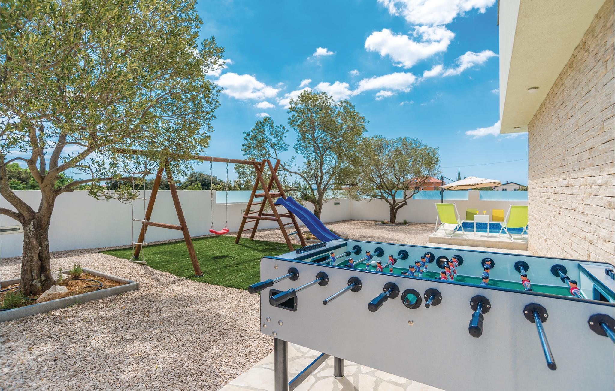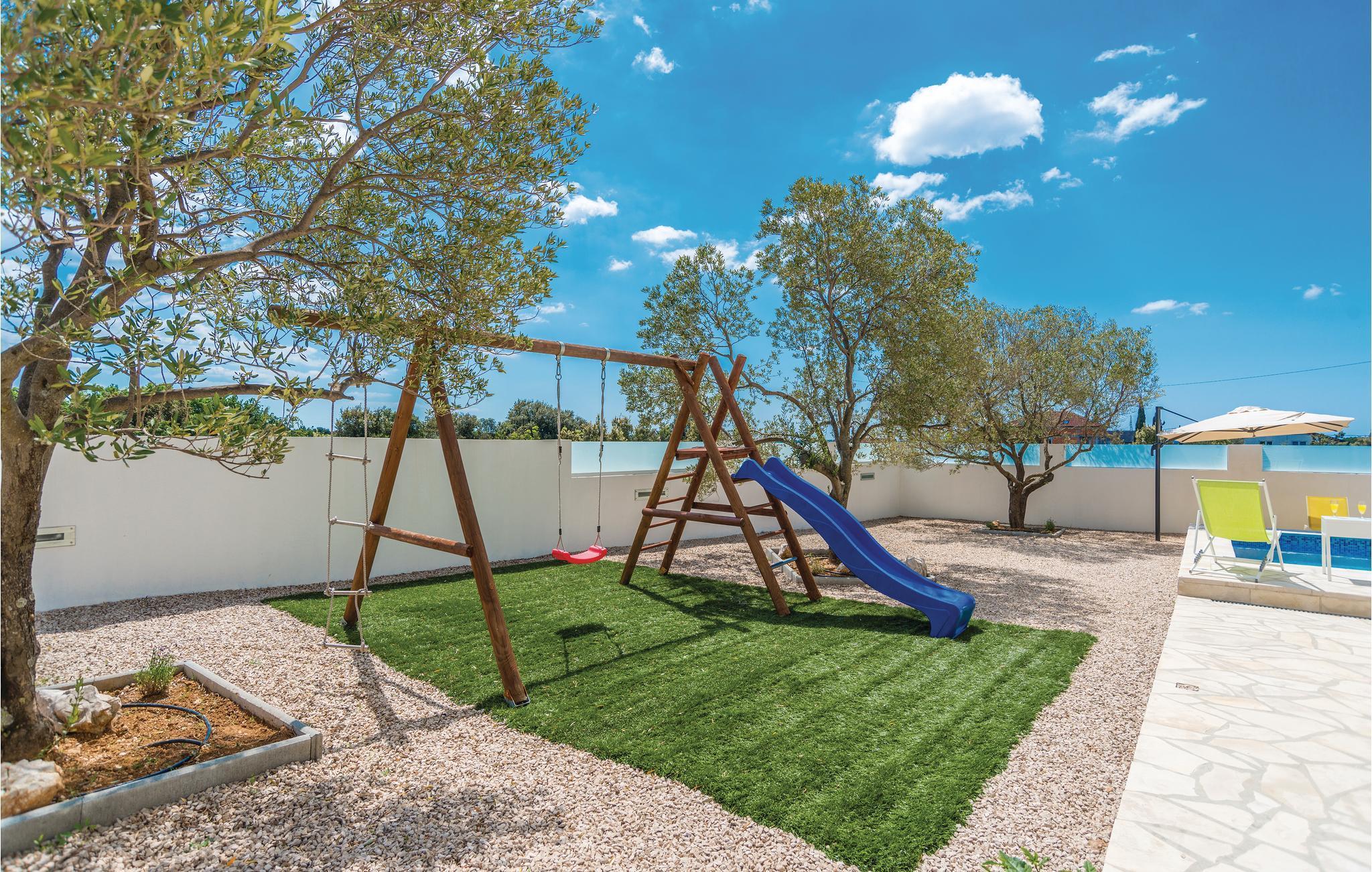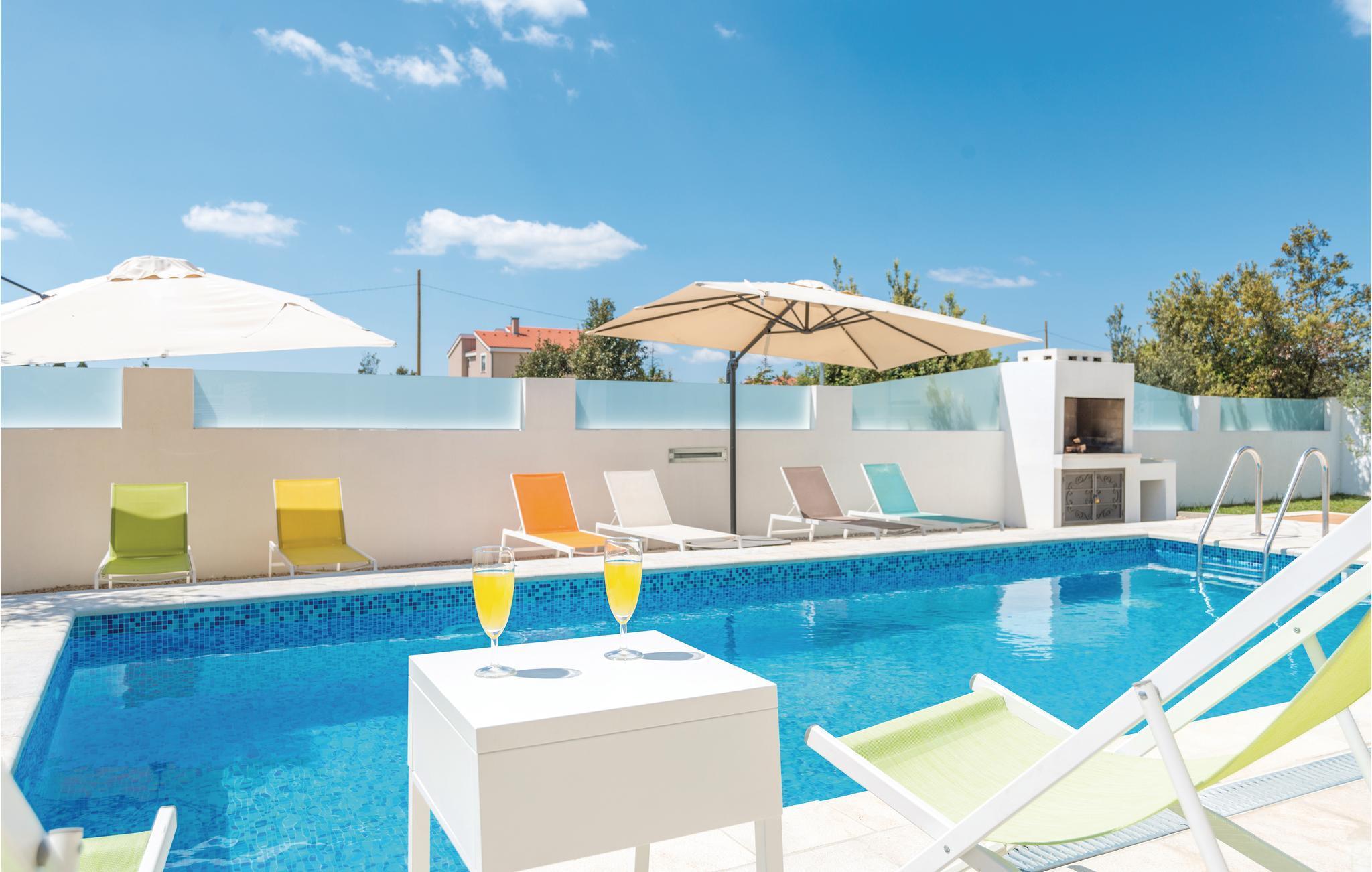 Dette fullt utstyrte og stilfullt møblerte feriehuset ligger på en tomt på 600 m2. Fra balkongen i første etasje har du delvis utsikt over Vrana-sjøen, som du absolutt bør besøke under oppholdet. Innkvarteringen har fire soverom, et fullt utstyrt kjøkken og en spisestue. I rekreasjonsrommet finner du biljard og dart. Fuglekikkere vil glede seg over det nærliggende ornitologiske reservatet, og det er også muligheter for ridning.