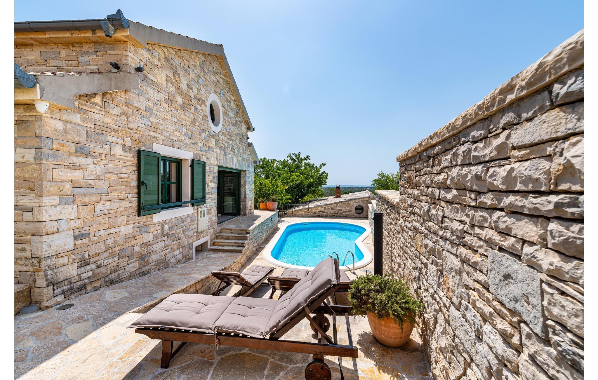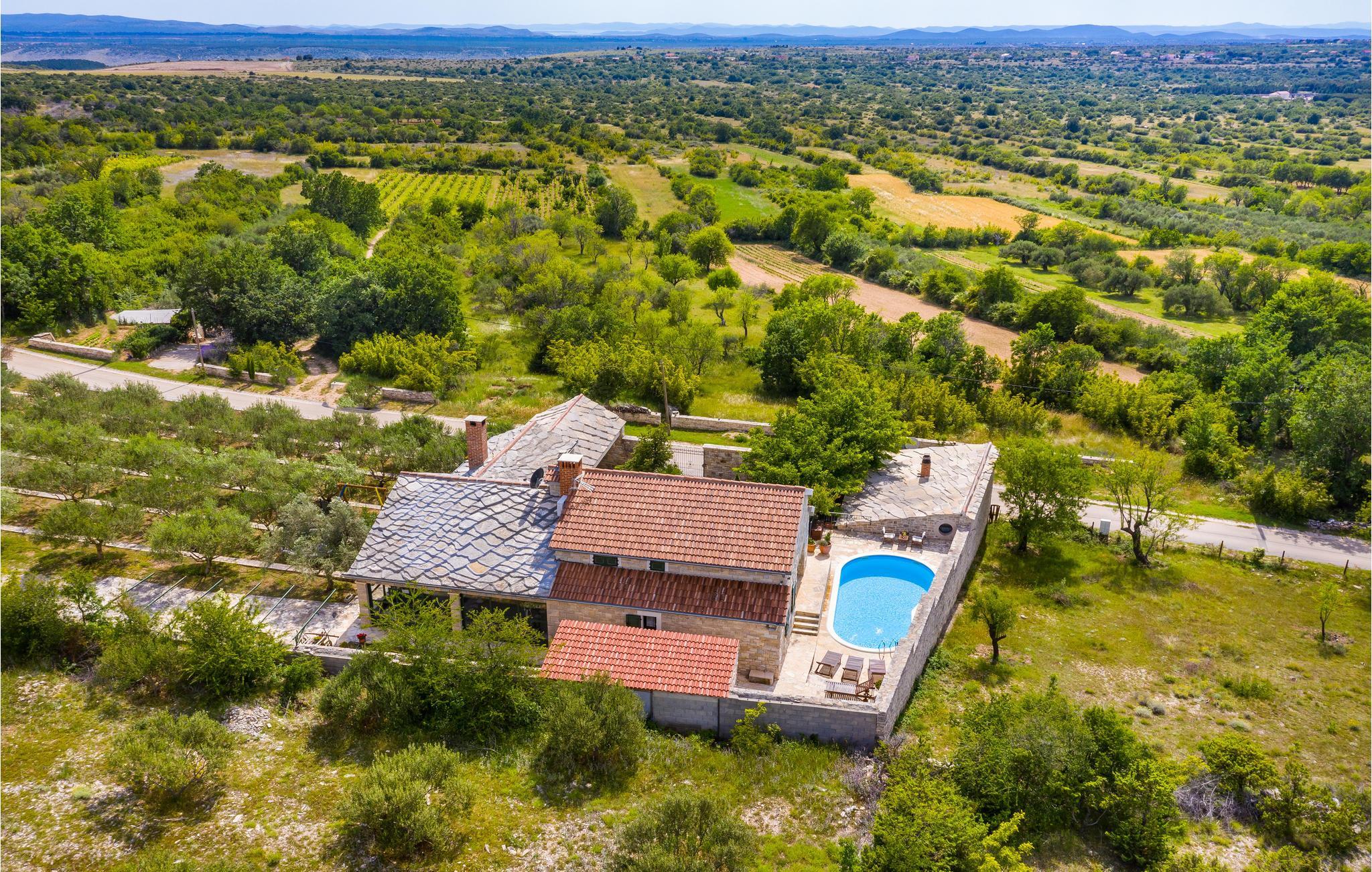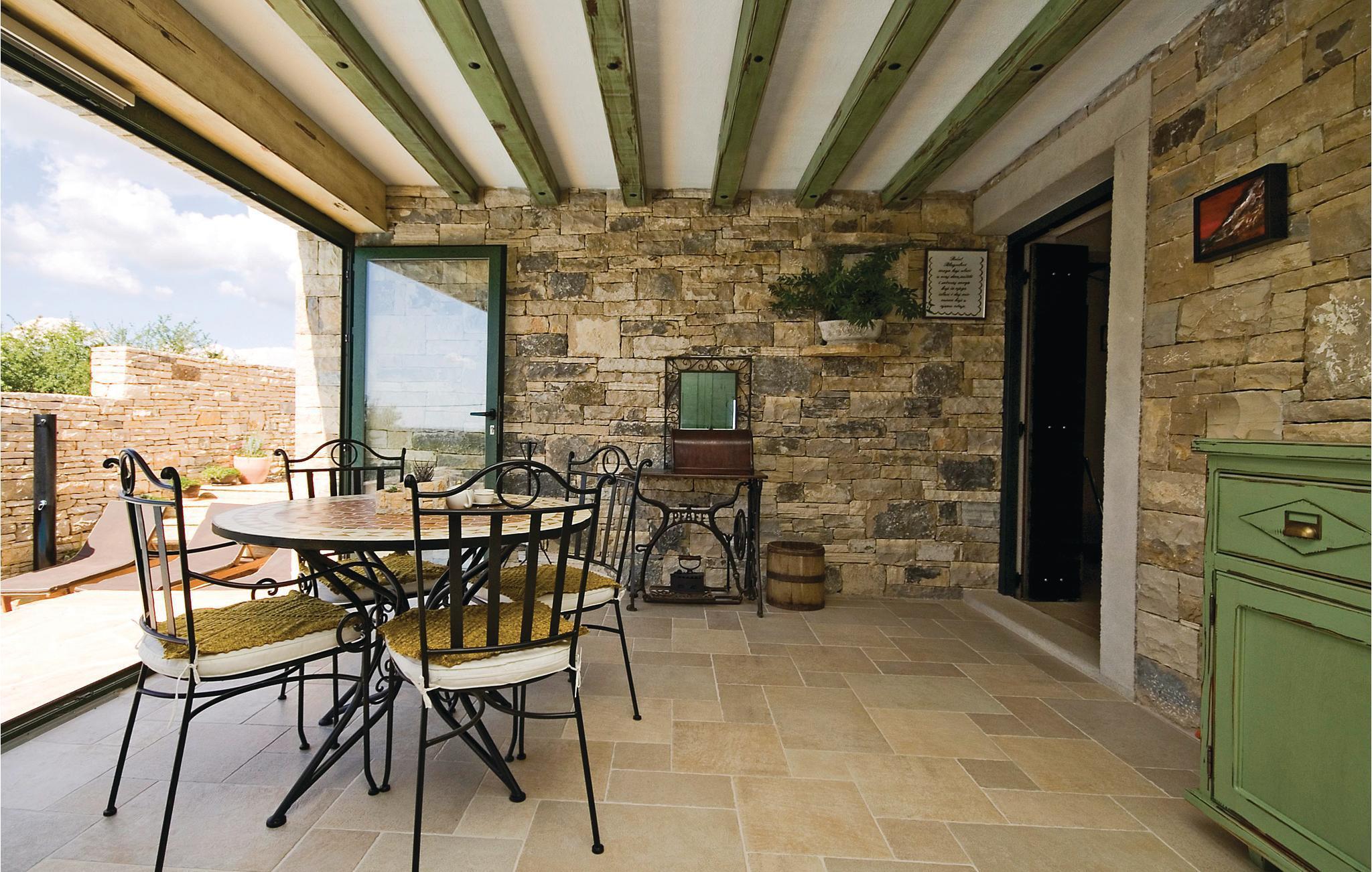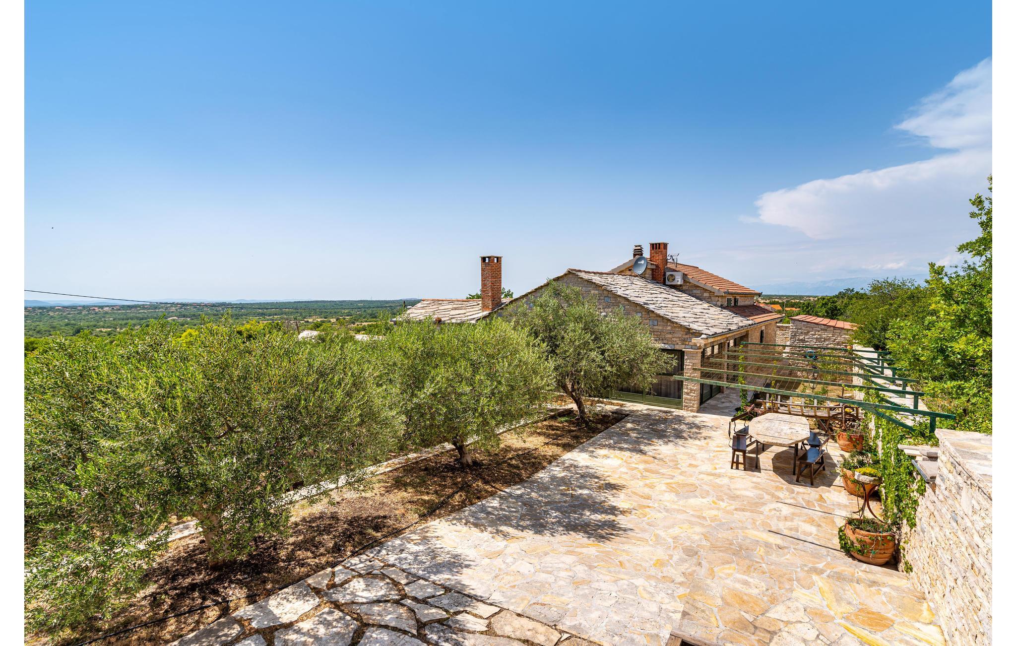 Dette vakre feriehuset tilbyr deg luksuriøs atmosfære på en romslig eiendom. Den vakre steinvillaen er ideell for et opphold på 7 personer. Det moderne interiøret er innredet i tradisjonell stil. Den laveste takhøyden på loftet er 120 cm. I den romslige salongen kan du gjøre en rekke idretter - bruke treningsutstyret eller spille en runde biljard eller dart. Her kan du også tilberede lokale spesialiteter på grillen og deretter nyte dem sammen ved det store spisebordet. Dra også nytte av det ekstra tilbudet i vinkjøleskapet, som kan brukes i henhold til systemet med en minibar. Selvfølgelig er en stor TV også tilgjengelig her. Fra dette rommet kan du nå en liten typisk 'konoba' i kjelleren, hvor historiske gjenstander fra området vises. Utenfor finner du bordtennis, en bocciabane, huske, vippe, sklie og sandkasse. Den nærliggende byen Zadar er et flott sted for en utflukt. Det er fem nasjonalparker i nærheten av Zadar: Krka nasjonalpark, Paklenica nasjonalpark, Nord-Velebit nasjonalpark, Kornati nasjonalpark og Plitvice Lakes nasjonalpark. Eventyrere og naturelskere vil få valuta for pengene her. Uansett om du planlegger en aktiv ferie, eller bare vil koble av fra hverdagen og slappe av: Her finner du de perfekte omgivelsene for ferien din.