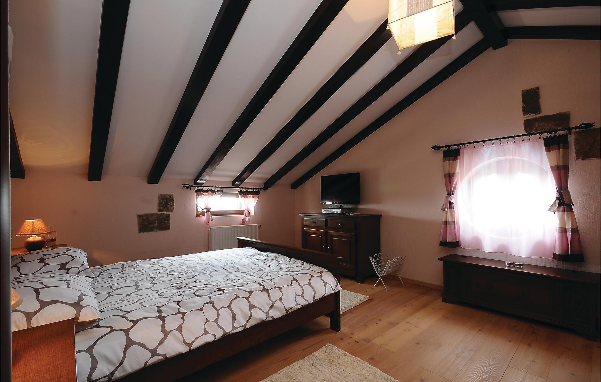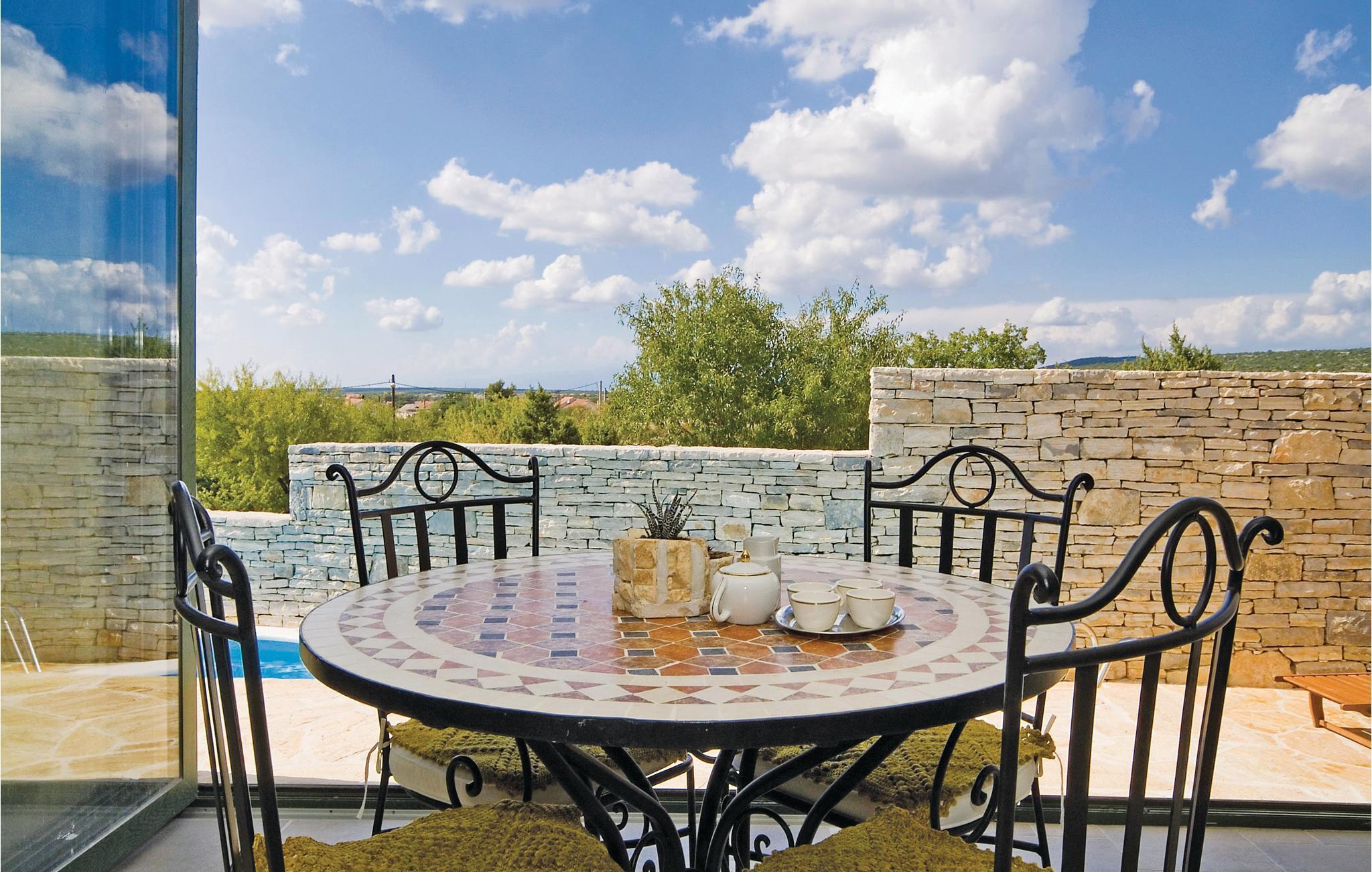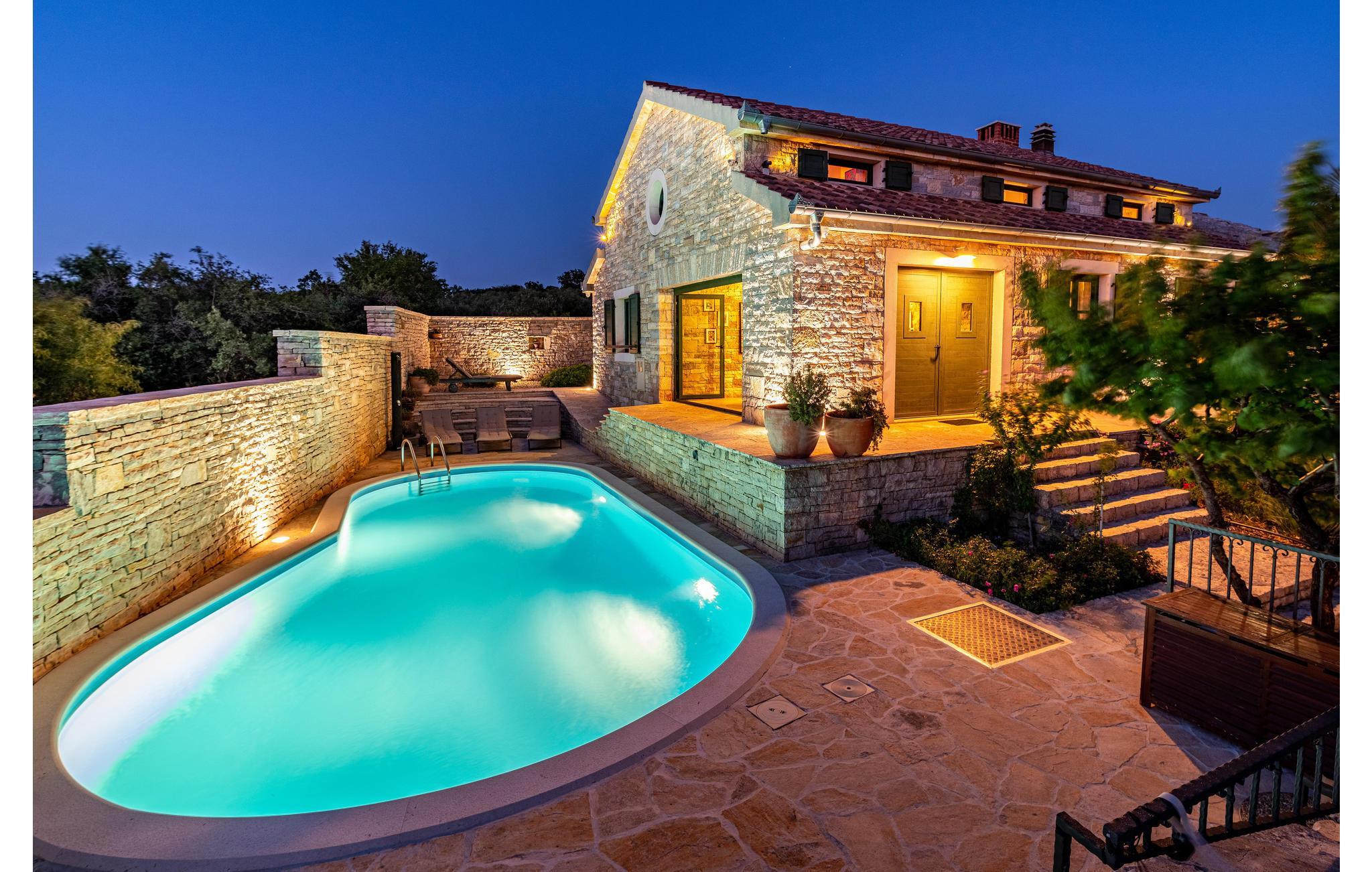 Dette vakre feriehuset tilbyr deg luksuriøs atmosfære på en romslig eiendom. Den vakre steinvillaen er ideell for et opphold på 7 personer. Det moderne interiøret er innredet i tradisjonell stil. Den laveste takhøyden på loftet er 120 cm. I den romslige salongen kan du gjøre en rekke idretter - bruke treningsutstyret eller spille en runde biljard eller dart. Her kan du også tilberede lokale spesialiteter på grillen og deretter nyte dem sammen ved det store spisebordet. Dra også nytte av det ekstra tilbudet i vinkjøleskapet, som kan brukes i henhold til systemet med en minibar. Selvfølgelig er en stor TV også tilgjengelig her. Fra dette rommet kan du nå en liten typisk 'konoba' i kjelleren, hvor historiske gjenstander fra området vises. Utenfor finner du bordtennis, en bocciabane, huske, vippe, sklie og sandkasse. Den nærliggende byen Zadar er et flott sted for en utflukt. Det er fem nasjonalparker i nærheten av Zadar: Krka nasjonalpark, Paklenica nasjonalpark, Nord-Velebit nasjonalpark, Kornati nasjonalpark og Plitvice Lakes nasjonalpark. Eventyrere og naturelskere vil få valuta for pengene her. Uansett om du planlegger en aktiv ferie, eller bare vil koble av fra hverdagen og slappe av: Her finner du de perfekte omgivelsene for ferien din.