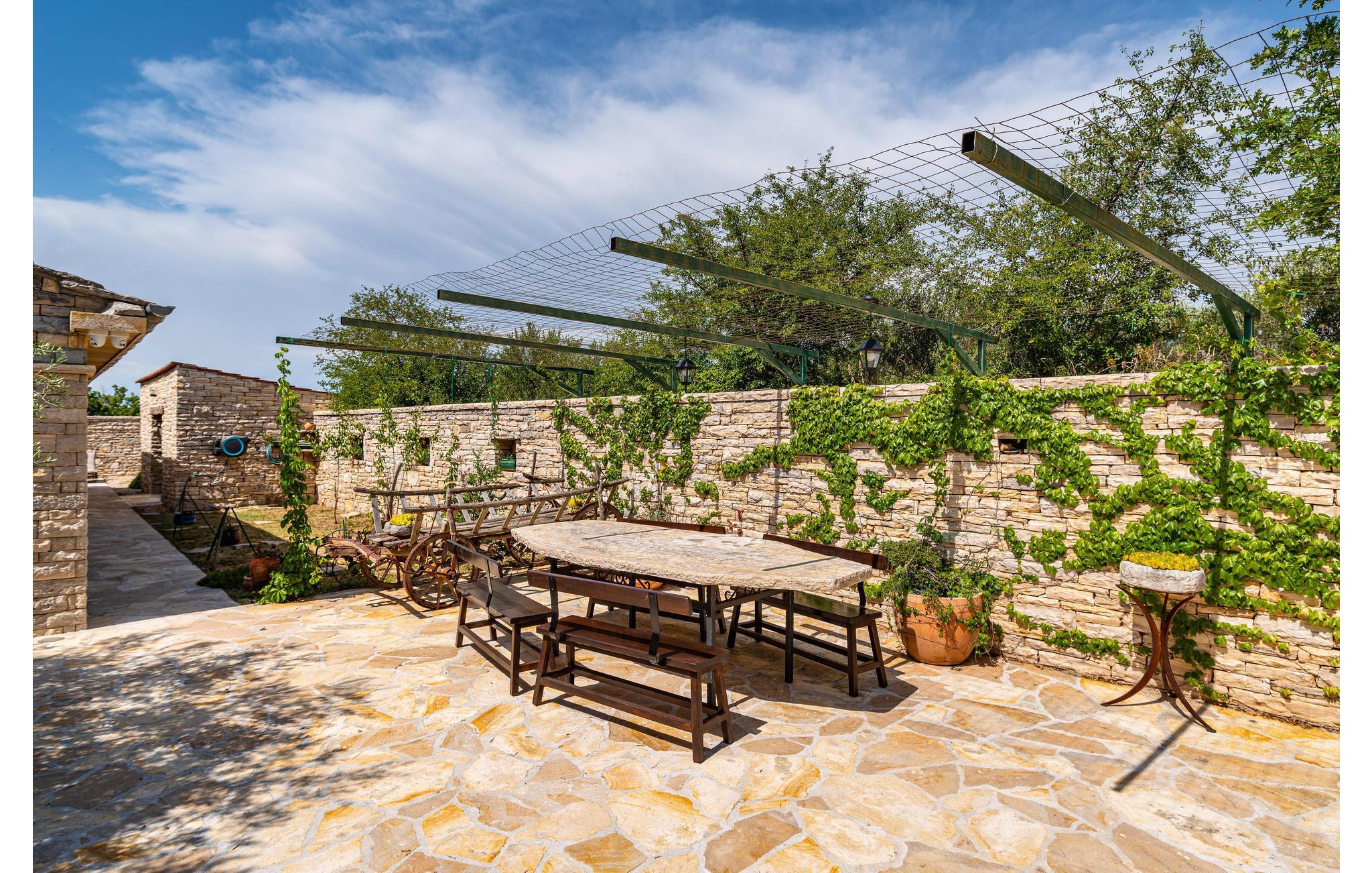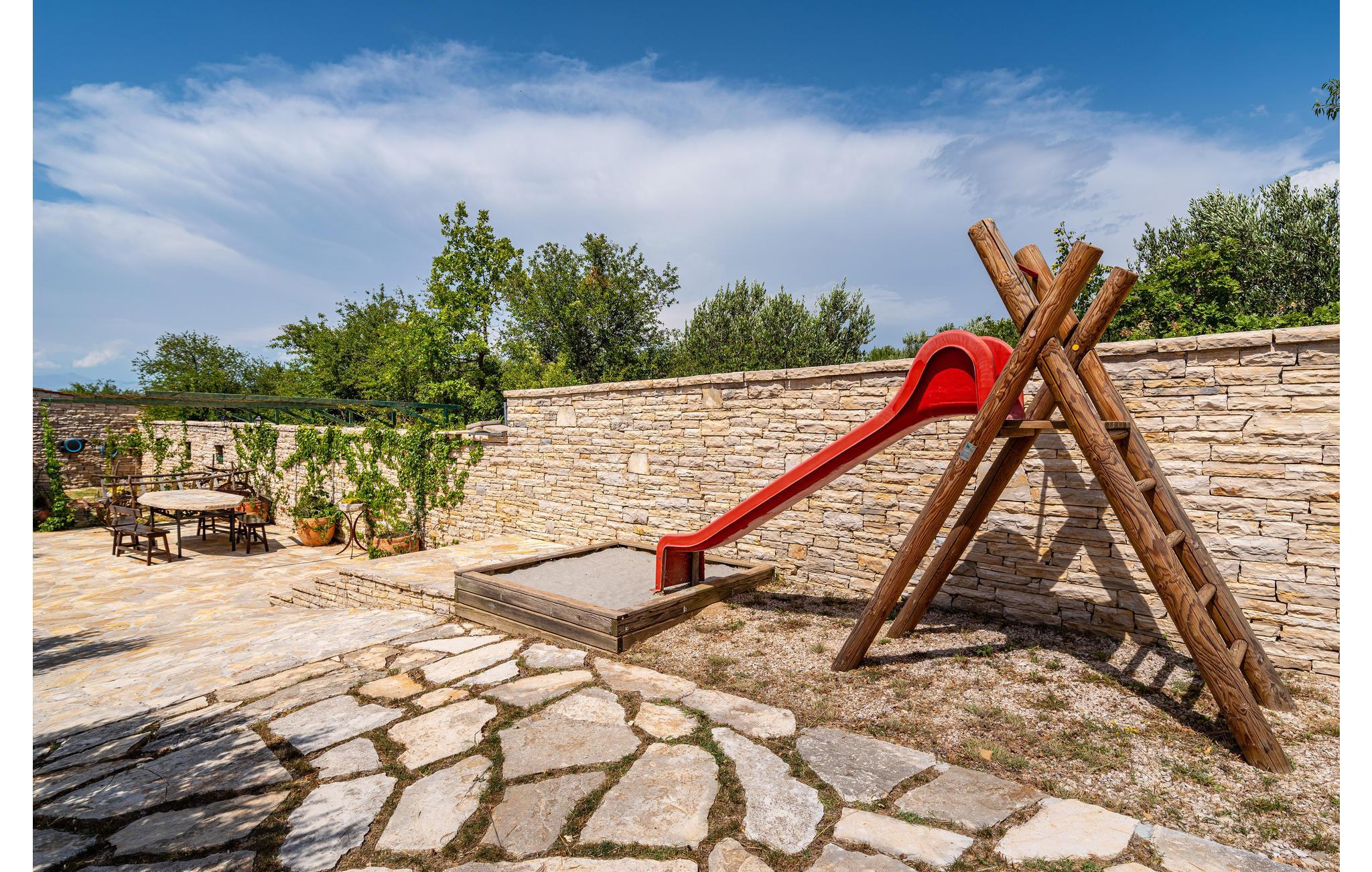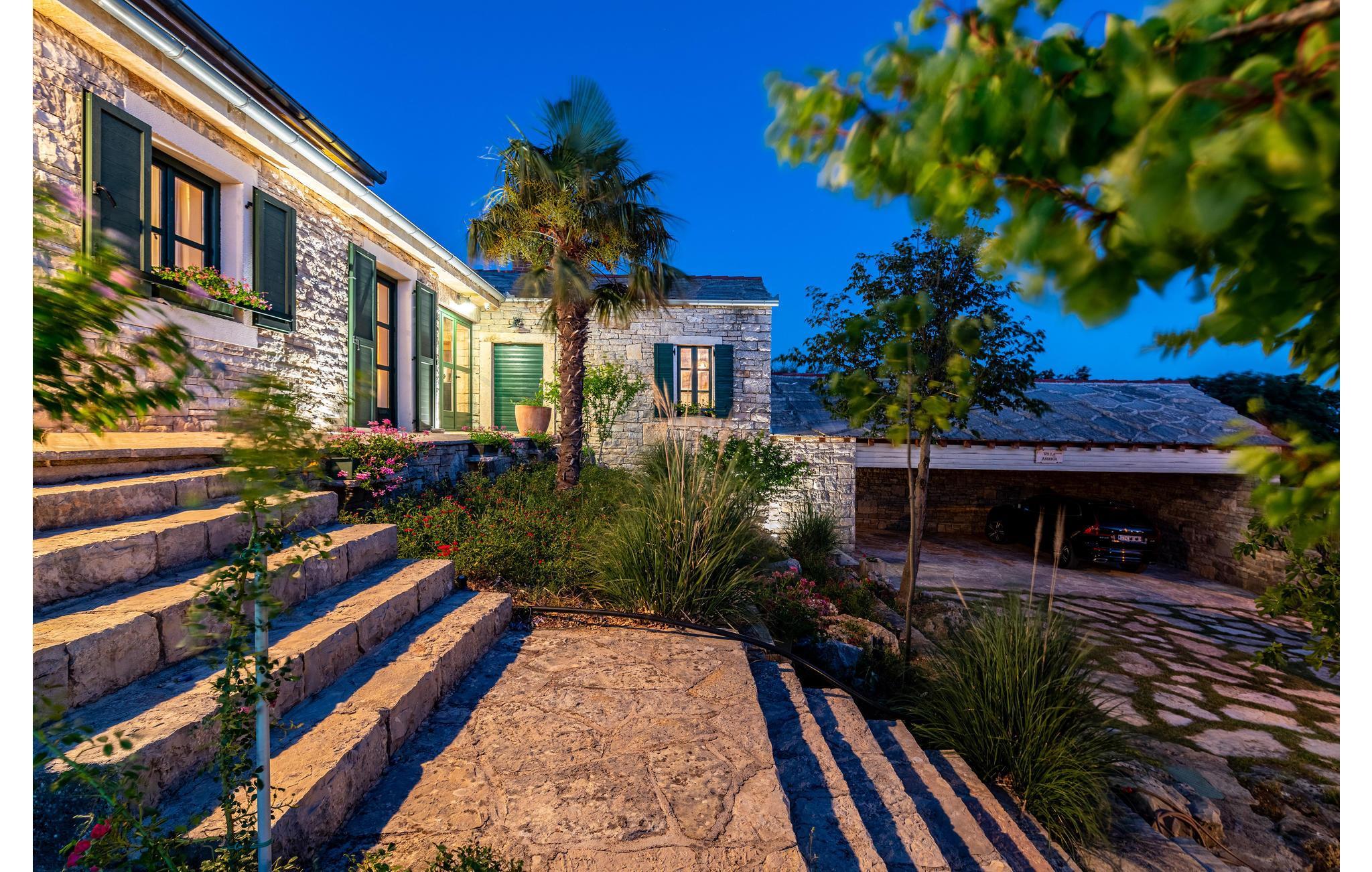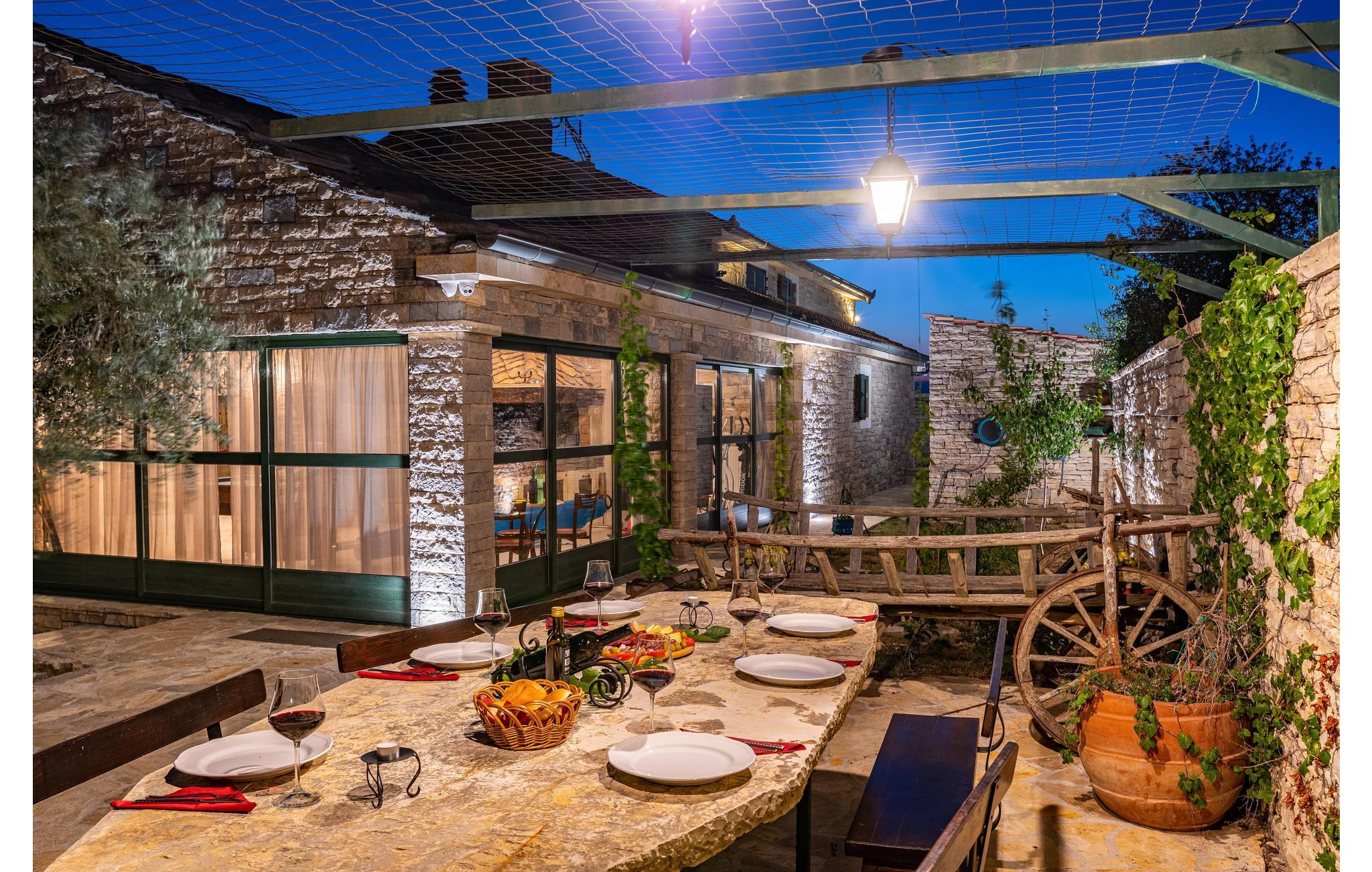 Dette vakre feriehuset tilbyr deg luksuriøs atmosfære på en romslig eiendom. Den vakre steinvillaen er ideell for et opphold på 7 personer. Det moderne interiøret er innredet i tradisjonell stil. Den laveste takhøyden på loftet er 120 cm. I den romslige salongen kan du gjøre en rekke idretter - bruke treningsutstyret eller spille en runde biljard eller dart. Her kan du også tilberede lokale spesialiteter på grillen og deretter nyte dem sammen ved det store spisebordet. Dra også nytte av det ekstra tilbudet i vinkjøleskapet, som kan brukes i henhold til systemet med en minibar. Selvfølgelig er en stor TV også tilgjengelig her. Fra dette rommet kan du nå en liten typisk 'konoba' i kjelleren, hvor historiske gjenstander fra området vises. Utenfor finner du bordtennis, en bocciabane, huske, vippe, sklie og sandkasse. Den nærliggende byen Zadar er et flott sted for en utflukt. Det er fem nasjonalparker i nærheten av Zadar: Krka nasjonalpark, Paklenica nasjonalpark, Nord-Velebit nasjonalpark, Kornati nasjonalpark og Plitvice Lakes nasjonalpark. Eventyrere og naturelskere vil få valuta for pengene her. Uansett om du planlegger en aktiv ferie, eller bare vil koble av fra hverdagen og slappe av: Her finner du de perfekte omgivelsene for ferien din.