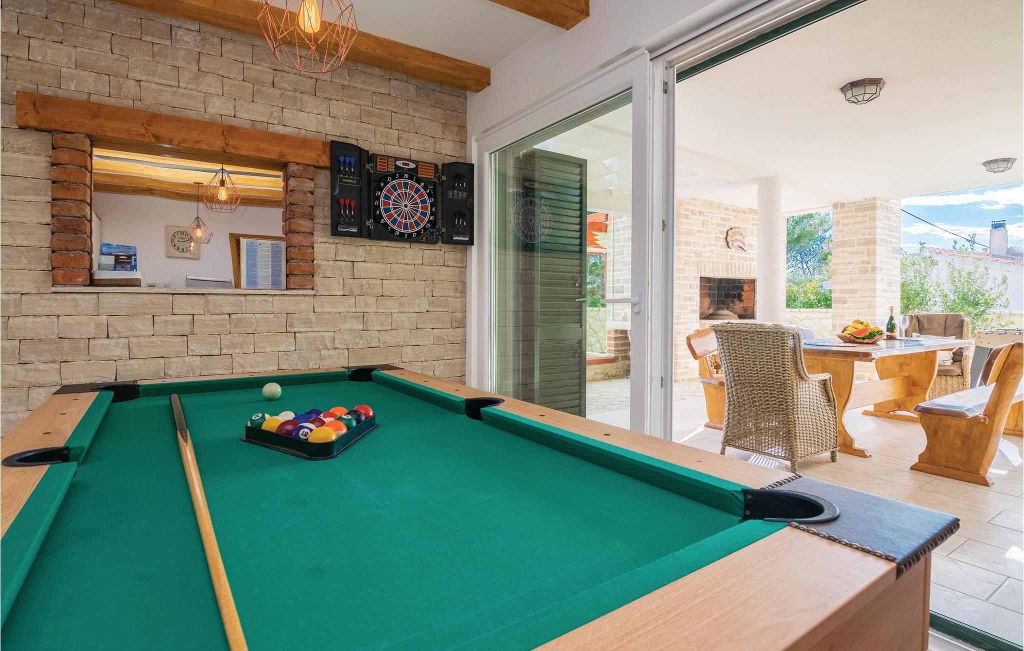 Dette feriehuset med havutsikt, innredet med oppmerksomhet på detaljer, ligger i den pittoreske kystbyen Novigrad. Huset, delt inn i tre stuenivåer, er forbundet med en intern trapp. Rom nr. 1 kan bare nås utenfra og er ikke koblet til de andre rommene. En dukkert i det forfriskende utendørsbassenget gir fantastisk avkjøling på varme sommerdager, og det overbygde uteområdet er perfekt for felles måltider utendørs. Besøk den historiske byen Zadar (ca. 30 km) eller få adrenalinet til å pumpe med en raftingtur på elven Zrmanja. Opplev en uforglemmelig tid i Dalmatia.