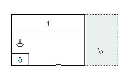 Stue/kjøkken 18m2 - 2 Soveplasser. (Sovesofa, madrass eller lign.).