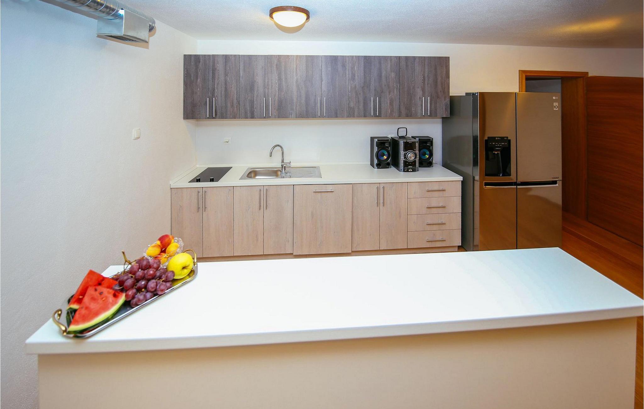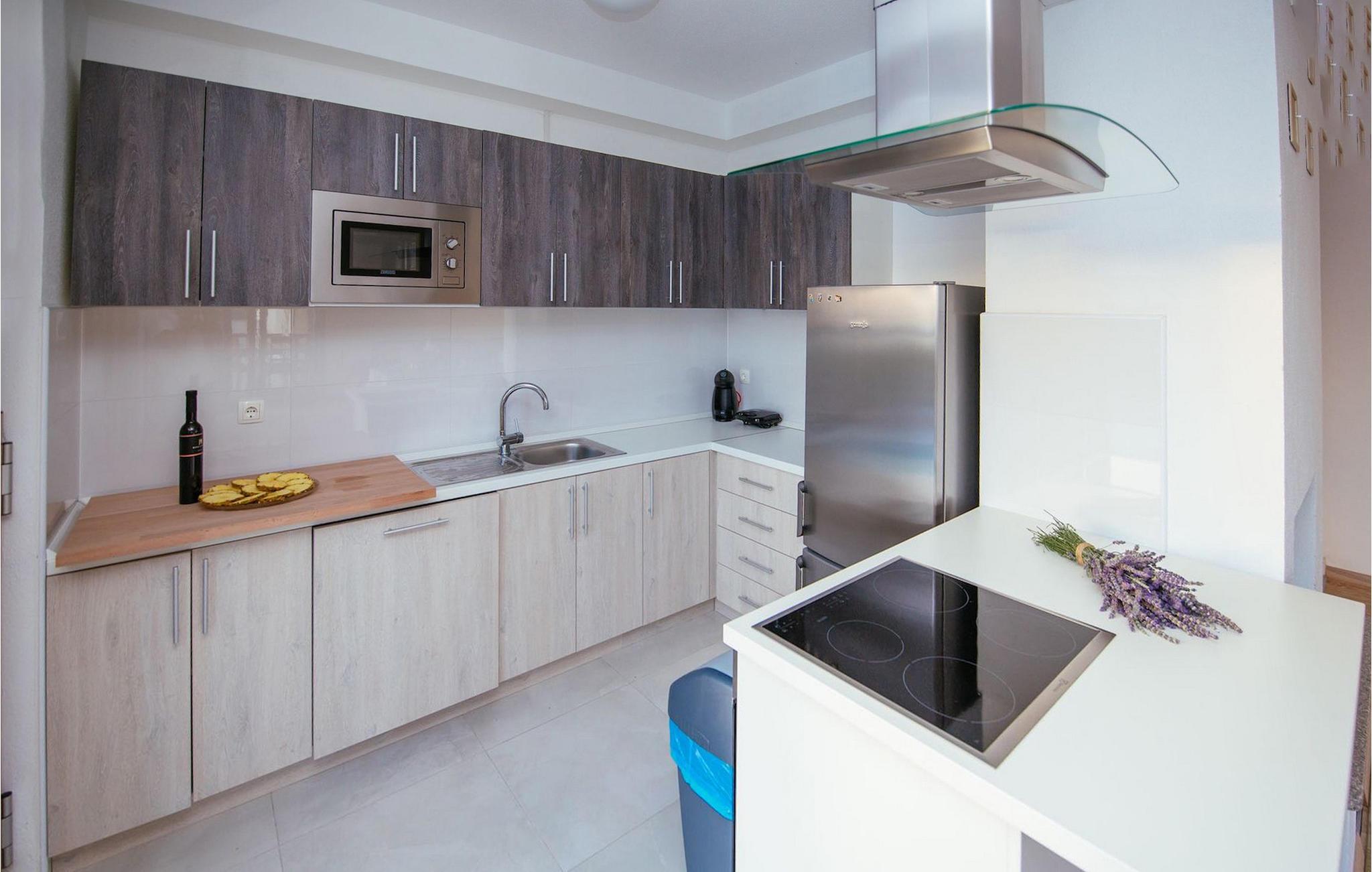 I tillegg er det en underetasje med kjøkkenkrok, god plass til middager eller feiringer og et ekstra bad. Mens du svømmer i det private bassenget, kan du se den vakre solnedgangen over havet.
