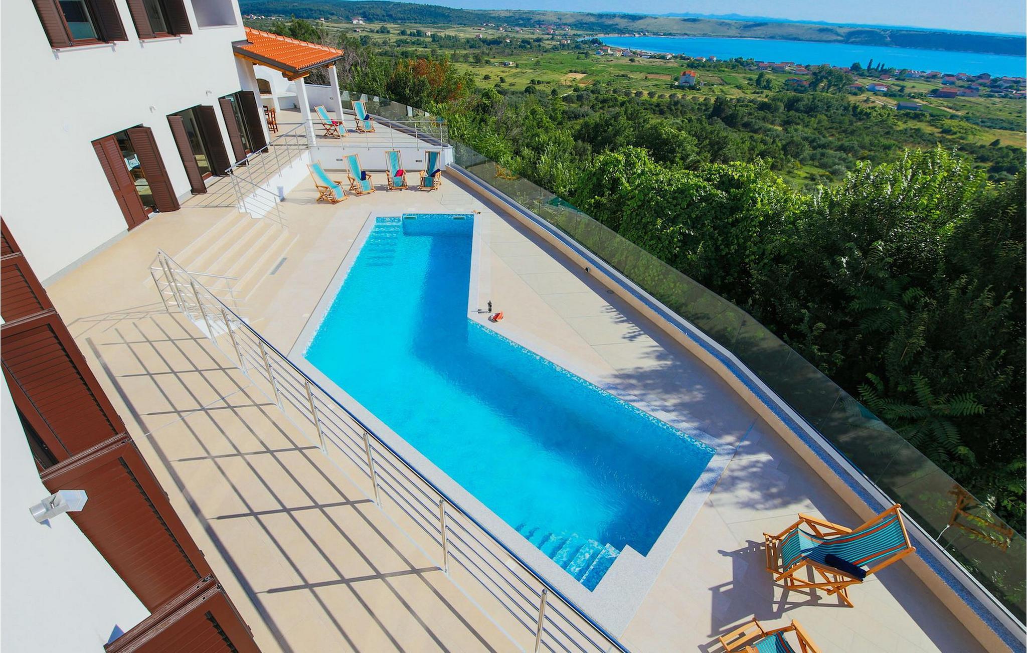 Den fantastiske havutsikten er det første som vil fortrylle deg med den romslige, vakre Villa Lubey, nær Zadar i Dalmatia, med sine 500m2 plass. Ligger på en høyde, gir det en vakker oversikt over omgivelsene. Den består av 2 nesten identiske enheter (koblet internt), en med 4 sjarmerende soverom med eget bad og en med 2 sjarmerende soverom med eget bad, hver med kjøkken, spiseplass og stue, fordelt på 2 nivåer.