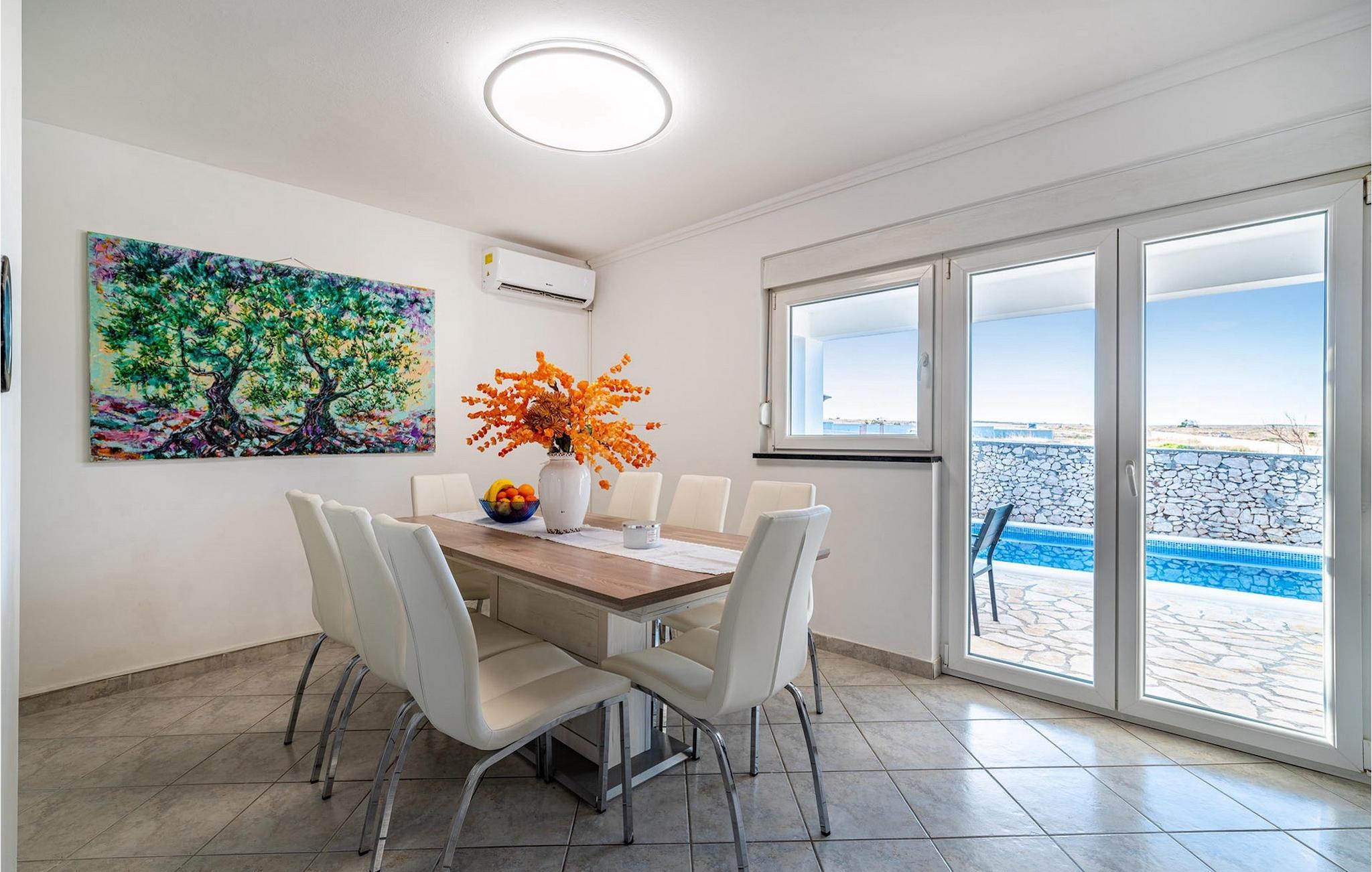 Villa Opera er det ideelle valget for deg som ønsker en avslappende ferie sammen med dine nærmeste. Den har en utmerket og rolig beliggenhet bare 100 meter fra sjøen i landsbyen Razanac. Villaen har plass til opptil 10 personer, noe som gjør den ideell for familier eller vennegrupper. Villaens uteområde har et privat bassengområde. Det er også en grill hvor du kan tilberede deilige måltider og nyte dem i den overbygde uteserveringen. Barna kan glede seg til en liten lekeplass. I første etasje er det en åpen stue-, spise- og matlagingsløsning med utgang til terrassen. Det er også et soverom og et bad i denne etasjen. I andre etasje er det ytterligere tre soverom med utgang til to store balkonger. Dette er det perfekte stedet å nyte den fantastiske havutsikten. Bestill Villa Opera og få en herlig ferie i Kroatia! Villa Opera ligger i den lille idylliske landsbyen Razanac i Dalmatia. Byen er et populært feriemål med sine vakre strender og det pittoreske landskapet i Velebit-fjellene. Razanac byr på en rekke utfluktsmuligheter. Den berømte byen Zadar ligger en kort kjøretur unna. Den gamle byen er rik på historisk arv og er en perfekt kombinasjon av turistattraksjoner og avslappende ferier. Glem ikke å besøke byens symbol - sjøorgelet - og lytt til de harmoniske klangene. I nærheten ligger også noen av de vakreste nasjonalparkene i Kroatia. Vi anbefaler å besøke den spesielle Plitvice nasjonalpark. Det fantastiske landskapet med utallige innsjøer, fossefall og skoger er vel verdt et besøk.