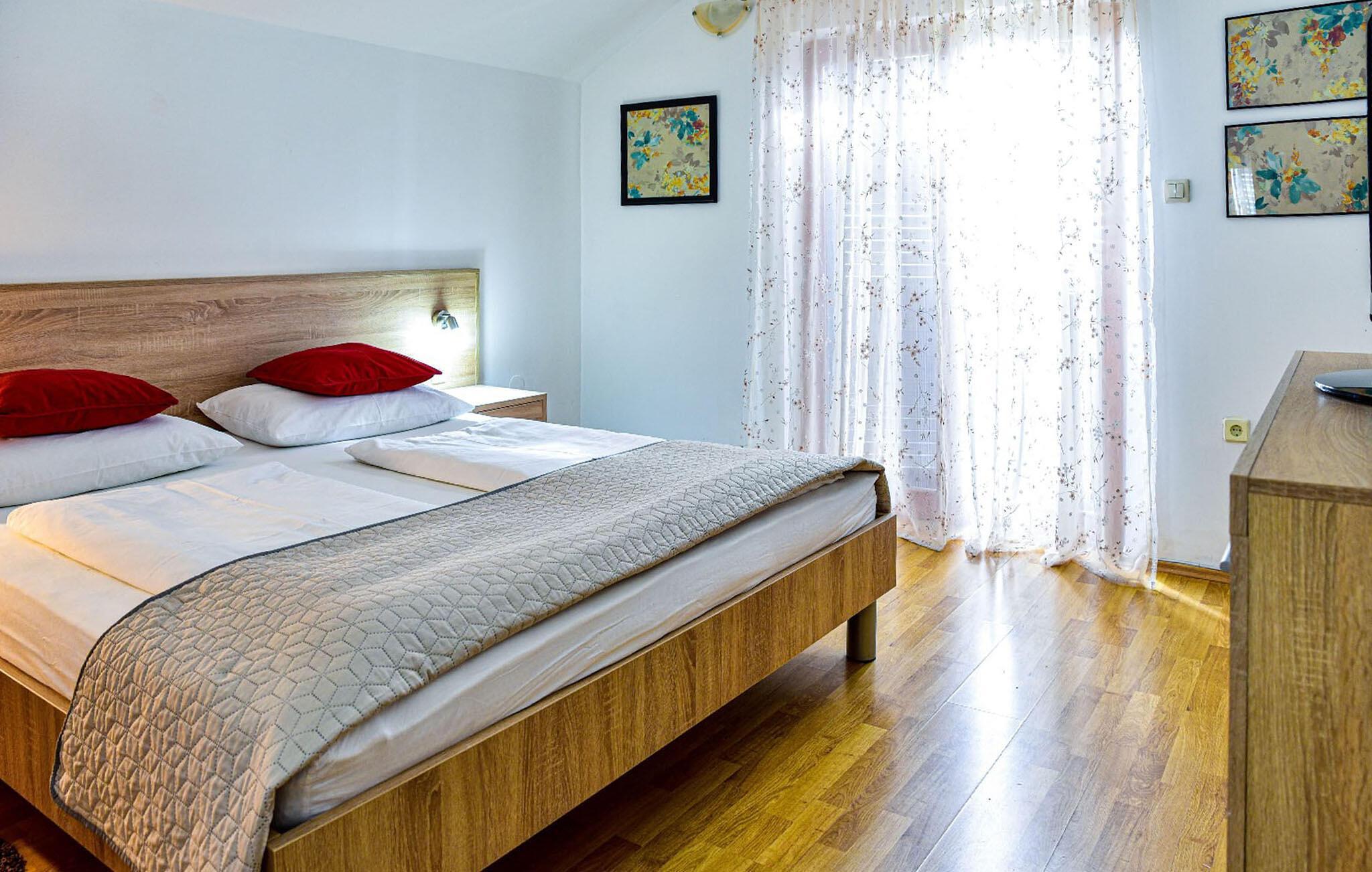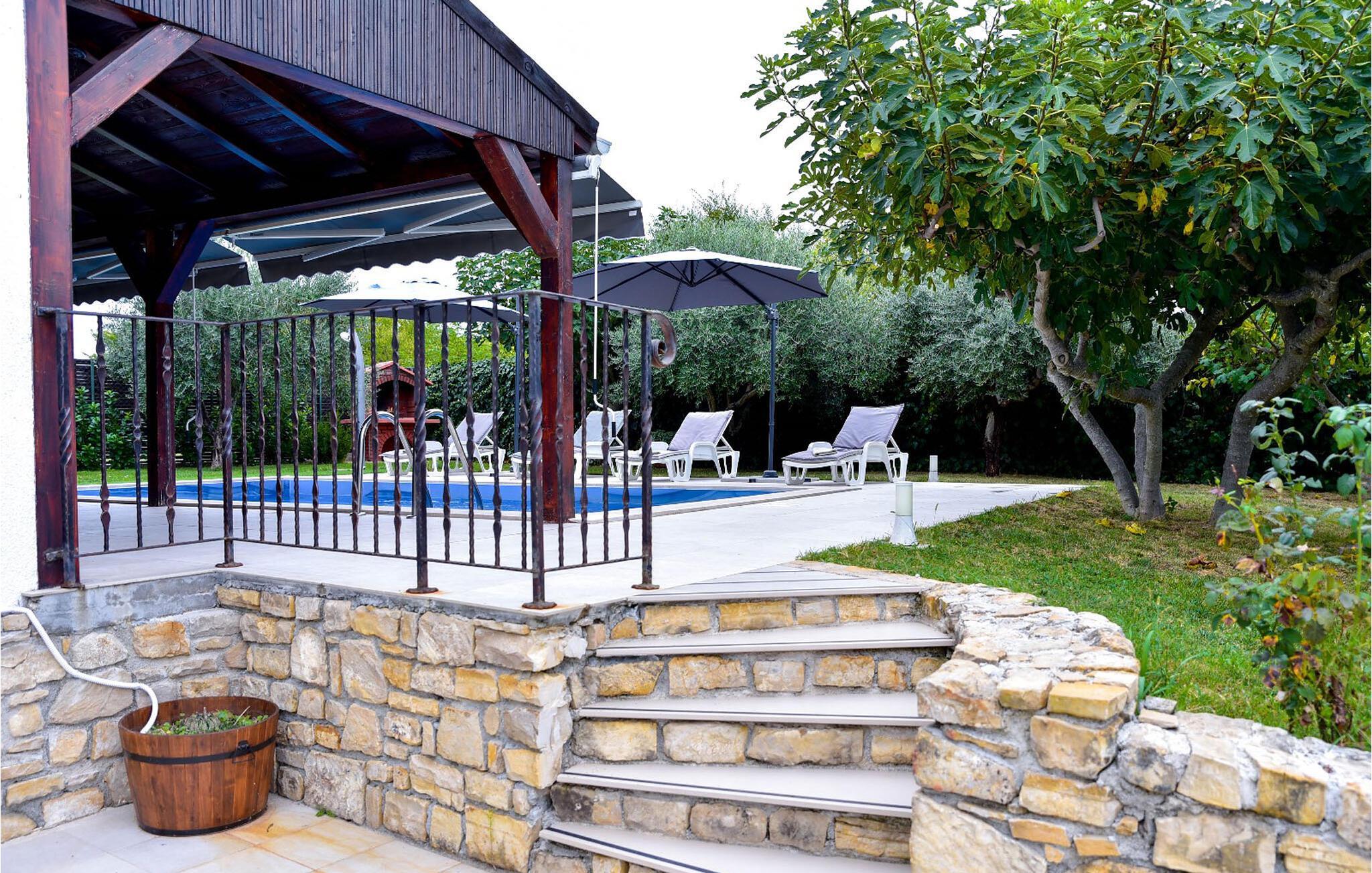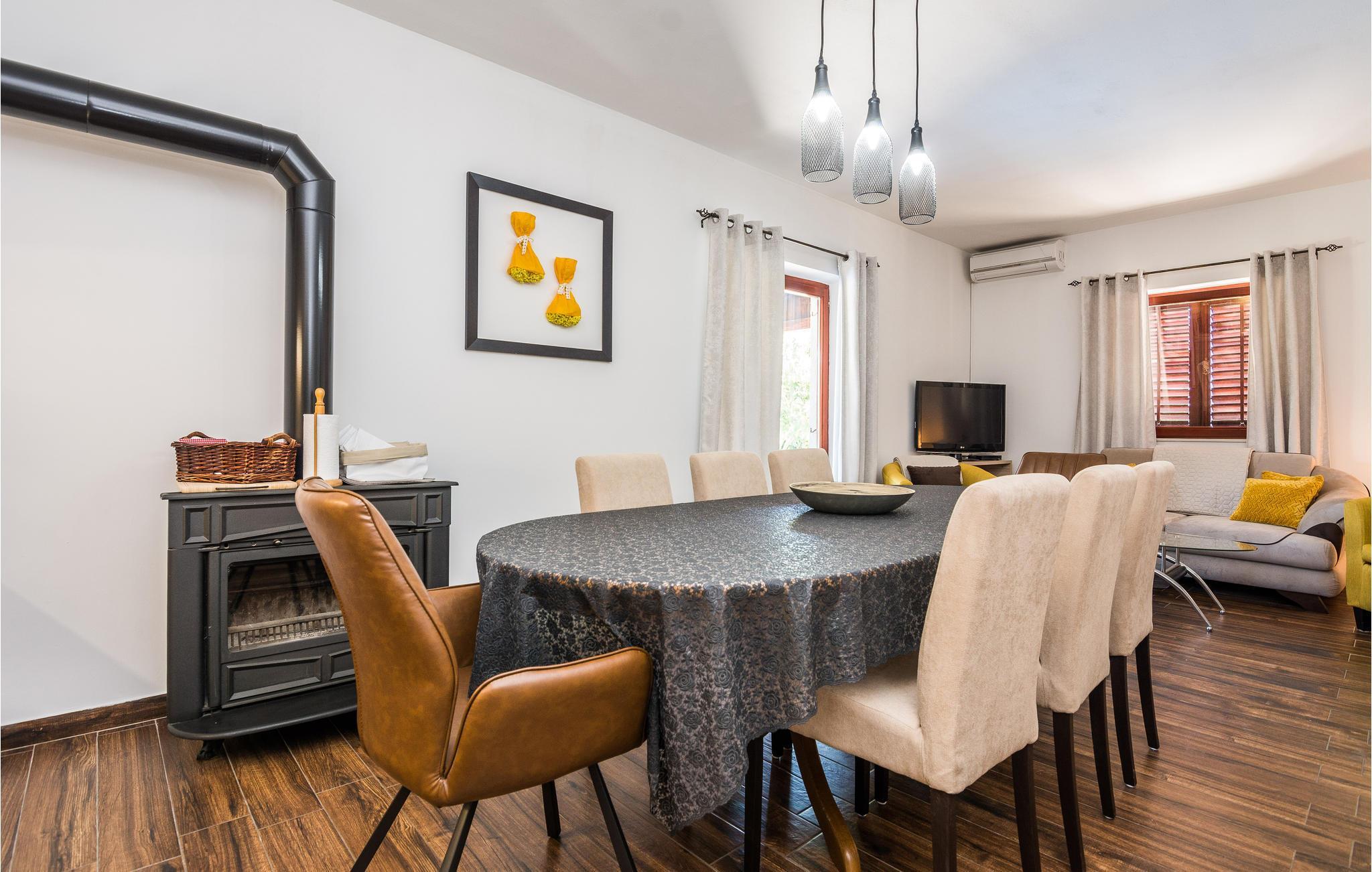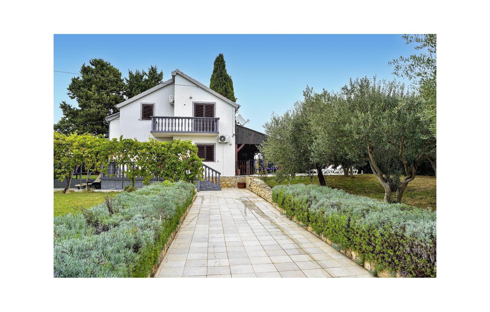 Dette vakre og enkelt innredede feriehuset med basseng ligger i Smokovi, en landsby i nærheten av Zadar. Huset består av en stue med kjøkken og spiseplass, fire soverom og to bad fordelt på første og andre etasje. I hagen finner du fasiliteter for barn, som huske, sklie, trampoline, lekehus og sandkasse, samt badmintonnett og fotballmål for de større barna. Du kan ha mye moro i bassenget eller dra til sjøen på strendene rundt byen Zadar. På grunn av nærheten til motorveien har du mulighet til å dra på utflukter til de nærliggende nasjonalparkene. Gamlebyen i Zadar med sine historiske og moderne attraksjoner er også verdt et besøk.