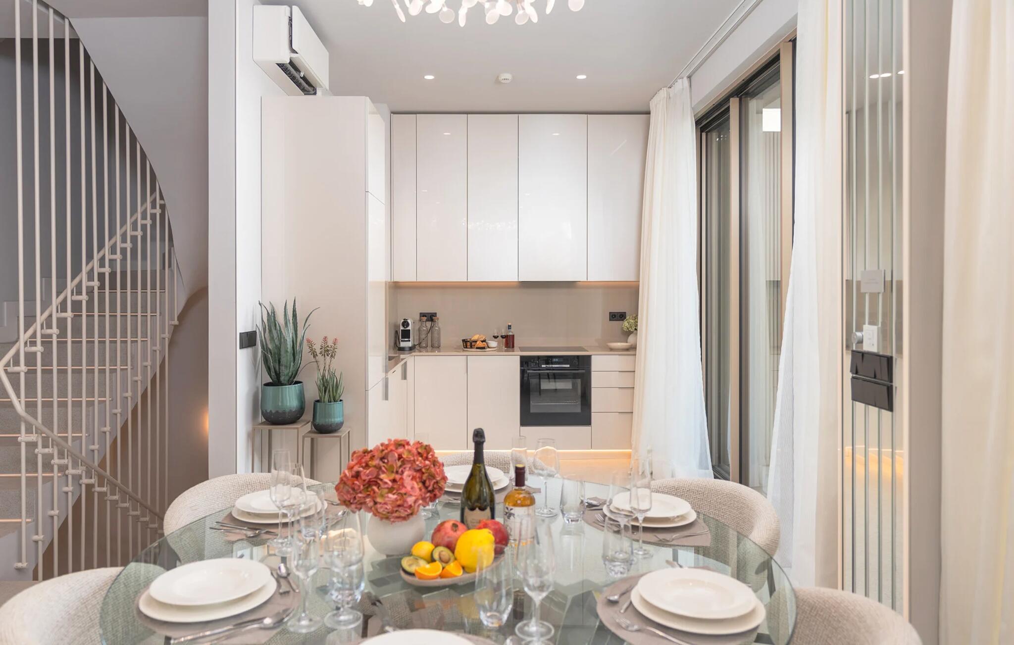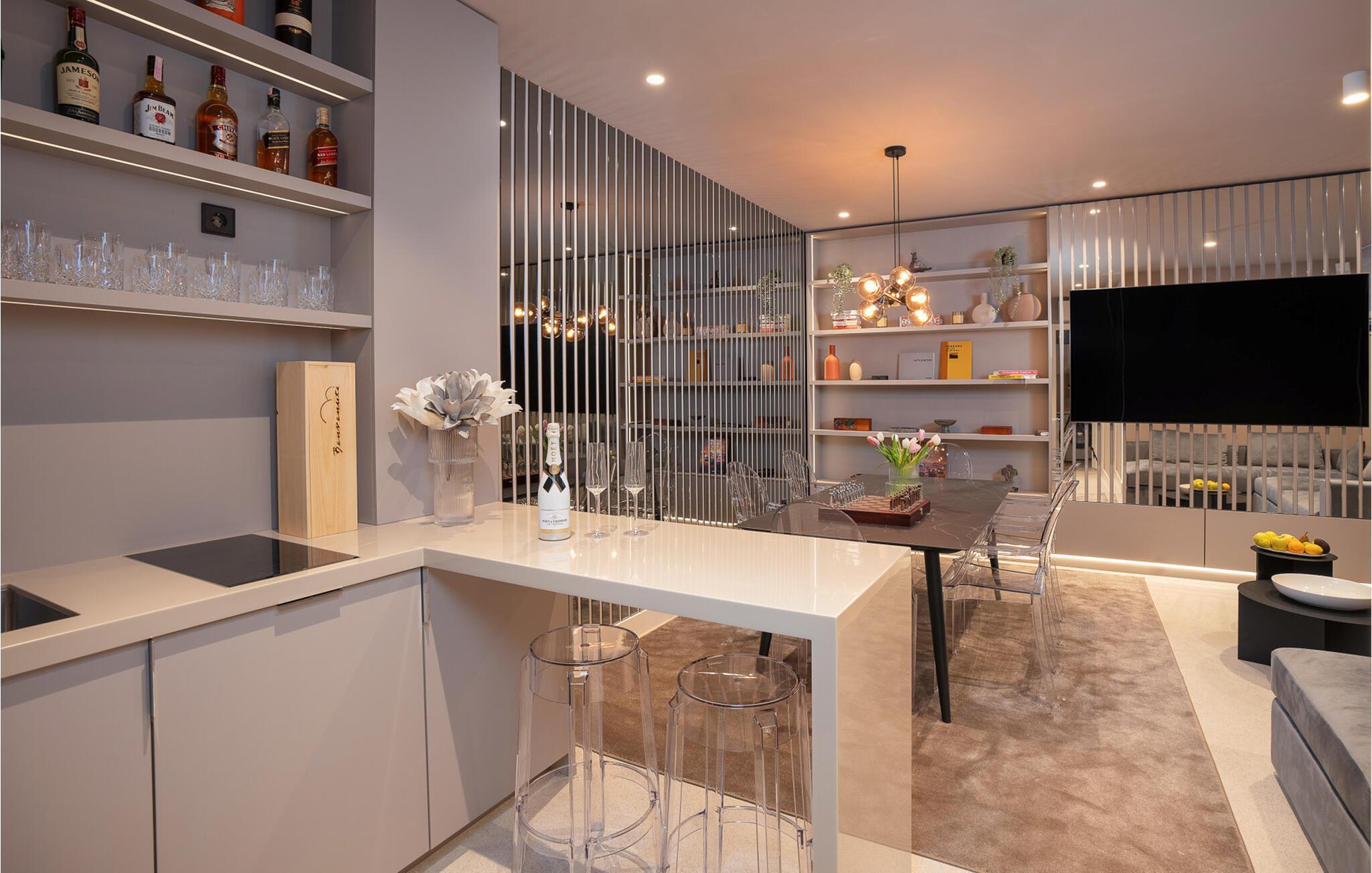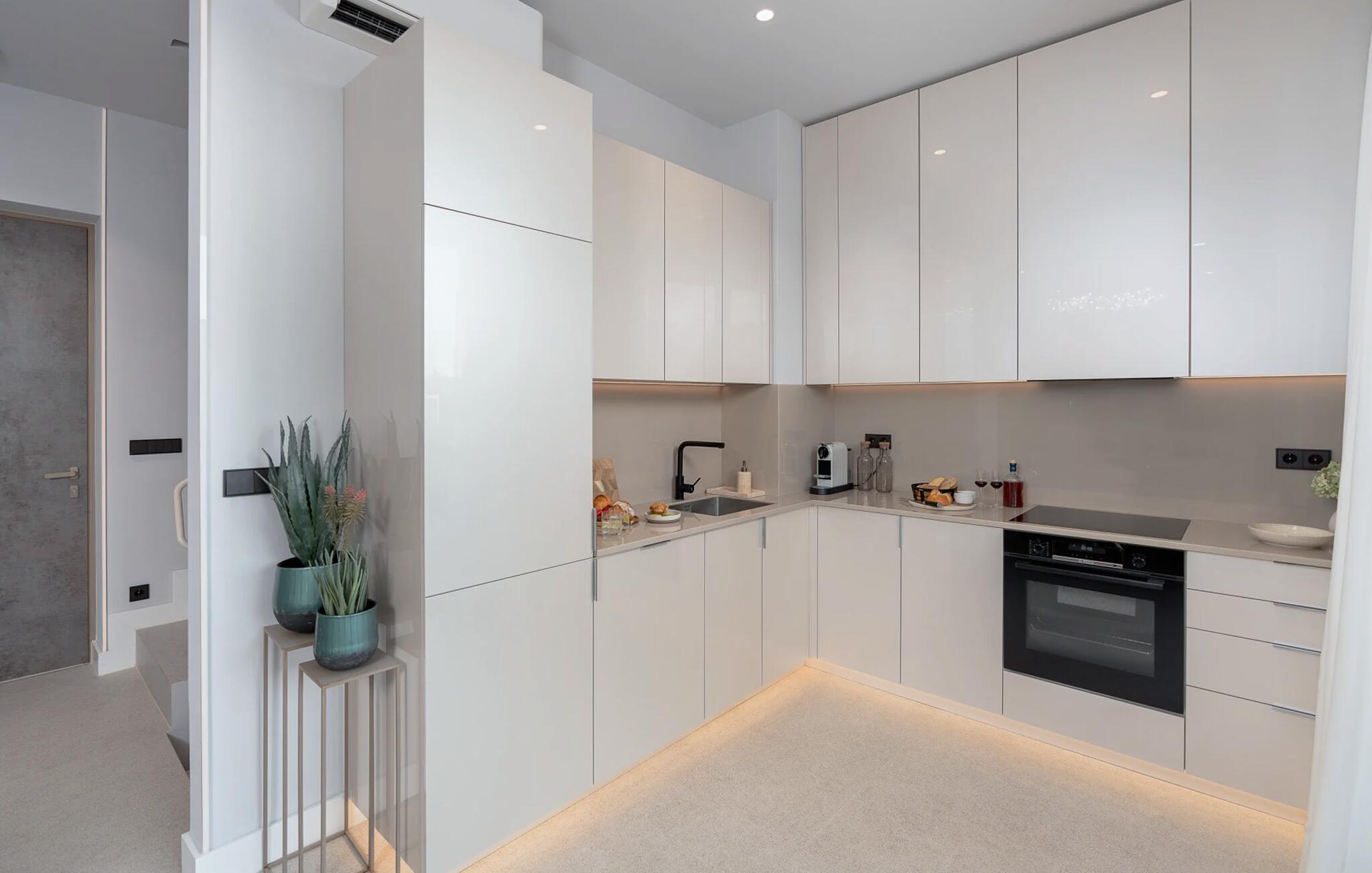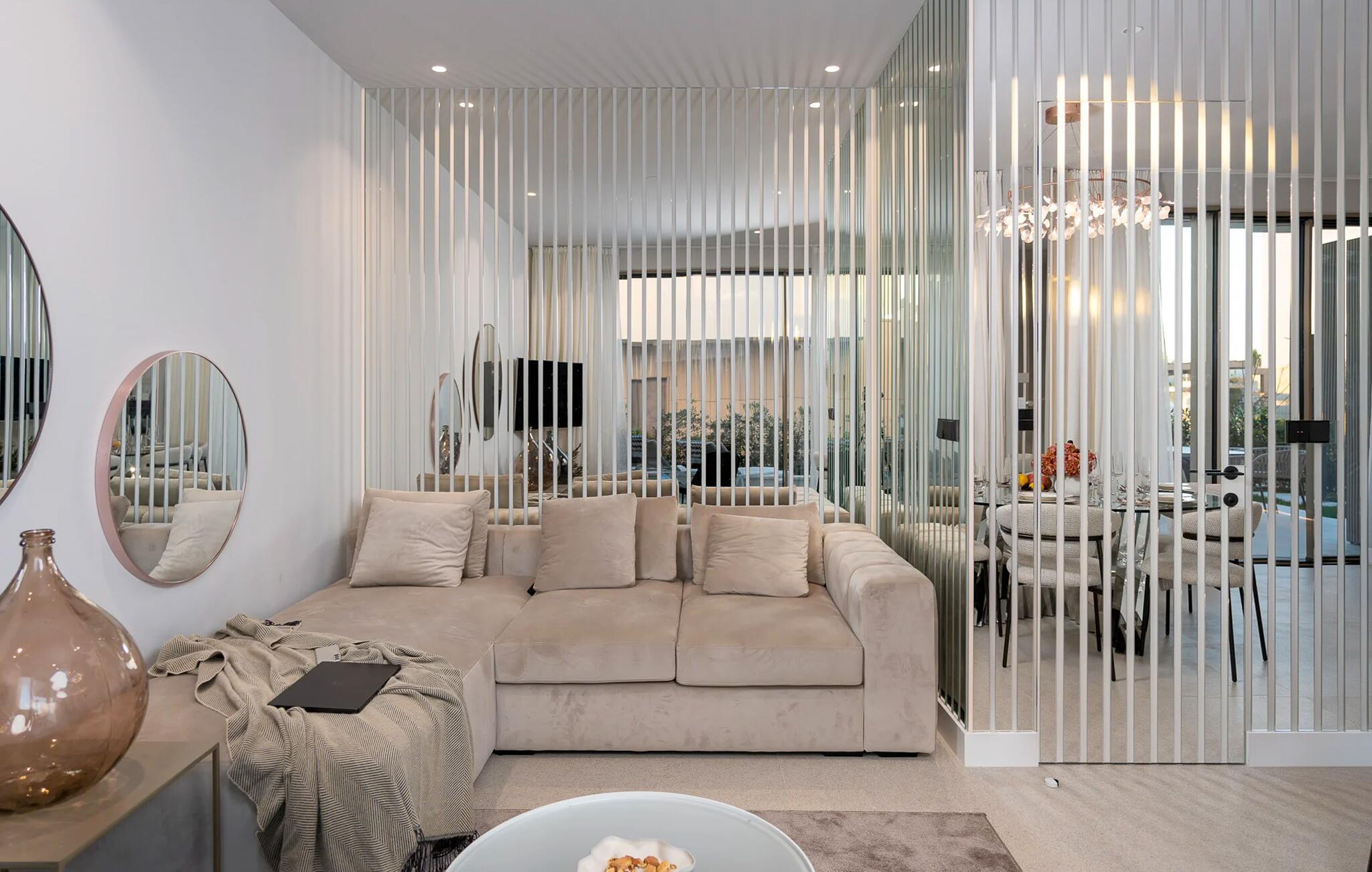 Den solfylte terrassen med komfortable solsenger og innbydende sitteplasser forvandles til en stemningsfull oase om kvelden. Unn deg en avslappende dukkert i saltvannsbassenget på varme sommerkvelder, stream en film på utendørs-TV-en og slå deg ned ved siden av oliventreet for å prate over en grillmat.