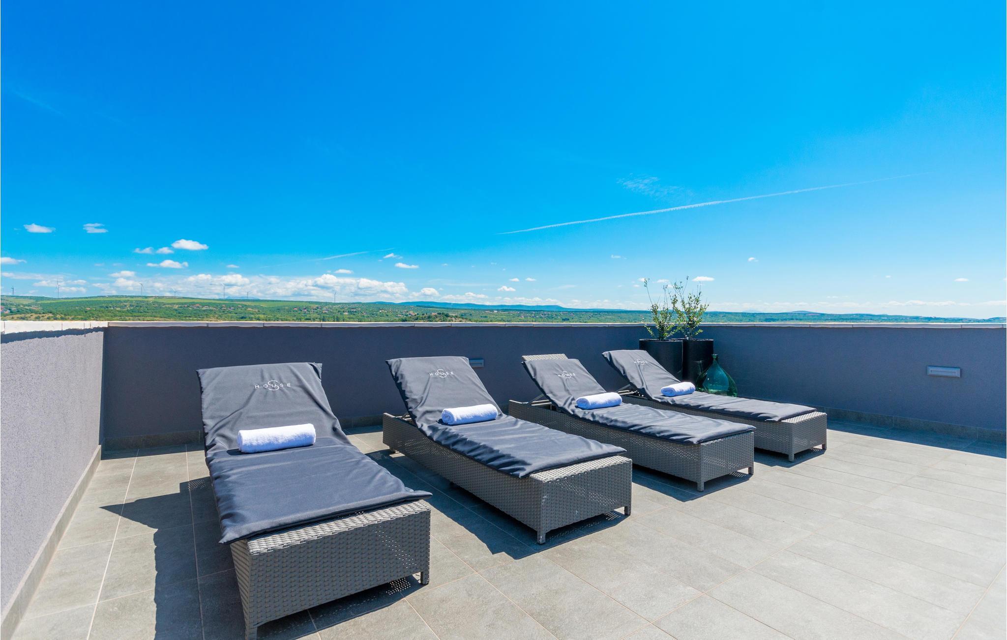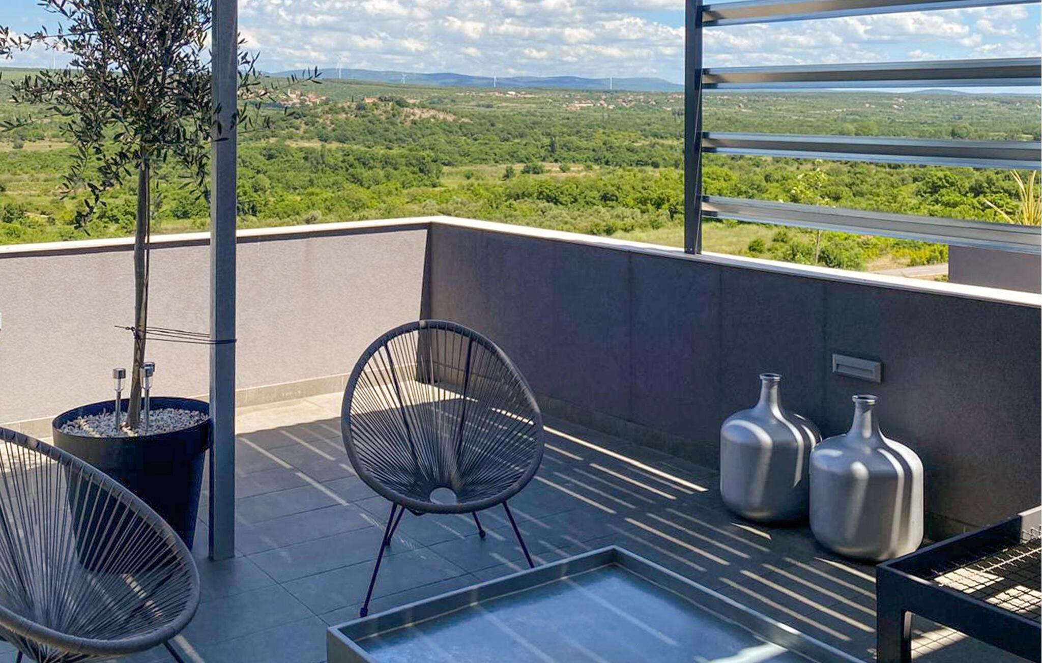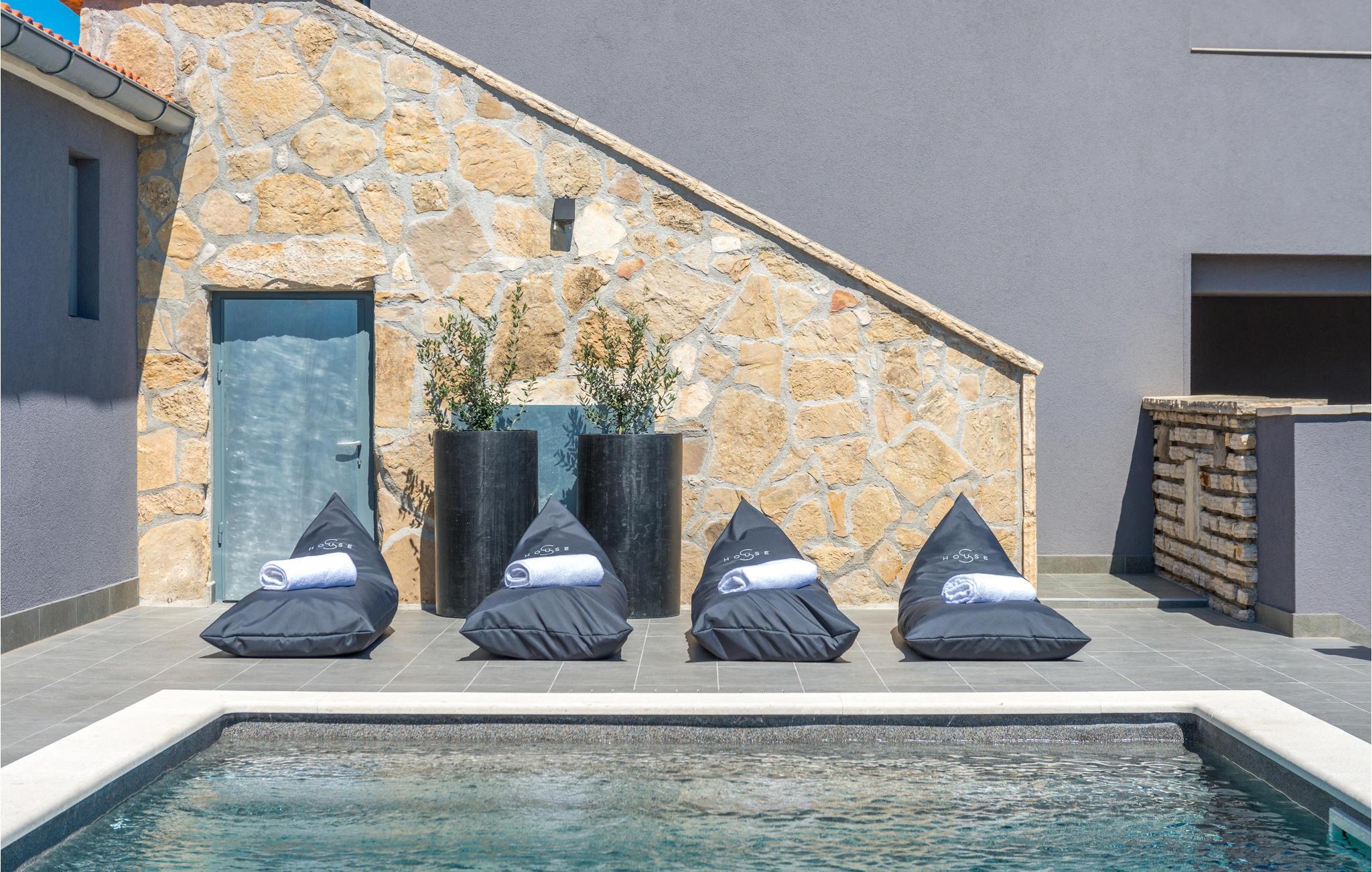 Dette vakre feriehuset ligger i Nadin i nærheten av Zadar. De spesielle detaljene i interiøret er de unike møblene laget av utleier. Bassenget ligger i mellometasjen og er beskyttet mot all utsikt, der kan du slappe av i solen og lese favorittboken din. Den romslige, åpne terrassen har utsikt over det omkringliggende landskapet. Aktive feriegjester vil nyte å utforske omgivelsene med de to syklene som er tilgjengelige. Vi anbefaler deg å smake på de beste vinene i regionen, og ikke gå glipp av å smake på den gullbelønte olivenoljen. Besøk byen Zadar, som er full av historie, men som også begeistrer med sin moderne arkitektur. Opplev en av de vakreste solnedgangene i Europa fra kysten av Zadar.