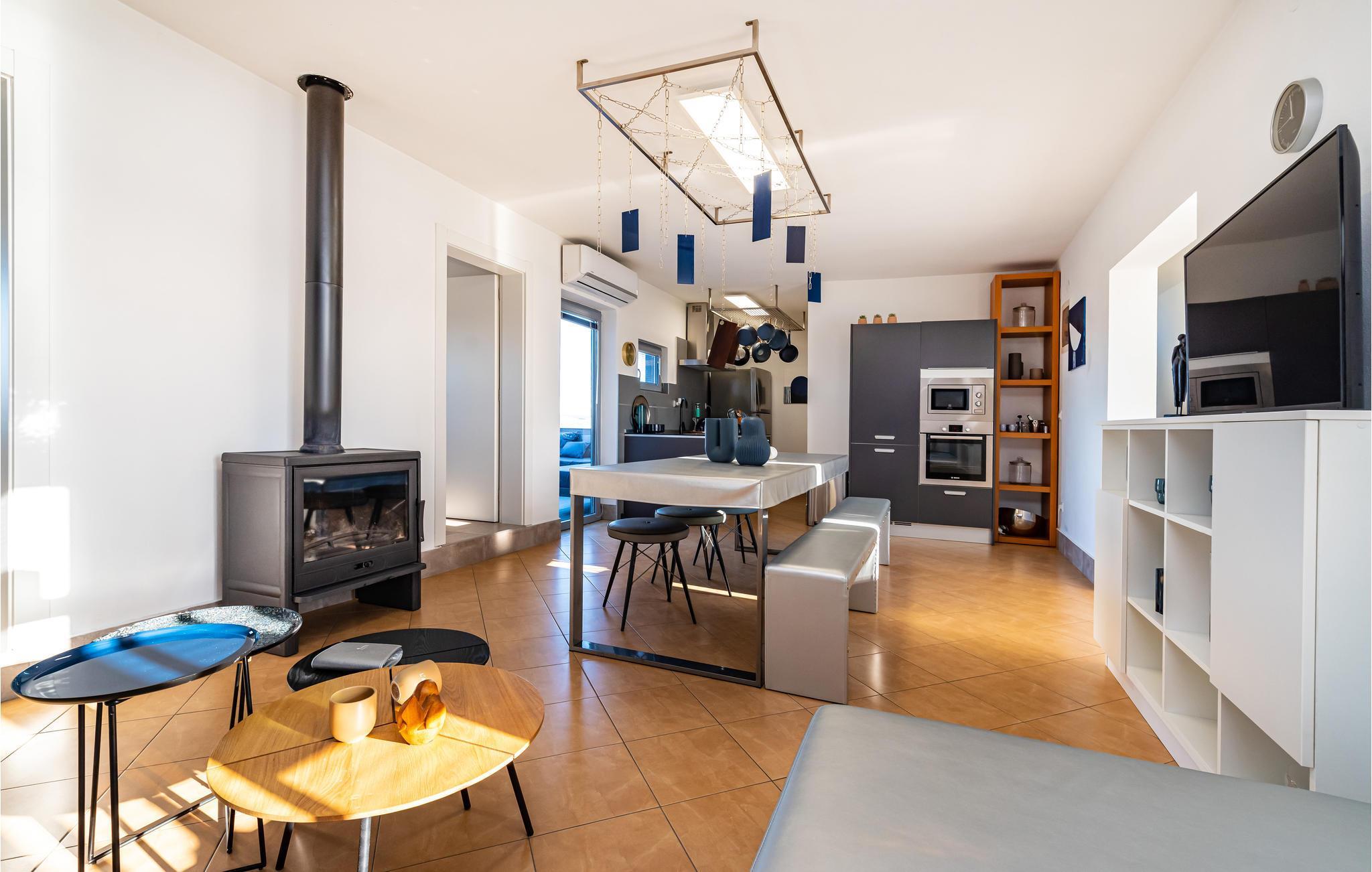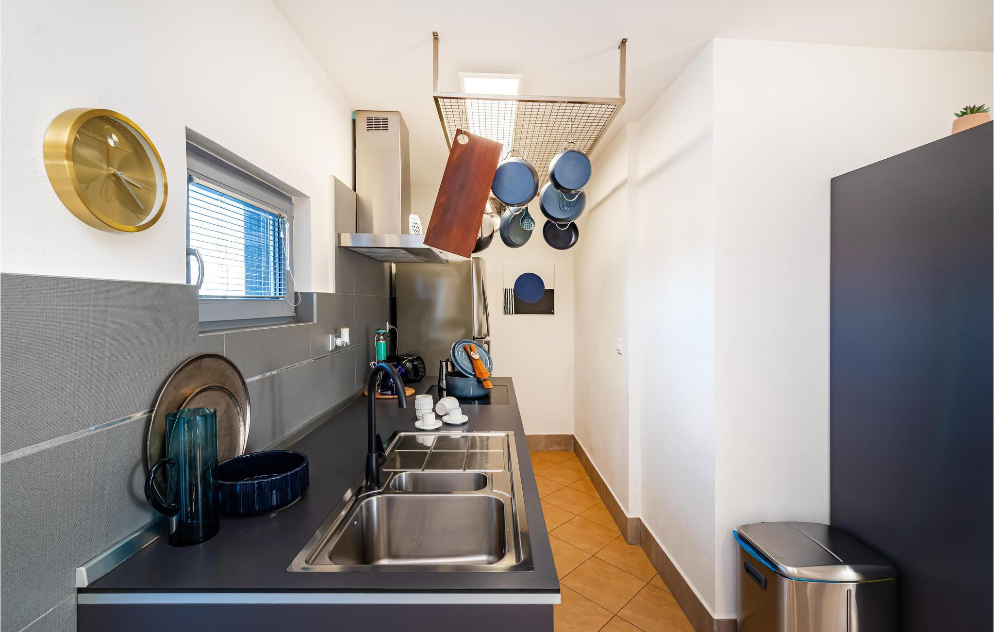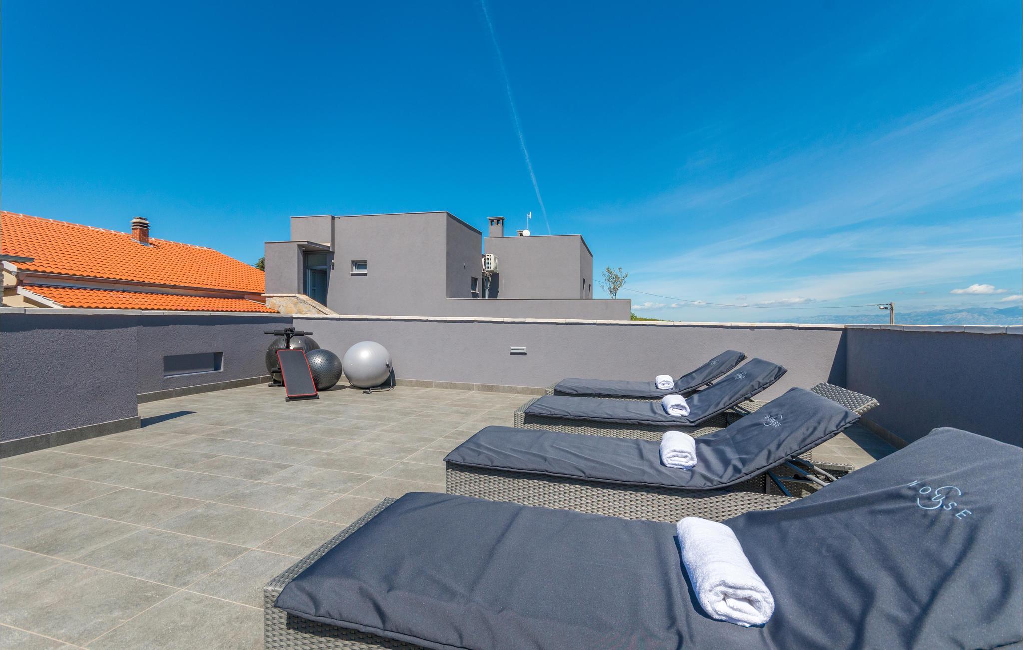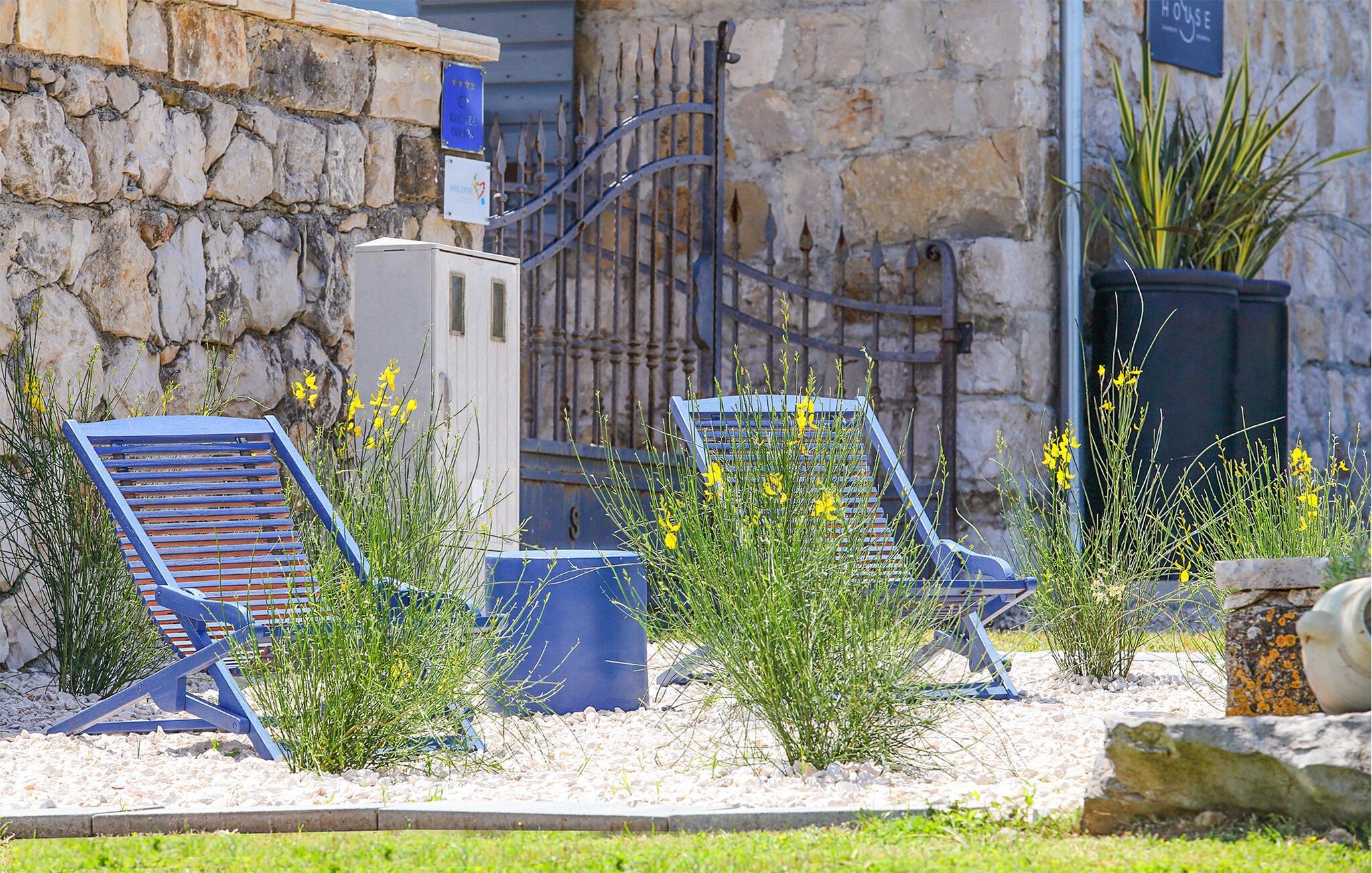 Dette vakre feriehuset ligger i Nadin i nærheten av Zadar. De spesielle detaljene i interiøret er de unike møblene laget av utleier. Bassenget ligger i mellometasjen og er beskyttet mot all utsikt, der kan du slappe av i solen og lese favorittboken din. Den romslige, åpne terrassen har utsikt over det omkringliggende landskapet. Aktive feriegjester vil nyte å utforske omgivelsene med de to syklene som er tilgjengelige. Vi anbefaler deg å smake på de beste vinene i regionen, og ikke gå glipp av å smake på den gullbelønte olivenoljen. Besøk byen Zadar, som er full av historie, men som også begeistrer med sin moderne arkitektur. Opplev en av de vakreste solnedgangene i Europa fra kysten av Zadar.