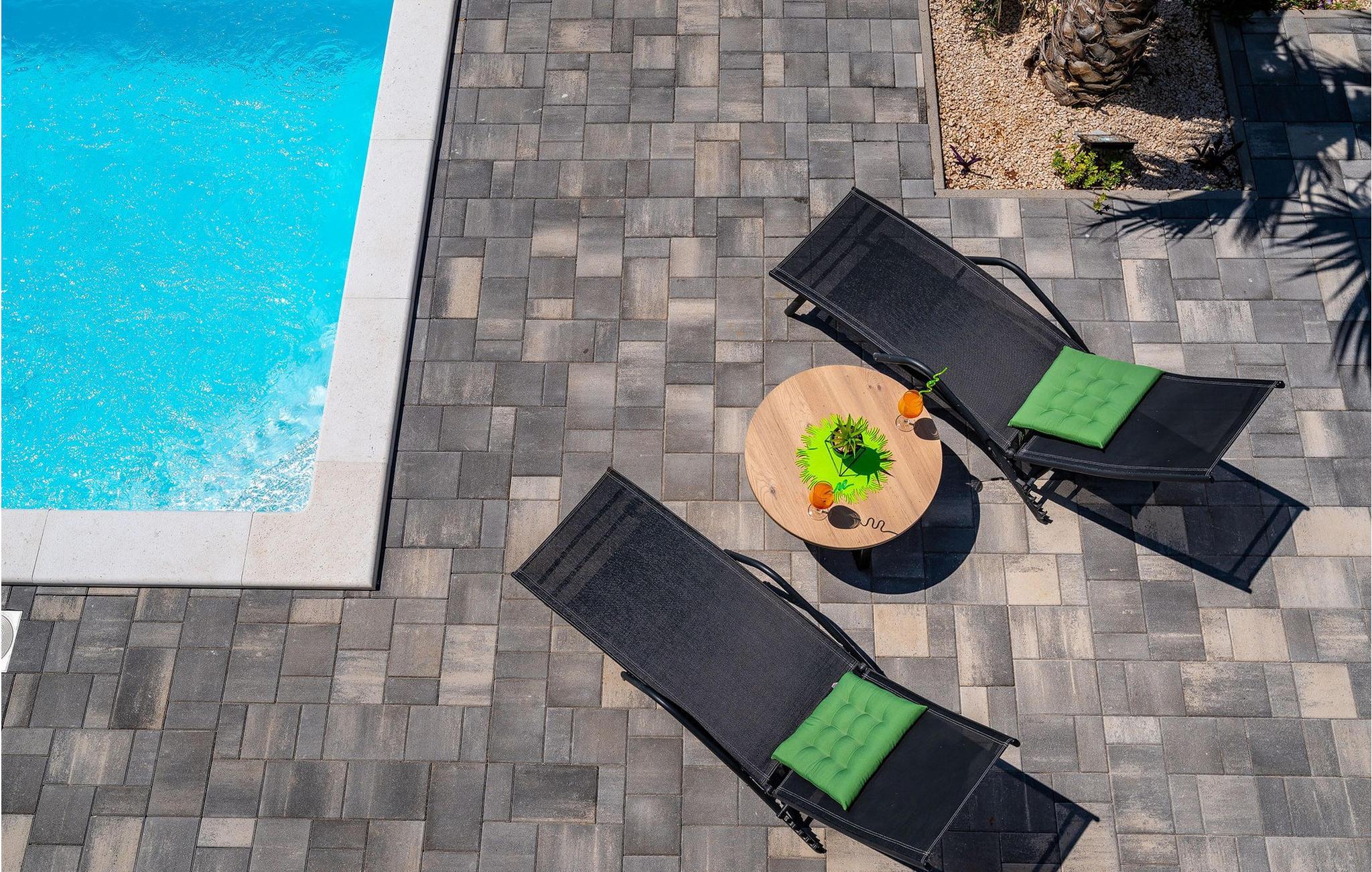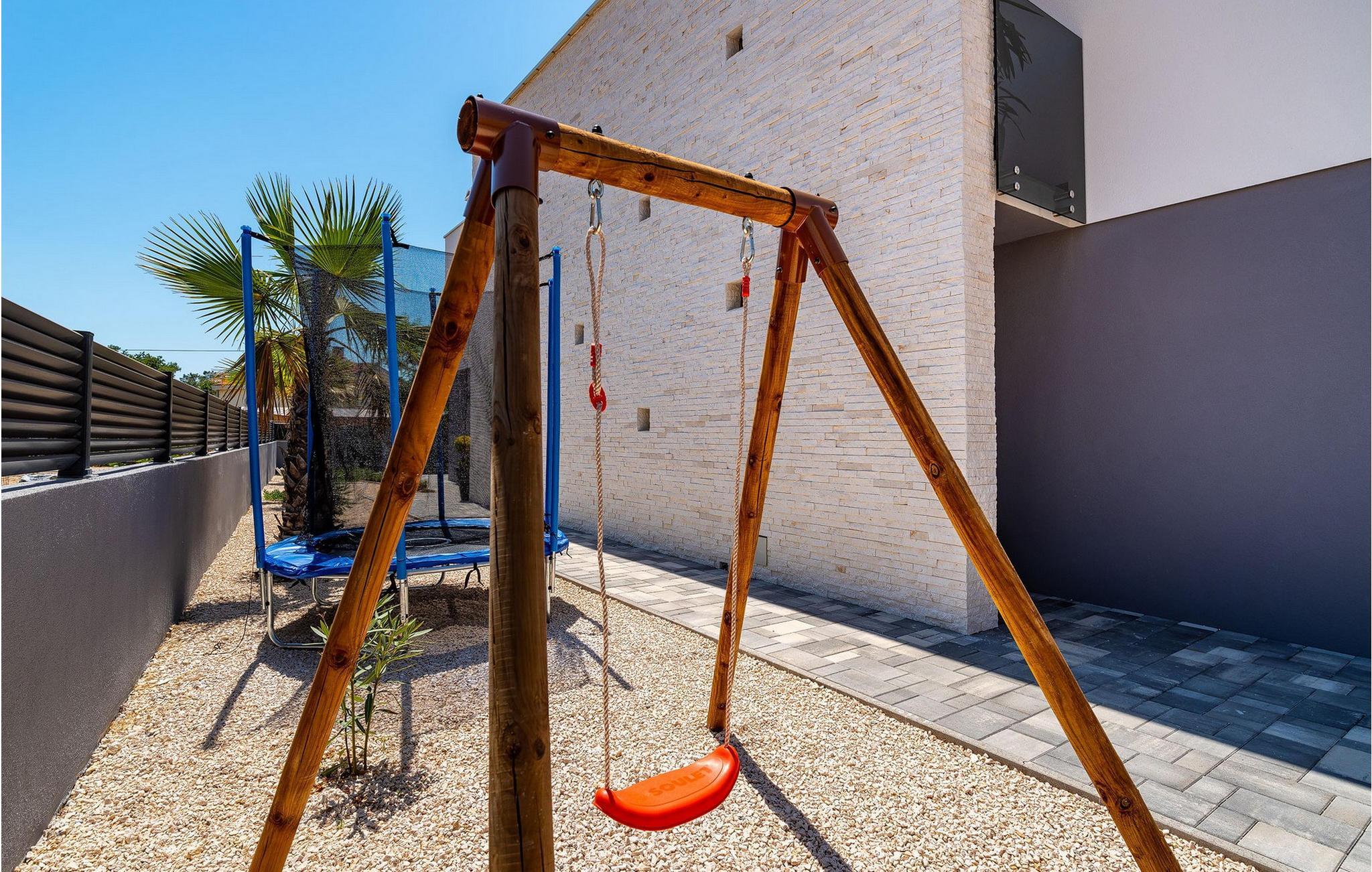Villaens uteområde er perfekt for en avslappende ferie. Hopp i det forfriskende blå bassenget eller nyt middelhavssolen på en av solsengene. Nyt et måltid sammen eller en drink om kvelden på den overbygde terrassen, mens barna gynger i hagen eller leker på trampolinen. Her finner hele familien sin favorittplass.