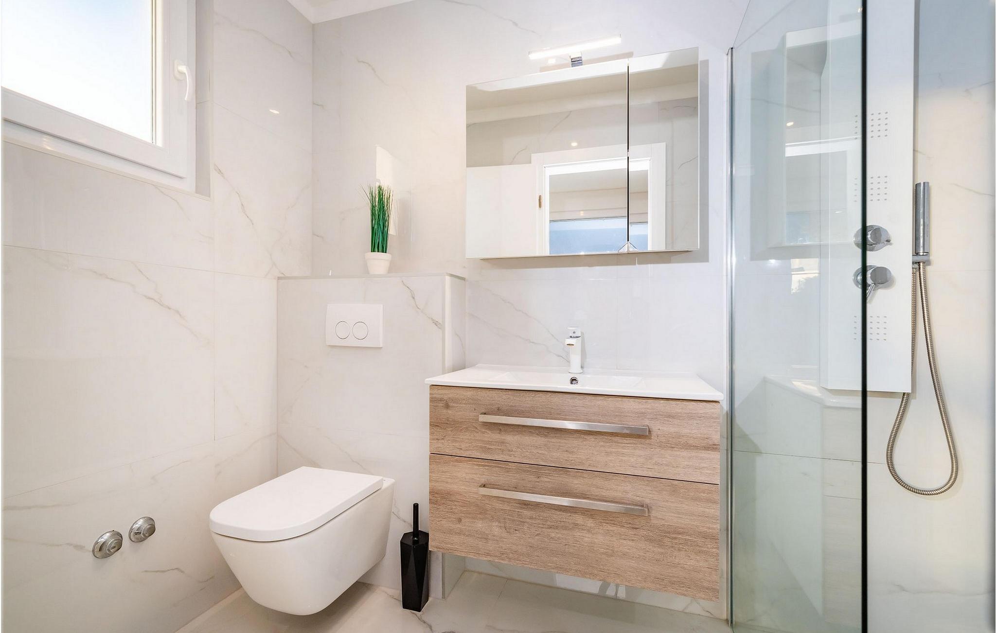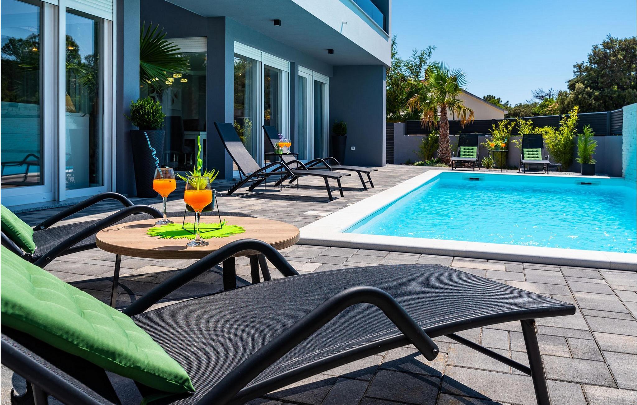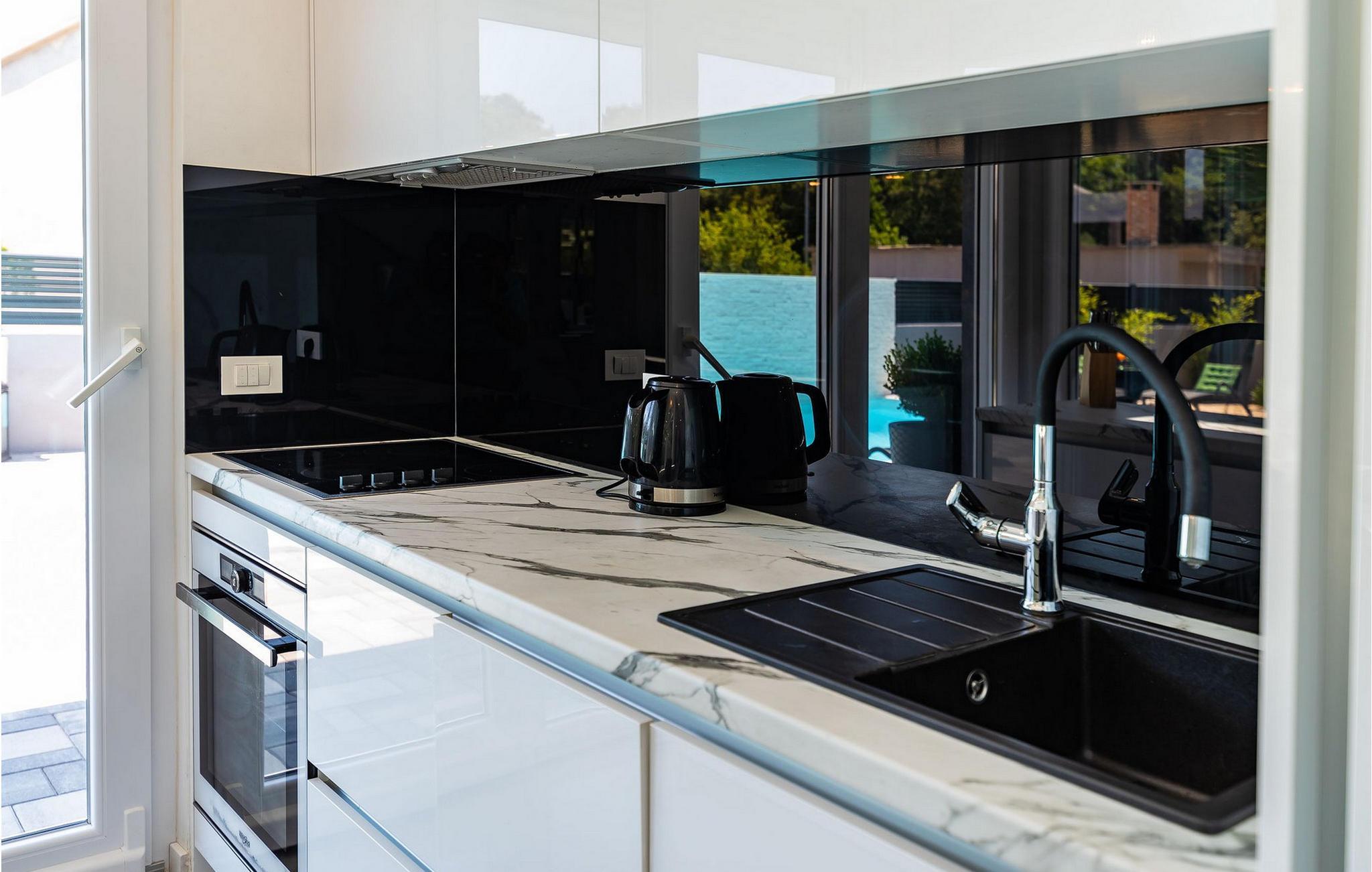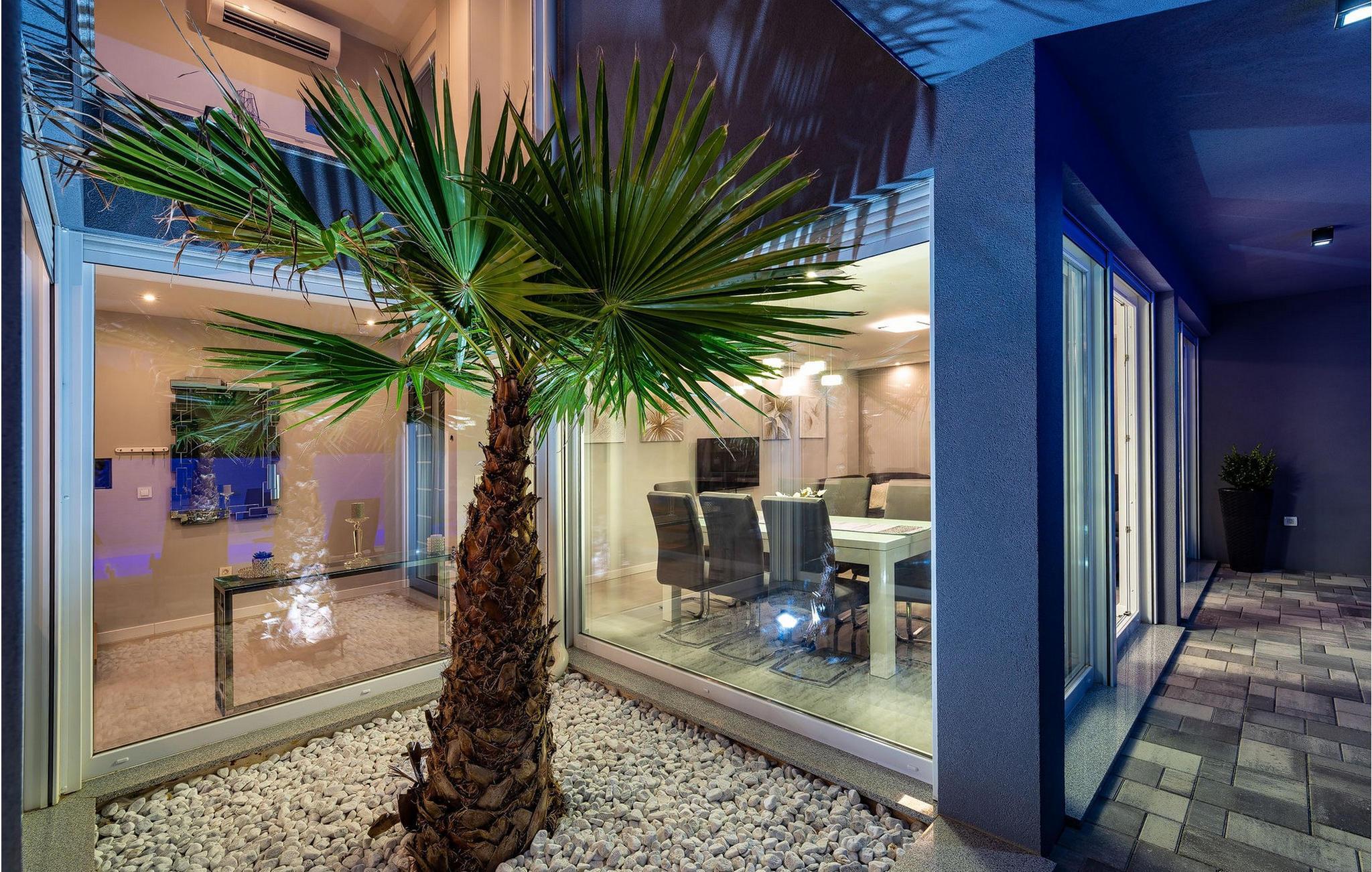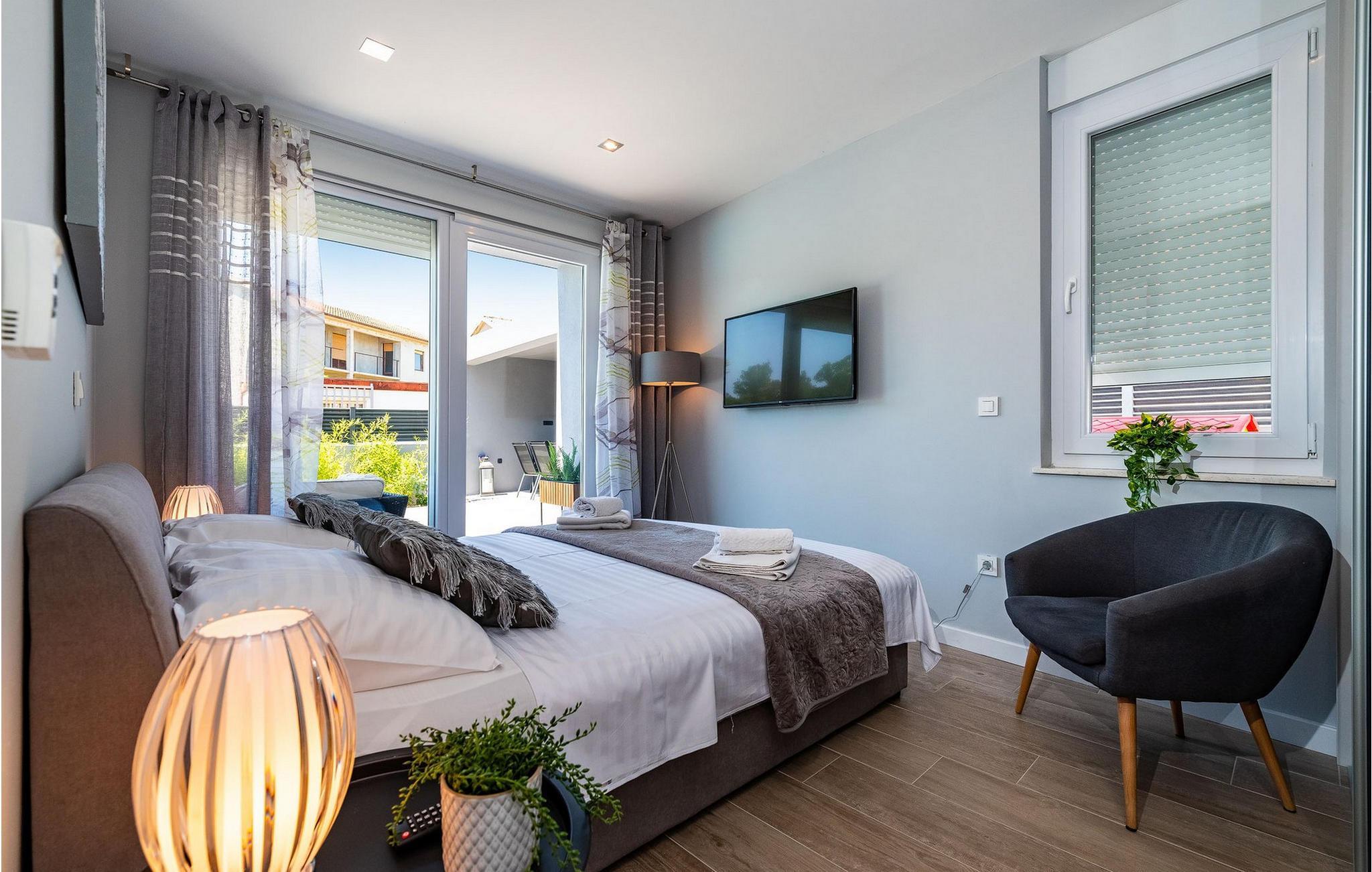 Så snart du kommer inn i Villa Nina Zaton, vil du føle den moderne elegansen og den lyse atmosfæren. Den store, mørke hjørnesofaen innbyr til avslappende filmkvelder, PlayStation og Nintendo Wii, mens salongbordet i glass og stilige veggdekorasjoner gir rommet et sofistikert preg. Spiseplassen med de elegante stolene er det perfekte stedet å sosialisere og nyte utsikten over hagen gjennom de store vinduene. Det åpne, moderne kjøkkenet med sin lyse marmorbenk er det ideelle stedet for å lage mat sammen og tilberede middelhavsspesialiteter.