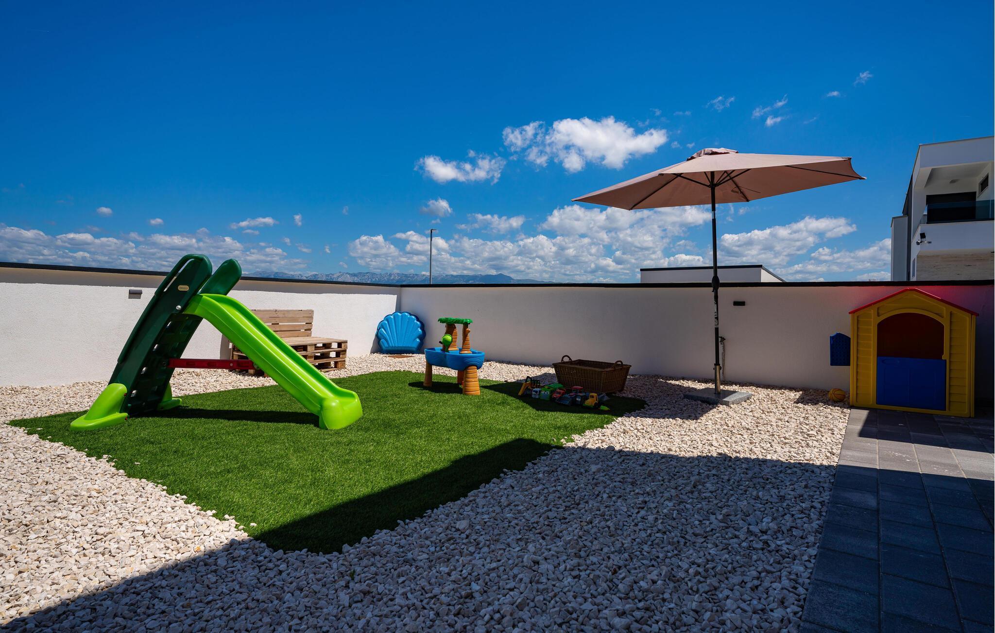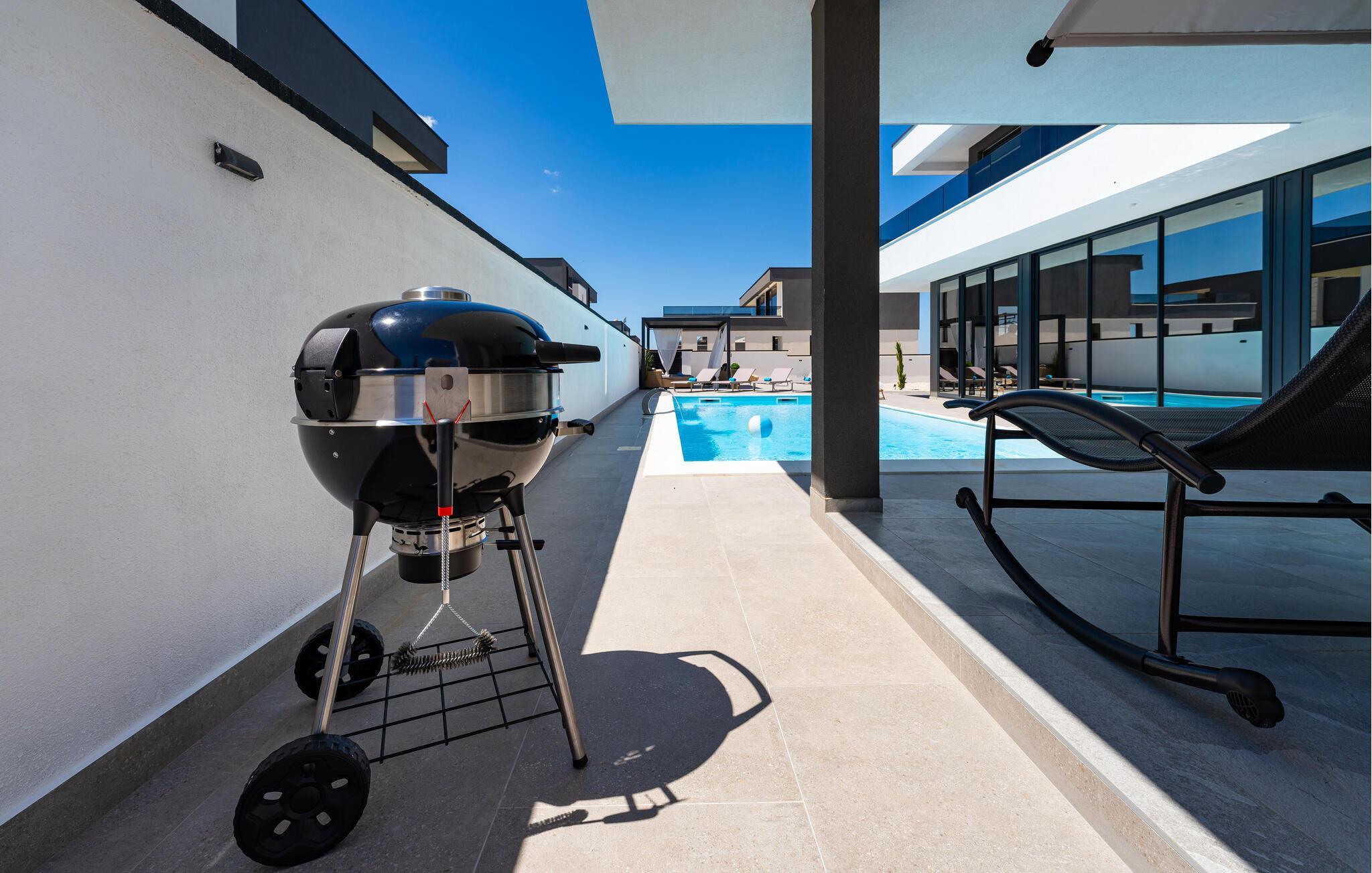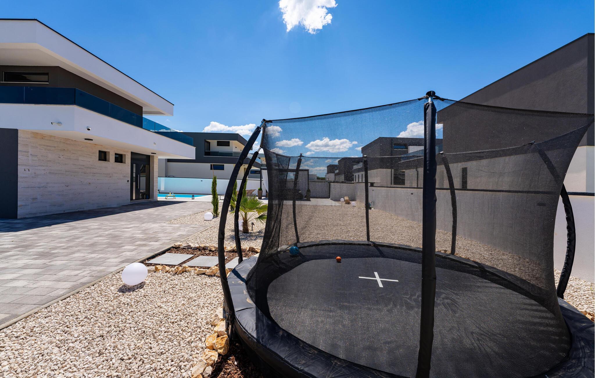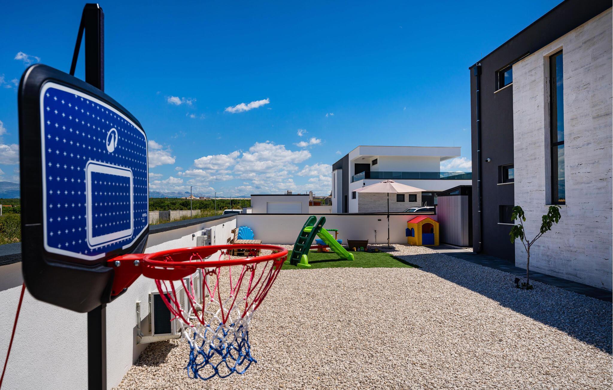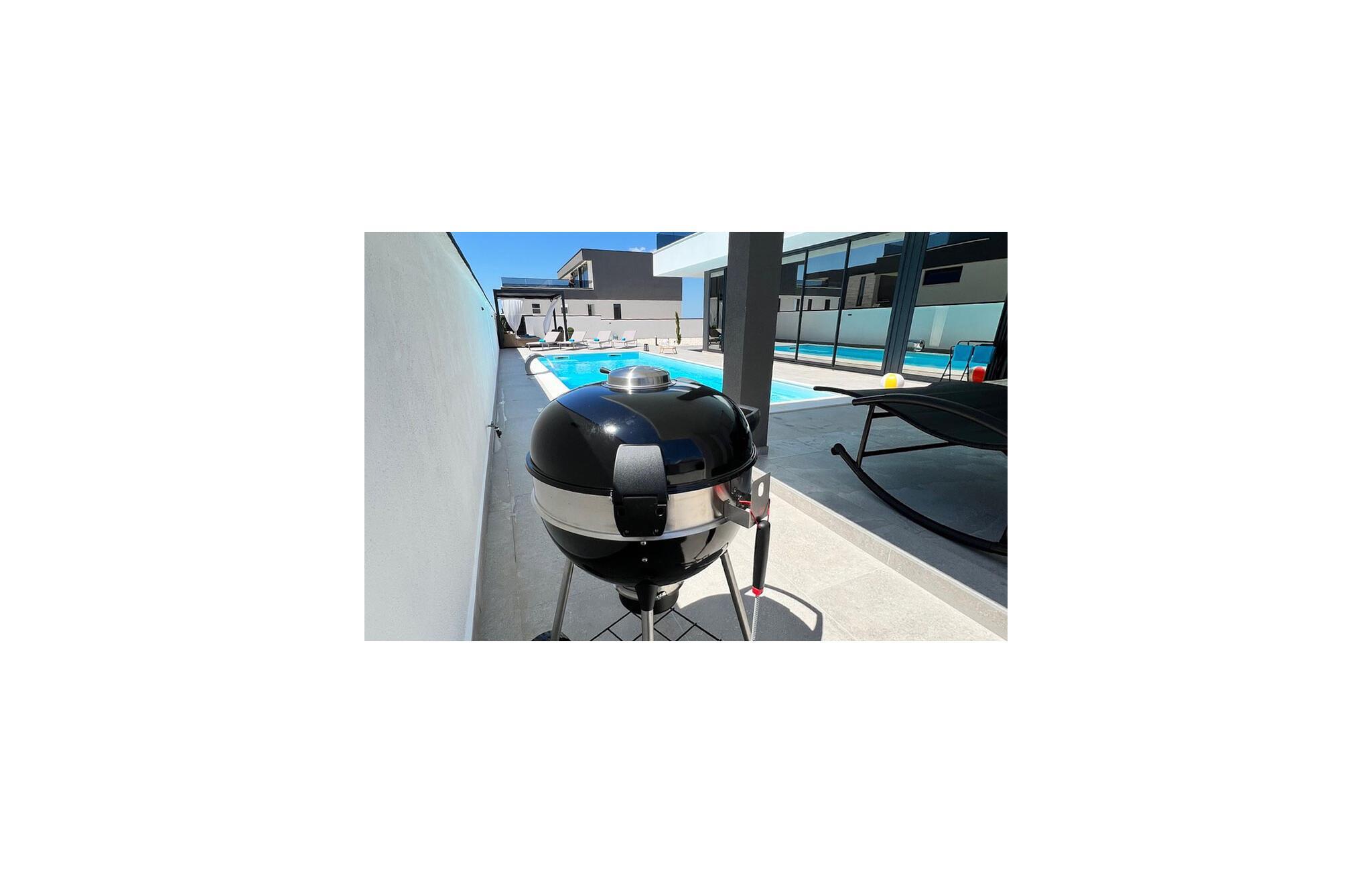 Start dagen med en nybrygget kopp kaffe på den solfylte terrassen. Nyt avslappende timer på solsengene, og unn deg en forfriskende dukkert i bassenget når som helst. En basketballkurv er tilgjengelig for aktive gjester, mens de minste kan utfolde seg i sitt eget lekeområde. Om kvelden kan dere grille deilige retter og samles til et måltid under stjernene.