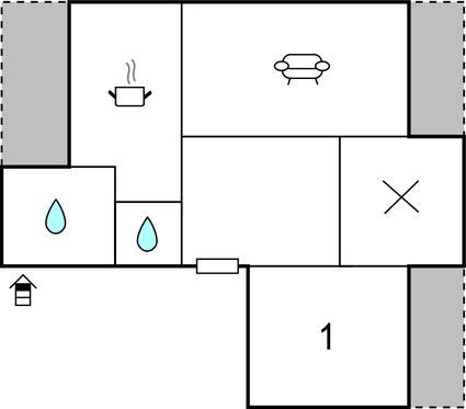 Stue 16m2 - 2 Soveplasser. (Sovesofa, madrass eller lign.).