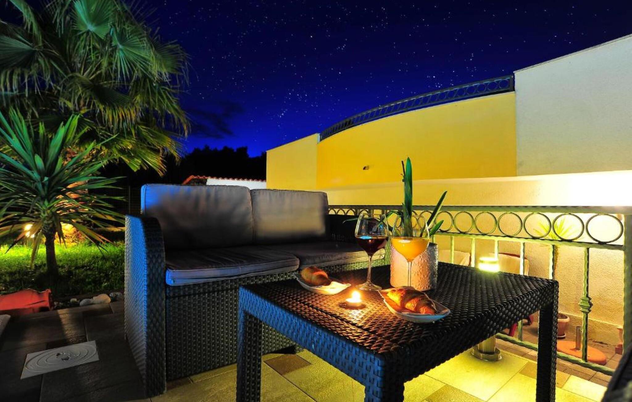 Denne innbydende og komfortable ferieleiligheten ligger i et familiehus med flere ferieleiligheter. Alle leilighetene inviterer små familier til en avslappende ferie i Dalmatia. Nyt de vakre møblene og det gode utstyret i den koselige leiligheten, der dere kan lage mat, slappe av eller leke sammen.