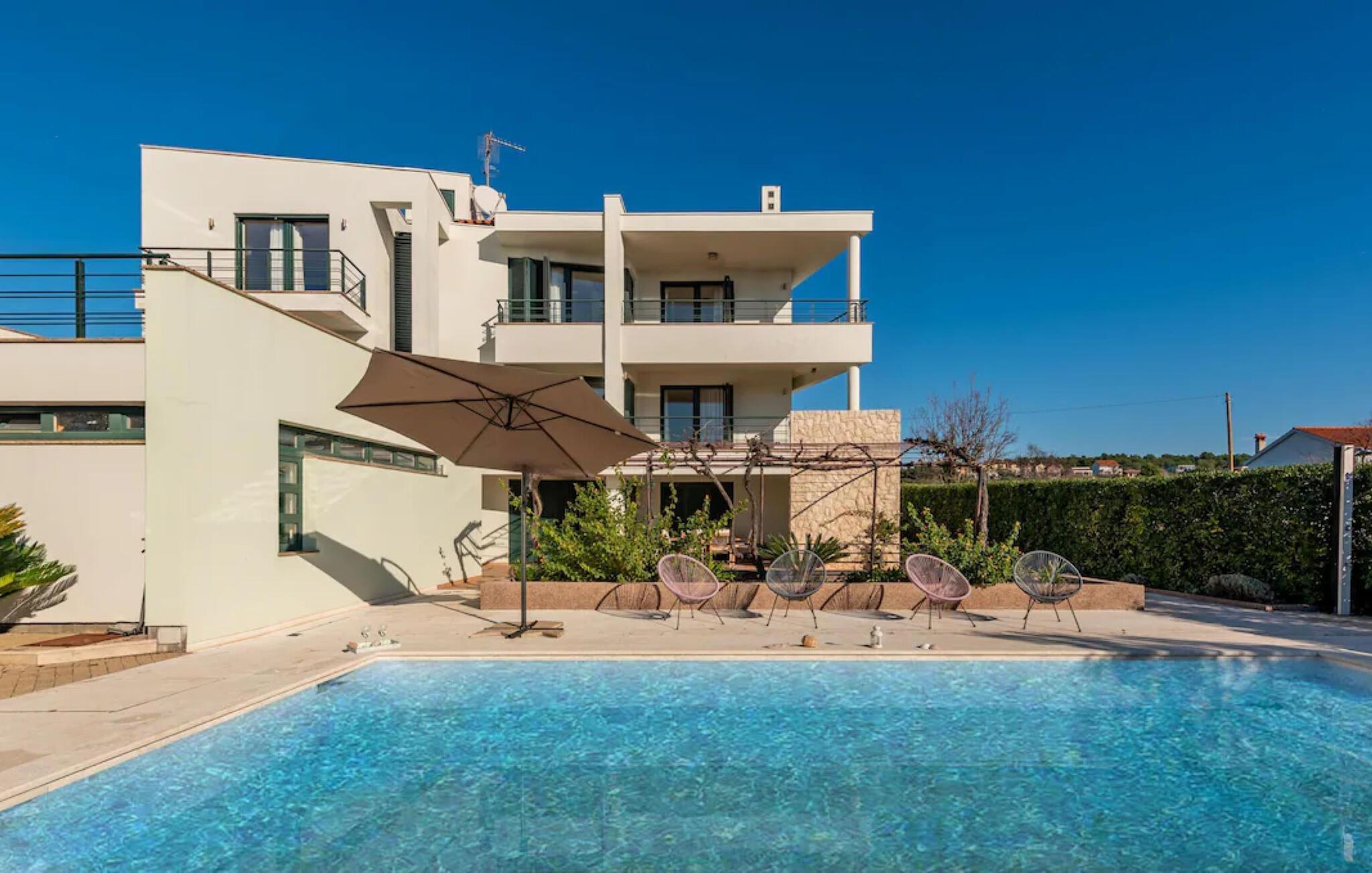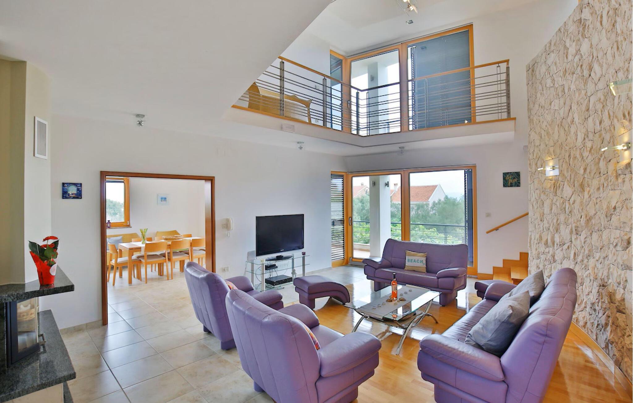 Ditt romslige feriehus i Zadar med plass til en større gruppe tilbyr deg en herlig blanding av avslapning og eventyr. Tilbered måltidene dine på det fullt utstyrte kjøkkenet, og spis deretter i den elegante spisestuen. Benytt deg av de komfortable møblene i stuen for å slappe av. De koselige sofaene og den moderne atmosfæren skaper den ideelle stemningen.