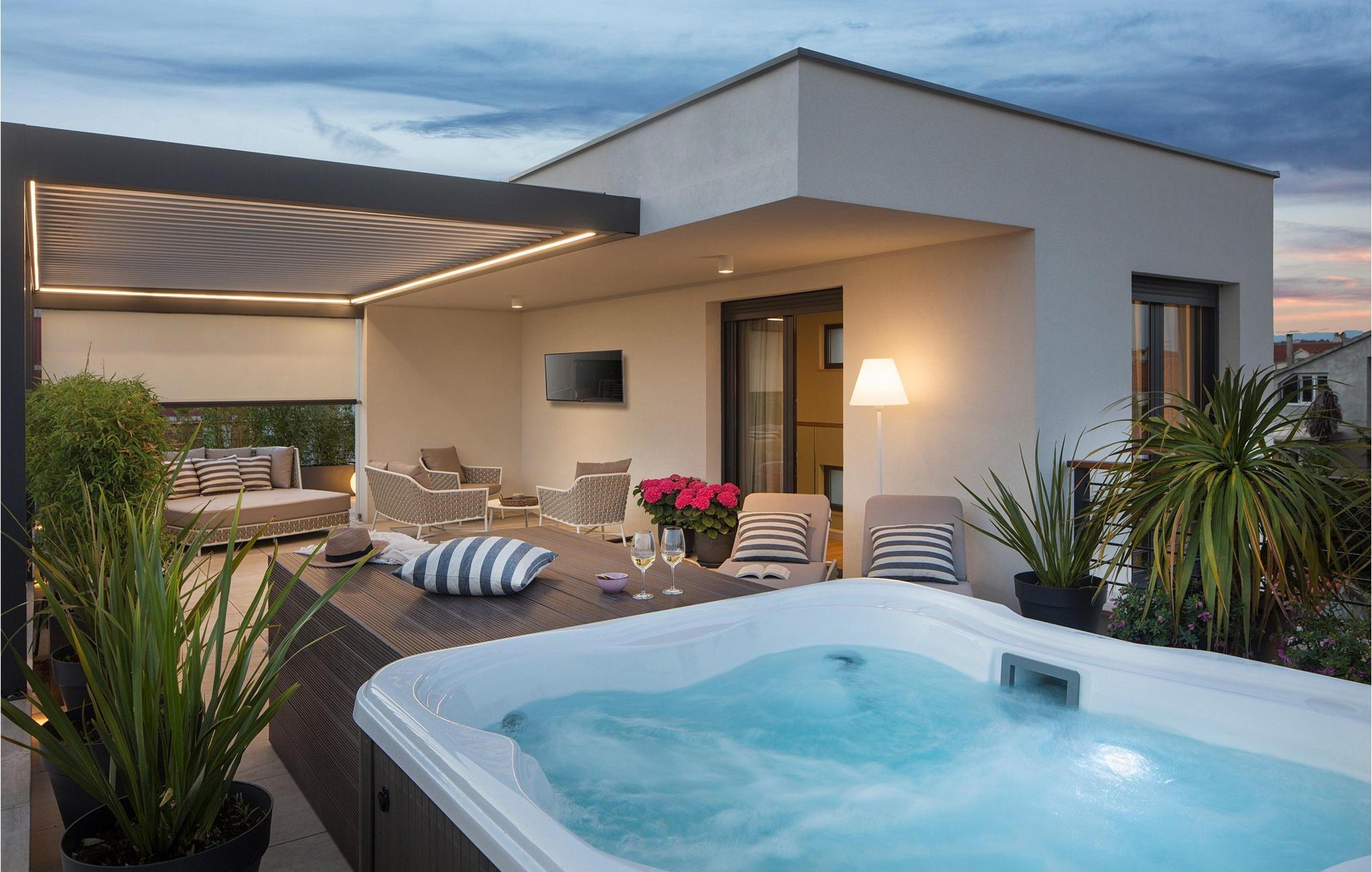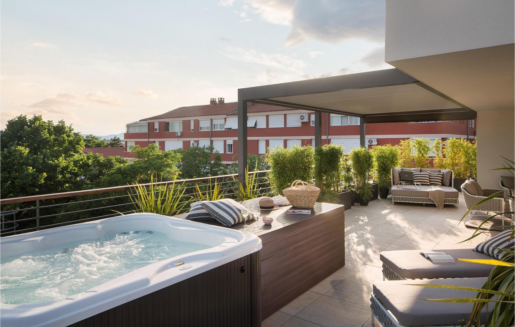 Den elegante Villa Tereza ønsker deg velkommen til hjertet av Zadar, og byr på lyse, romslige soverom og stilfulle oppholdsrom. Det fullt utstyrte kjøkkenet og spiseplassen innbyr til sosialt samvær, mens hagen med svømmebasseng og grillplass er ideell for en avslappende ferie. Et høydepunkt er takterrassen med boblebad, som gir deg en fantastisk utsikt over byen - ideelt for å slappe av på slutten av dagen.