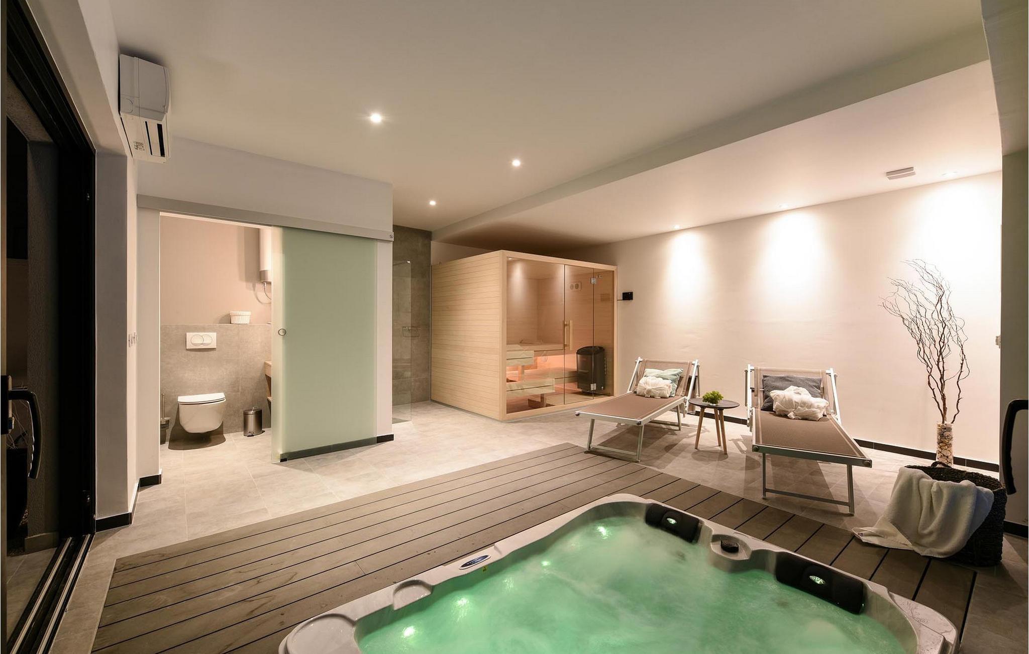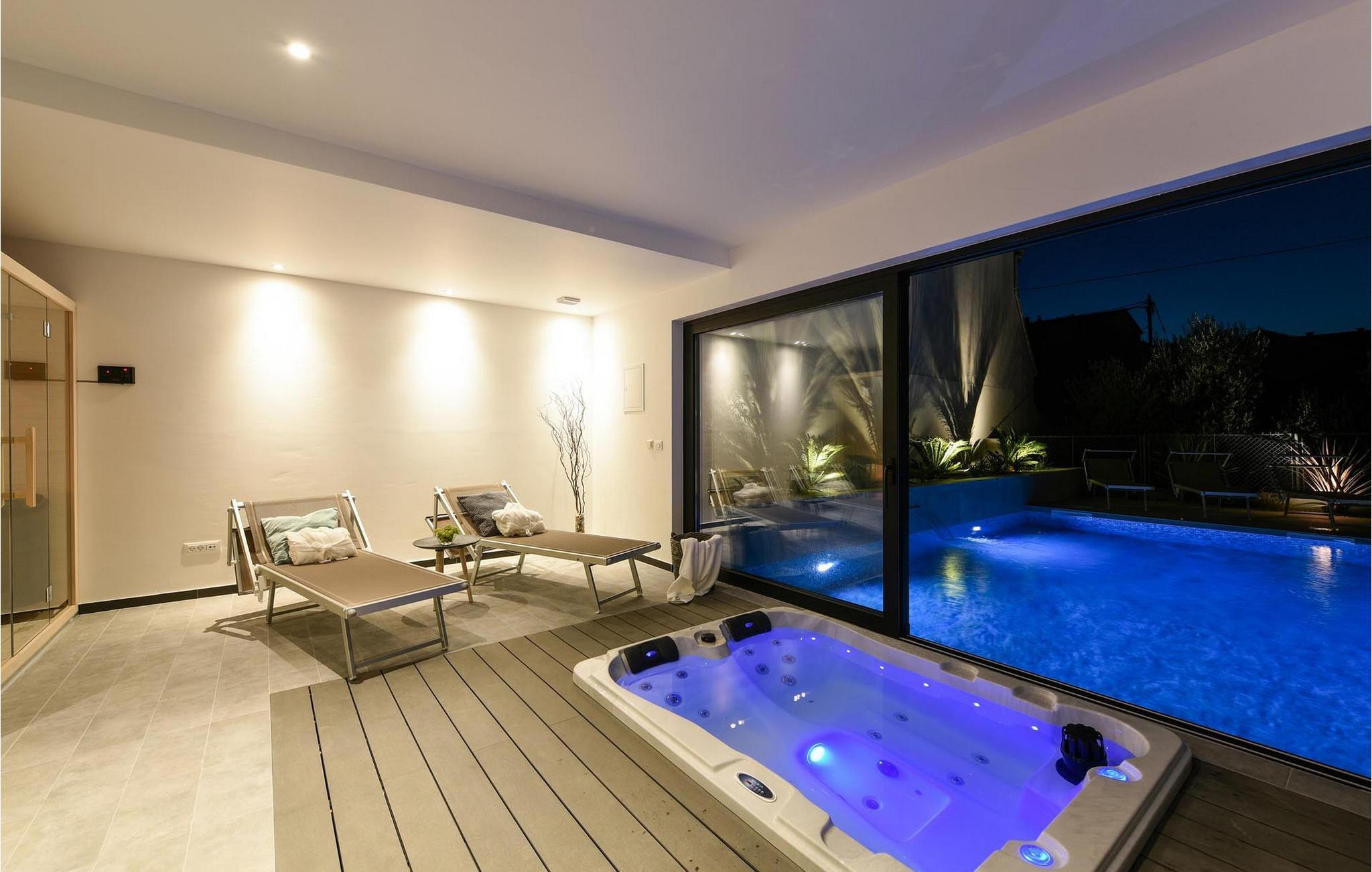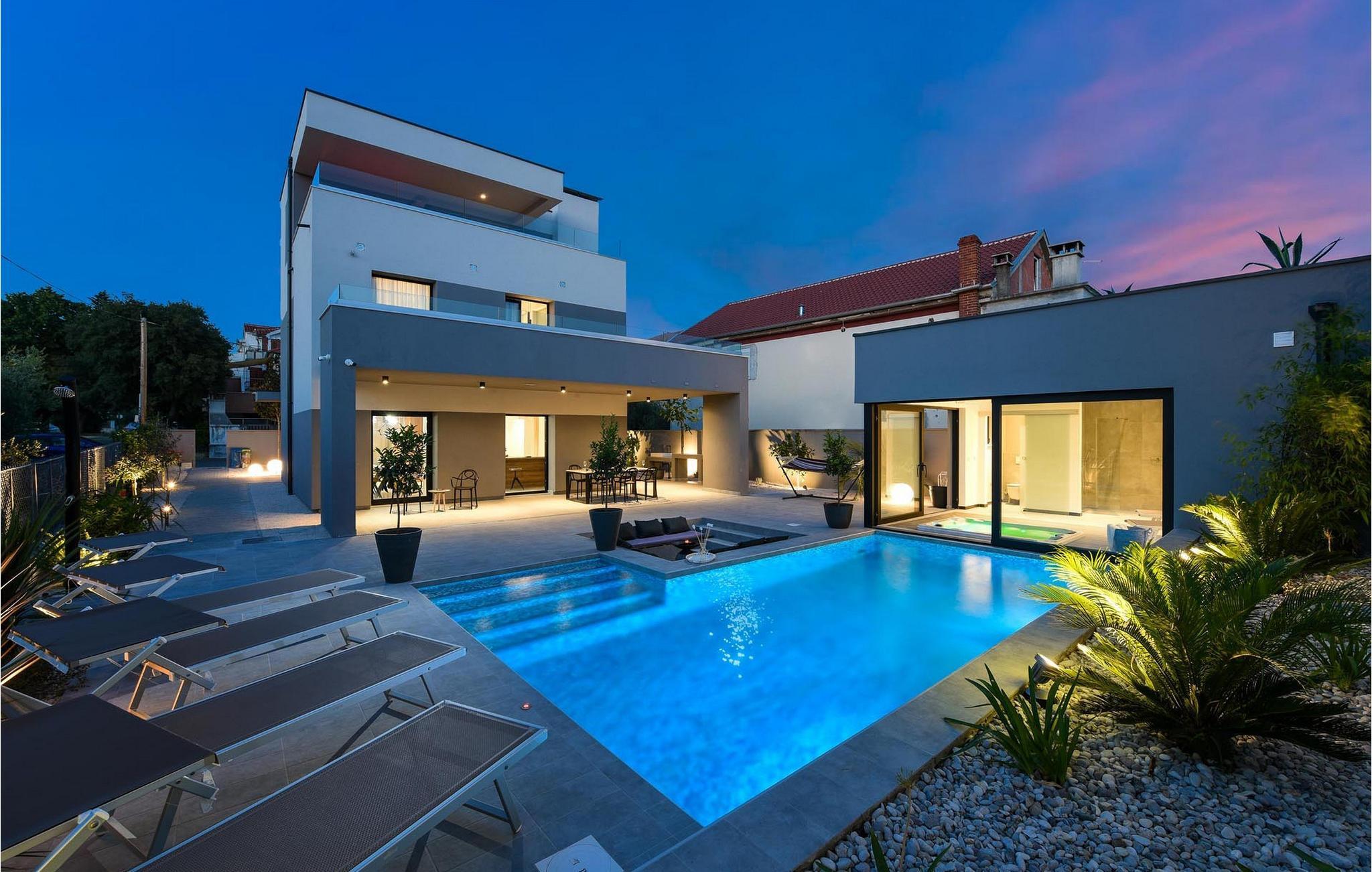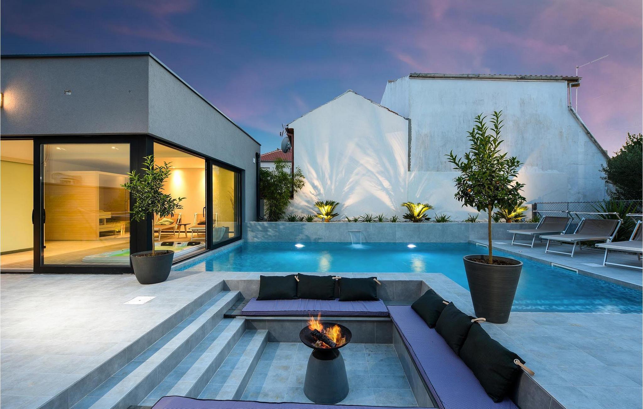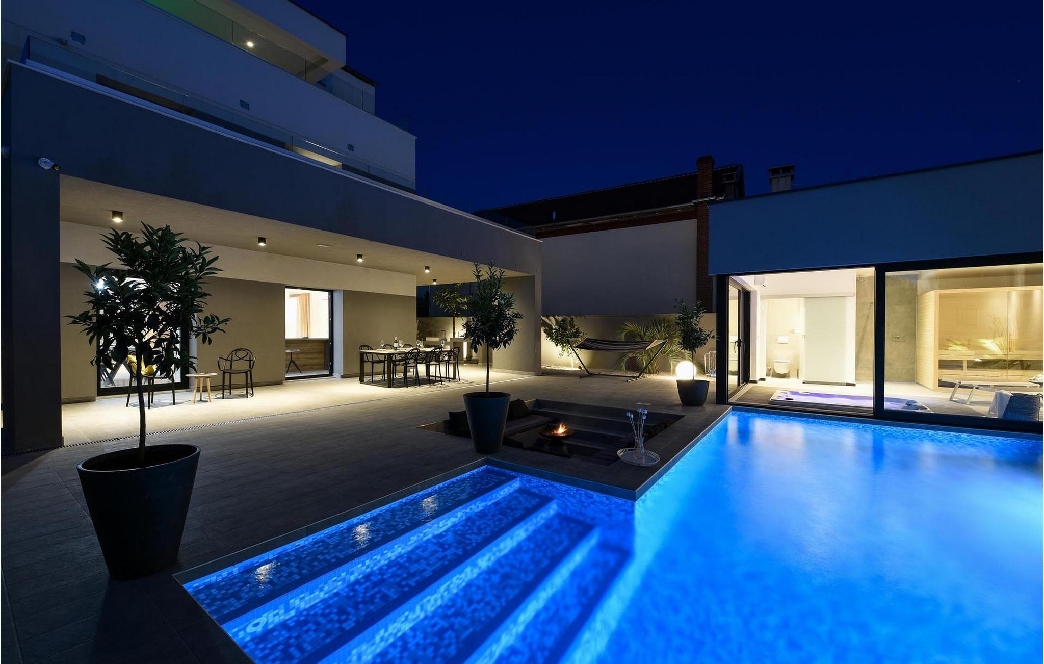 Den eksklusive innkvarteringen Urban Villa Opal i Zadar tilbyr deg det høyeste nivået av komfort og en stilfull atmosfære. De smakfullt innredede oppholdsrommene er gjennomstrømmet av lys og utstyrt med moderne møbler. I første etasje finner du et fullt utstyrt kjøkken som leder inn til en luftig spisestue og en koselig stue. Her kan du samles med familie eller venner, lage mat, spise eller bare slappe av. Soverommene har eget bad, og fra terrassen på hovedsoverommet kan du nyte avslappende stunder i det utendørs boblebadet. En privat spa-avdeling i bassenghuset med badstue, boblebad og treningsutstyr avrunder tilbudet perfekt. Hvis du har lyst på mer variasjon, finnes det mange underholdningsmuligheter som videospill, dart, bordtennis og badminton.