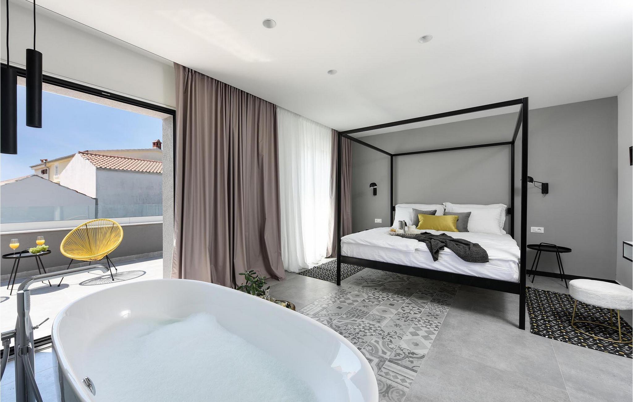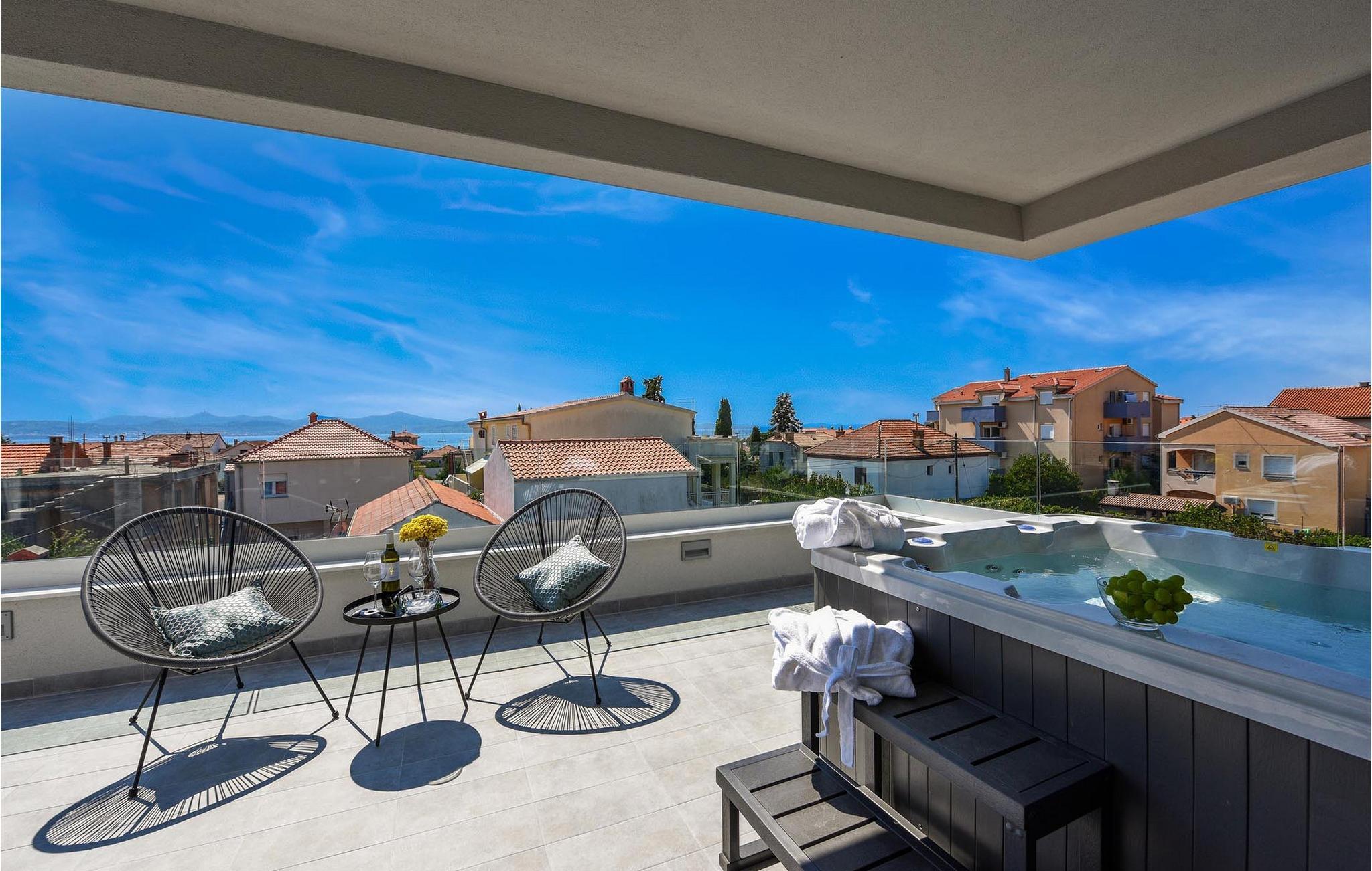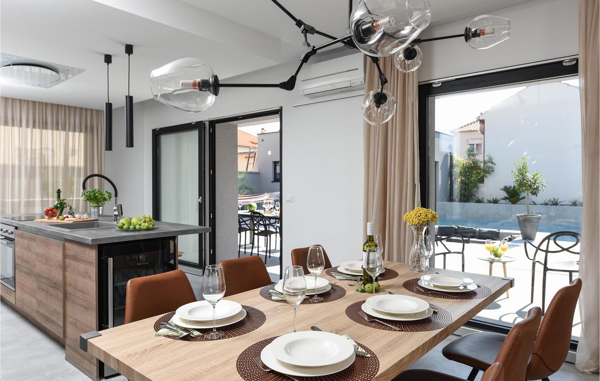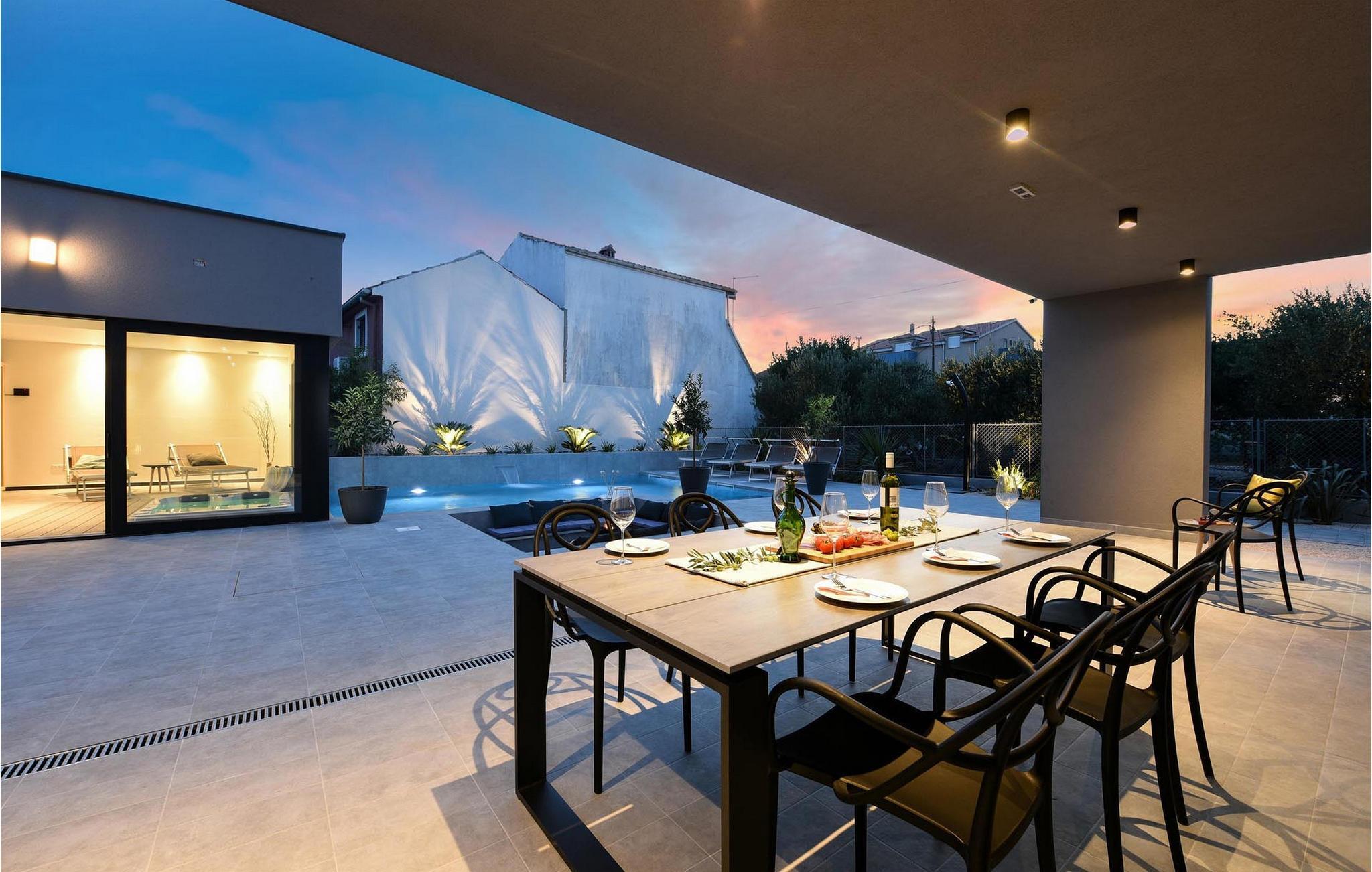 Den eksklusive innkvarteringen Urban Villa Opal i Zadar tilbyr deg det høyeste nivået av komfort og en stilfull atmosfære. De smakfullt innredede oppholdsrommene er gjennomstrømmet av lys og utstyrt med moderne møbler. I første etasje finner du et fullt utstyrt kjøkken som leder inn til en luftig spisestue og en koselig stue. Her kan du samles med familie eller venner, lage mat, spise eller bare slappe av. Soverommene har eget bad, og fra terrassen på hovedsoverommet kan du nyte avslappende stunder i det utendørs boblebadet. En privat spa-avdeling i bassenghuset med badstue, boblebad og treningsutstyr avrunder tilbudet perfekt. Hvis du har lyst på mer variasjon, finnes det mange underholdningsmuligheter som videospill, dart, bordtennis og badminton.