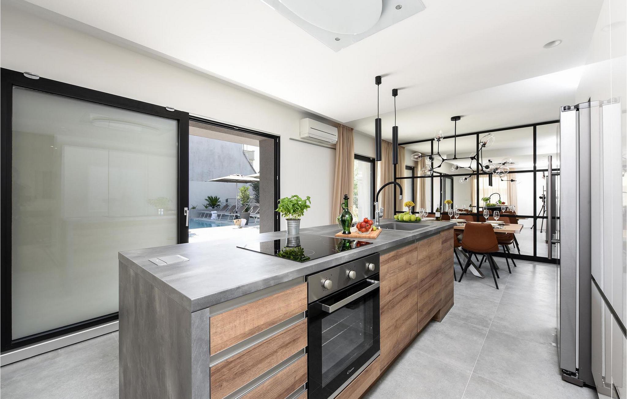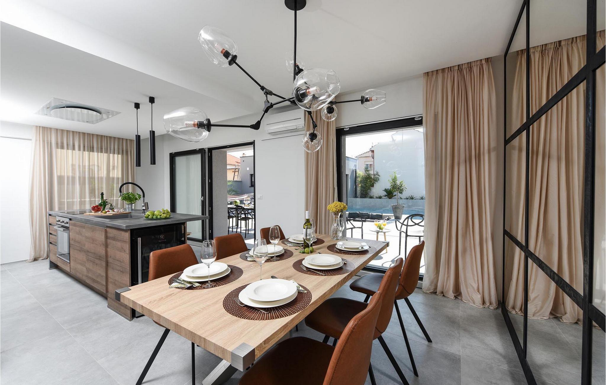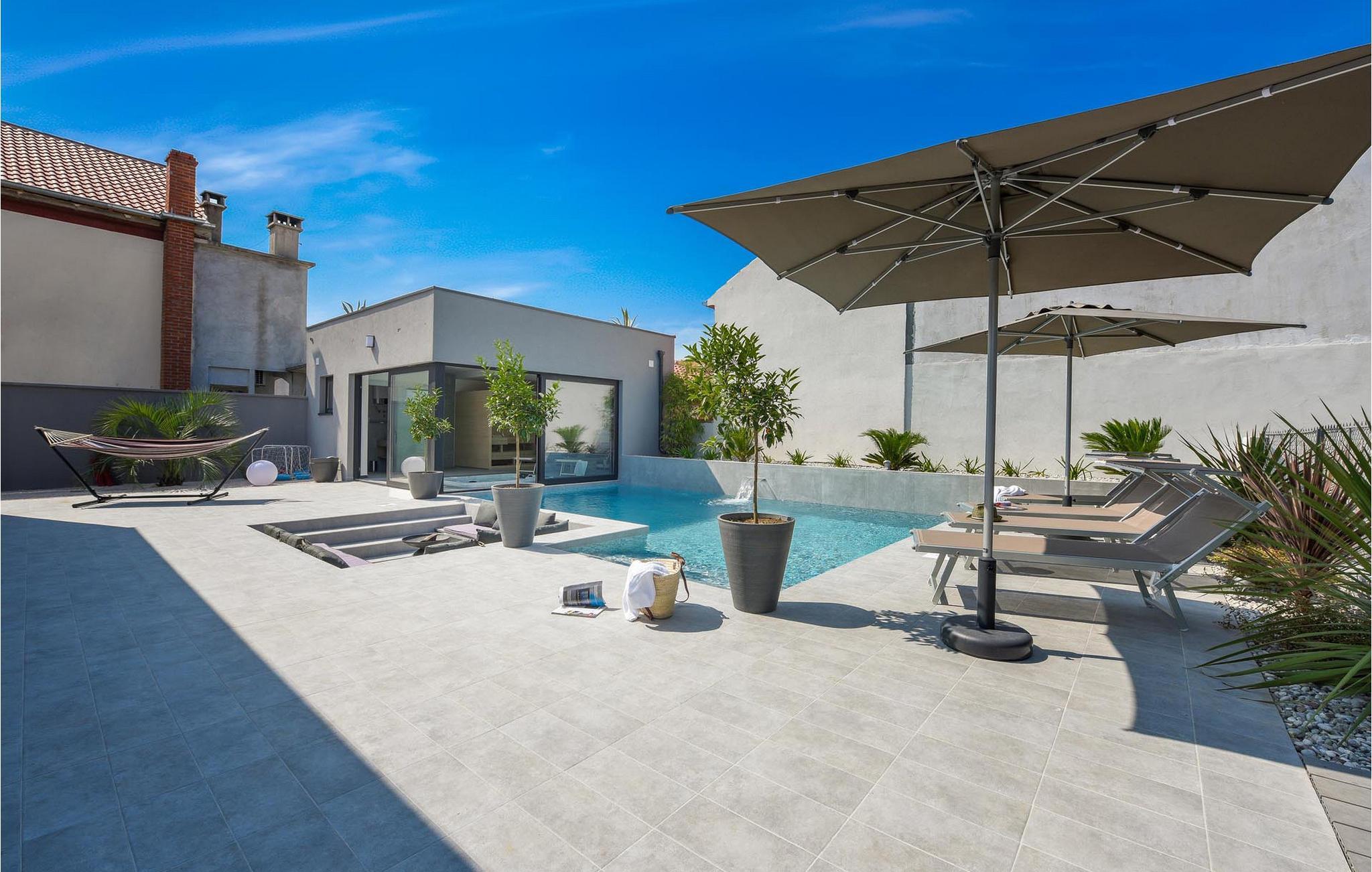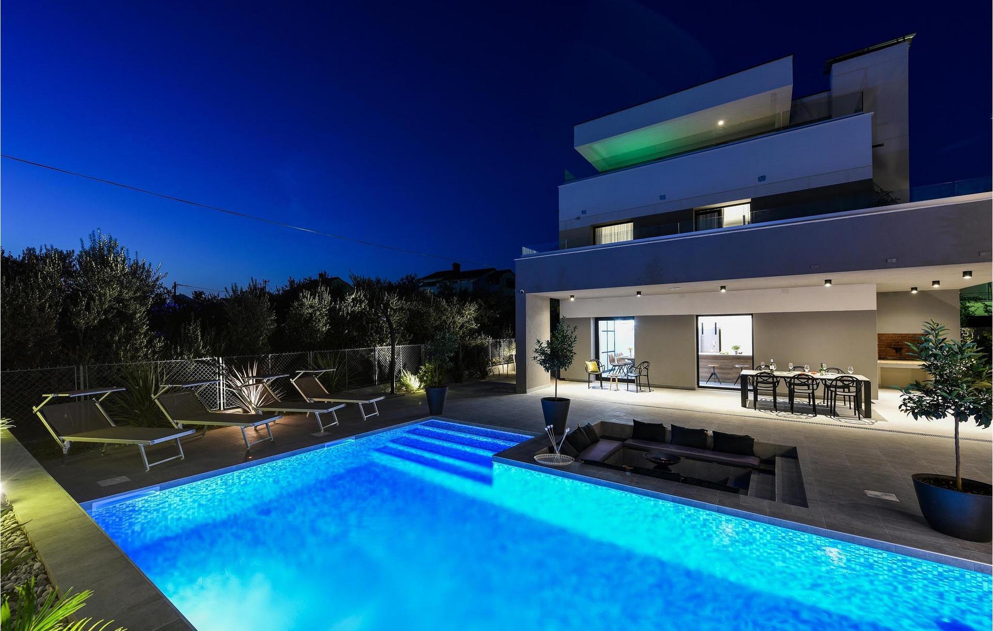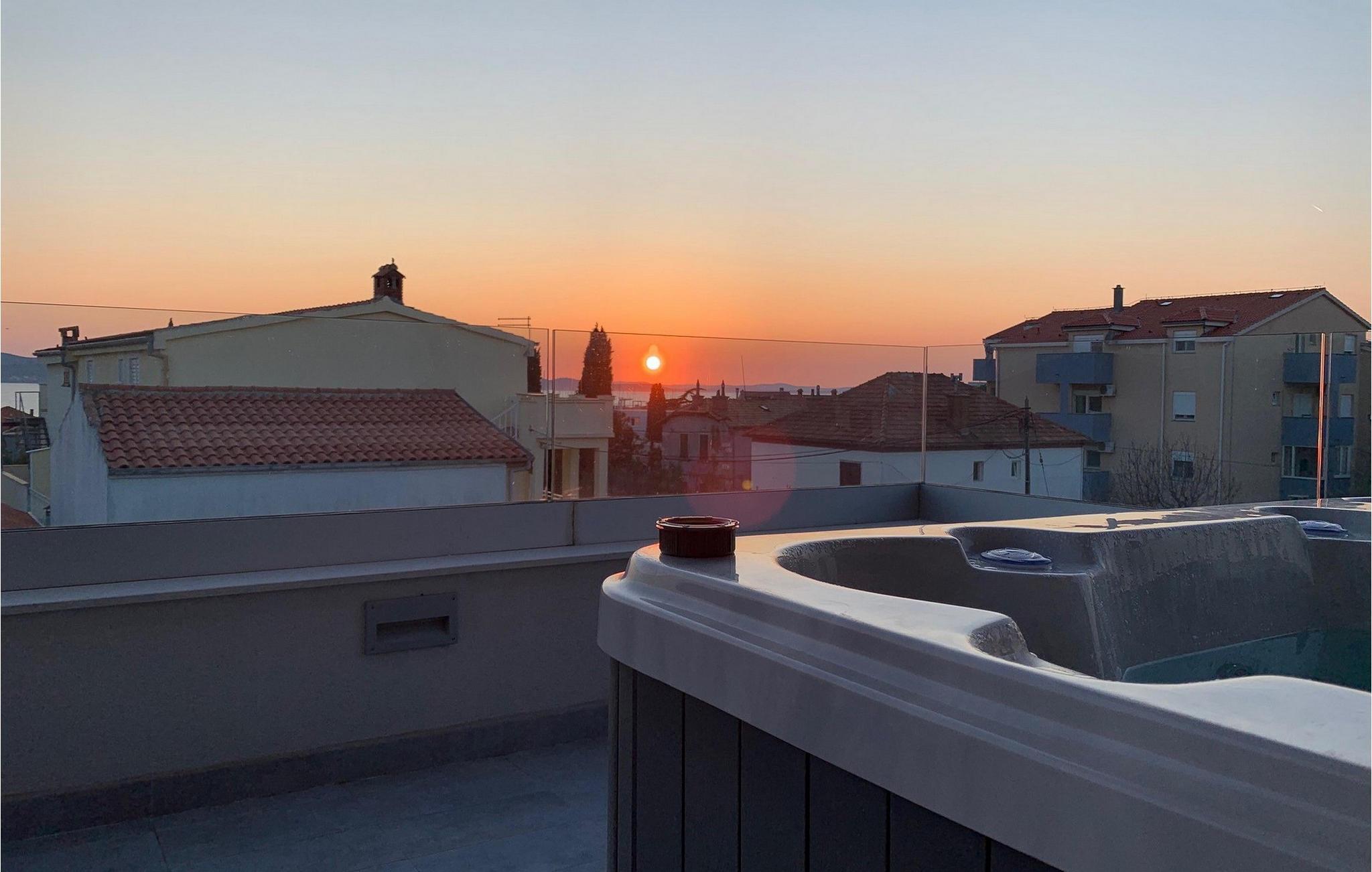 Den eksklusive innkvarteringen Urban Villa Opal i Zadar tilbyr deg det høyeste nivået av komfort og en stilfull atmosfære. De smakfullt innredede oppholdsrommene er gjennomstrømmet av lys og utstyrt med moderne møbler. I første etasje finner du et fullt utstyrt kjøkken som leder inn til en luftig spisestue og en koselig stue. Her kan du samles med familie eller venner, lage mat, spise eller bare slappe av. Soverommene har eget bad, og fra terrassen på hovedsoverommet kan du nyte avslappende stunder i det utendørs boblebadet. En privat spa-avdeling i bassenghuset med badstue, boblebad og treningsutstyr avrunder tilbudet perfekt. Hvis du har lyst på mer variasjon, finnes det mange underholdningsmuligheter som videospill, dart, bordtennis og badminton.