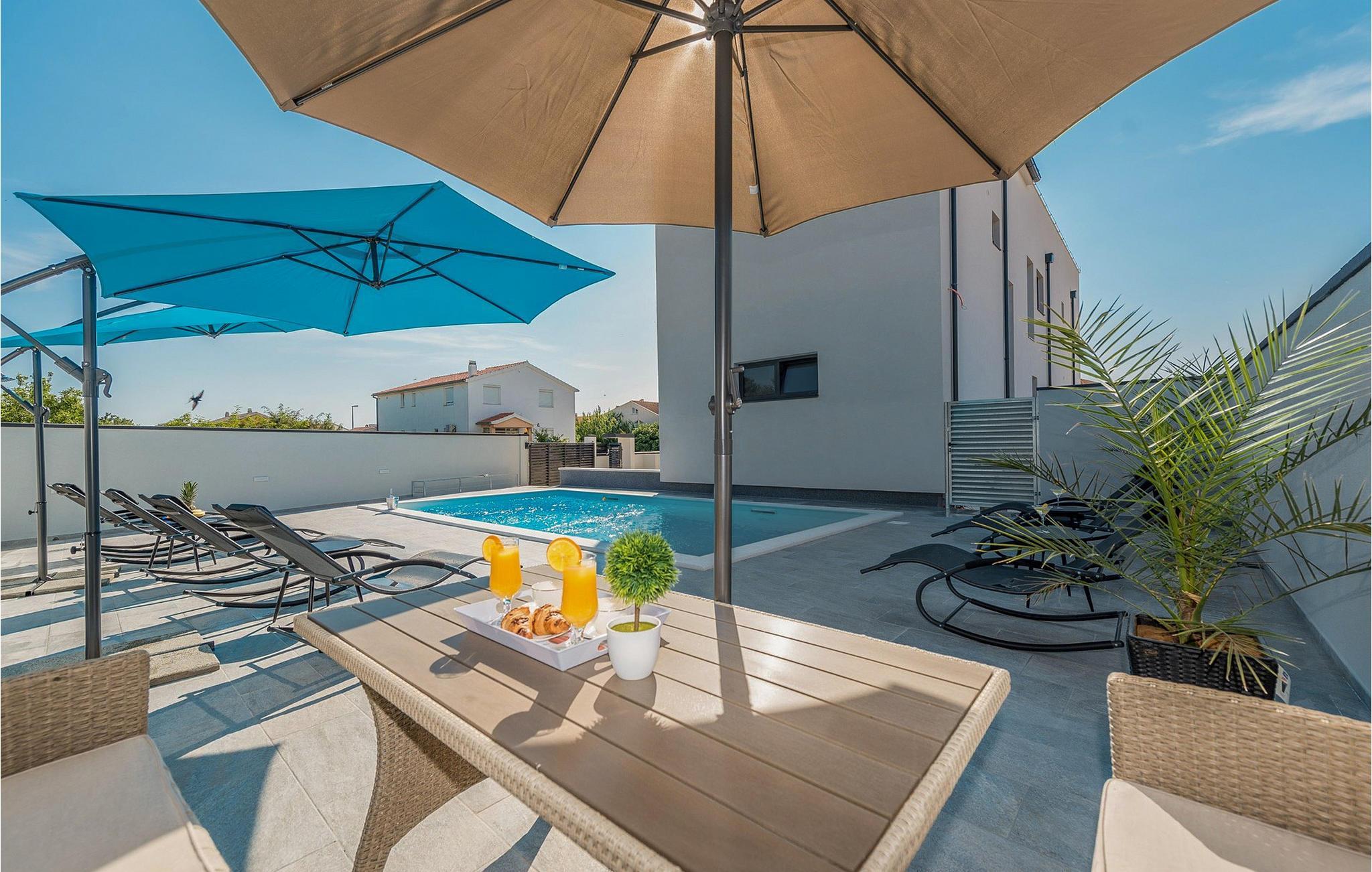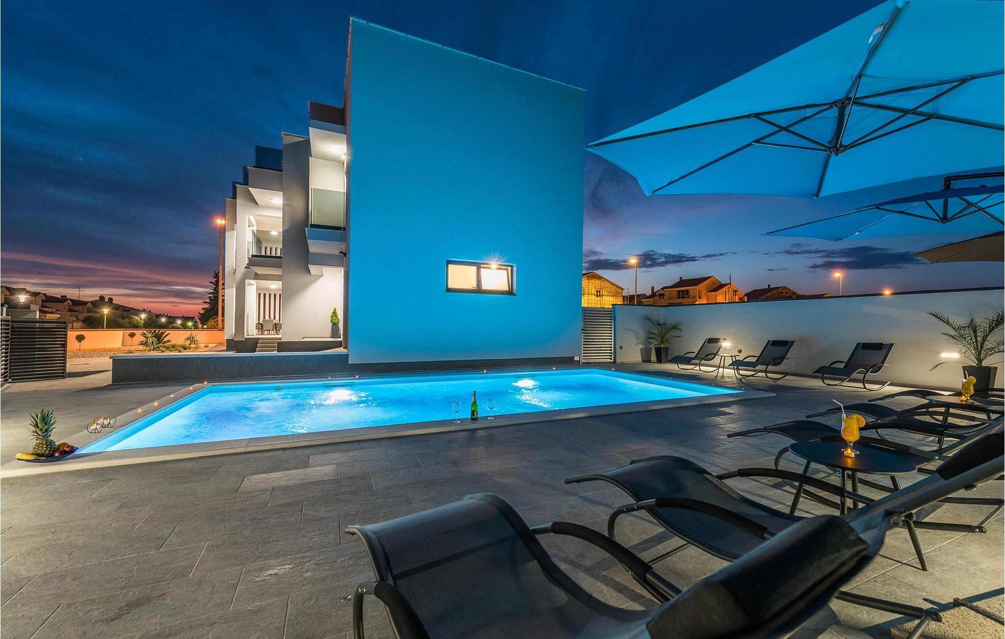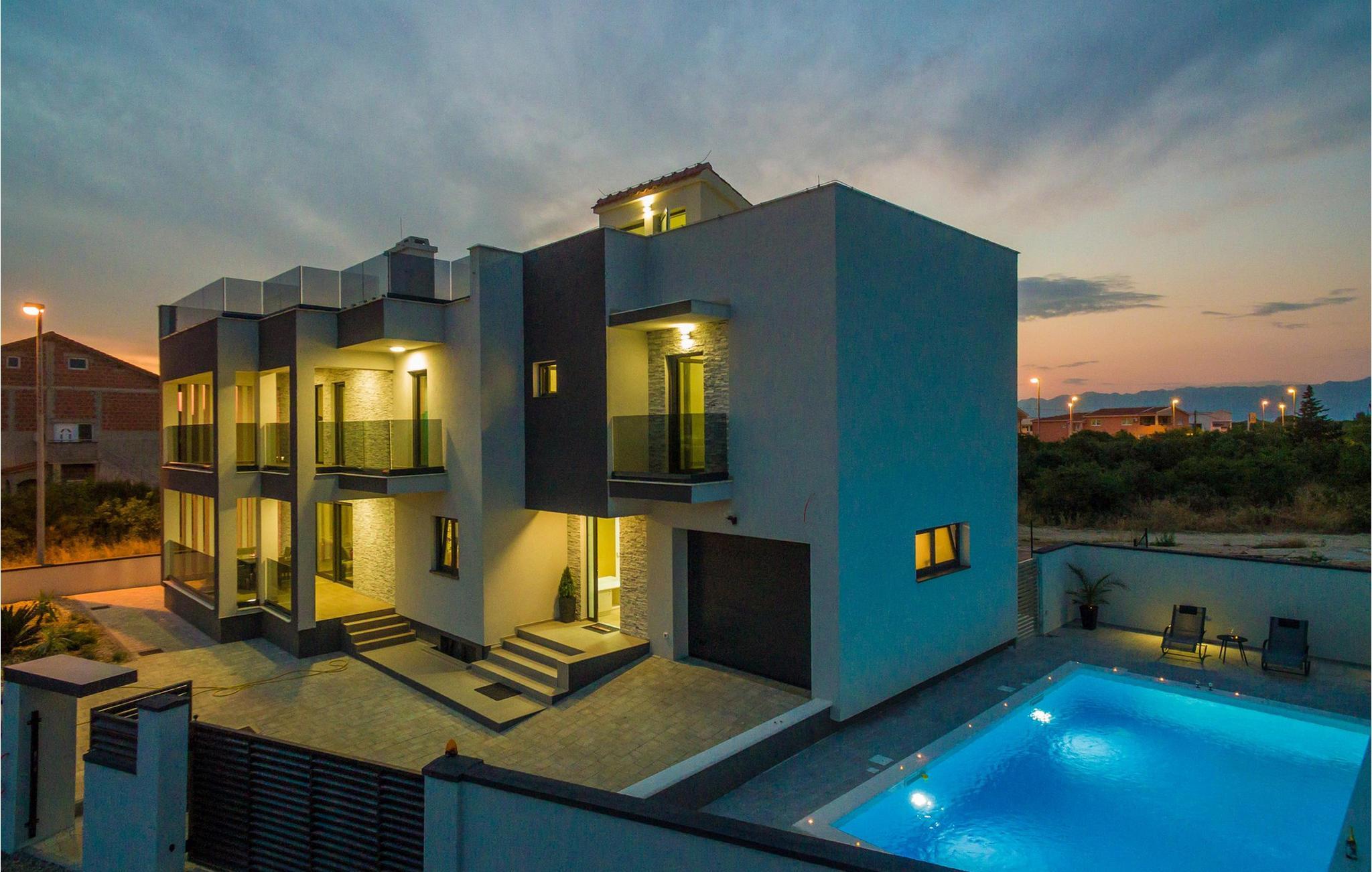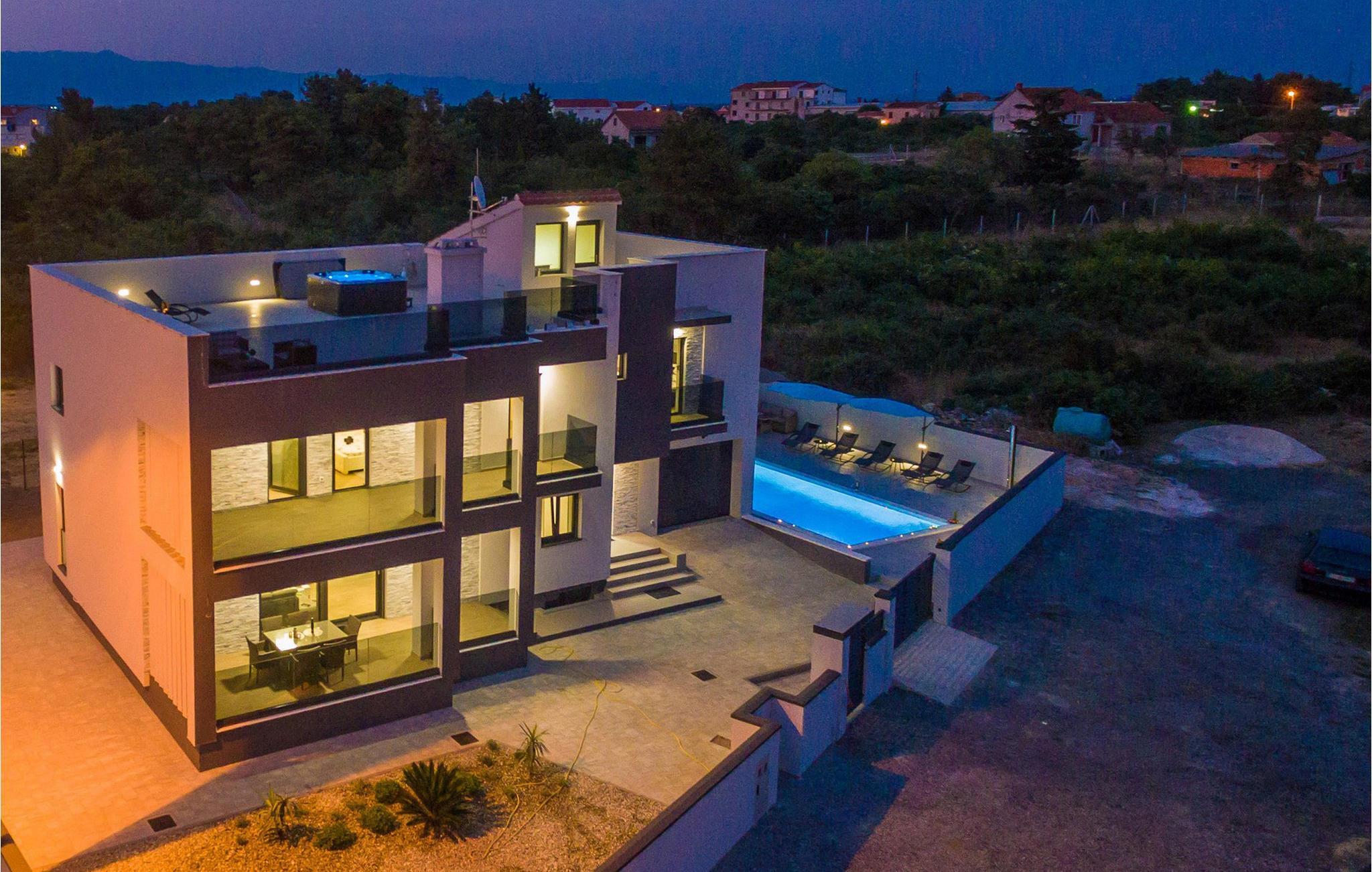 Den stilfulle Villa Nika i Zadar gir deg en fantastisk utsikt over byen og det glitrende havet. Det moderne interiøret med elegant kjøkken, romslig spiseplass og koselig stue skaper en innbydende atmosfære for ditt opphold. Lag deilige måltider på kjøkkenet, og samle deg rundt spisebordet. De lyse rommene gir deg god komfort, mens terrassen med boblebad og bassenget i hagen sørger for avslappende timer under den dalmatiske solen. Her kan du lene deg tilbake, avslutte dagen med et glass vin og nyte de pittoreske solnedgangene.