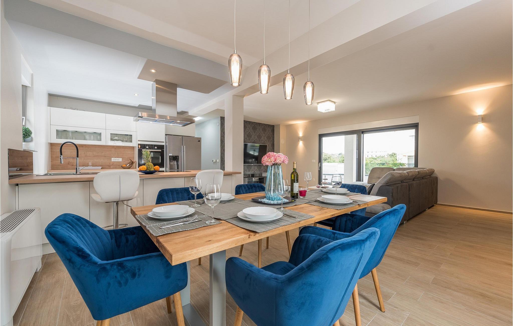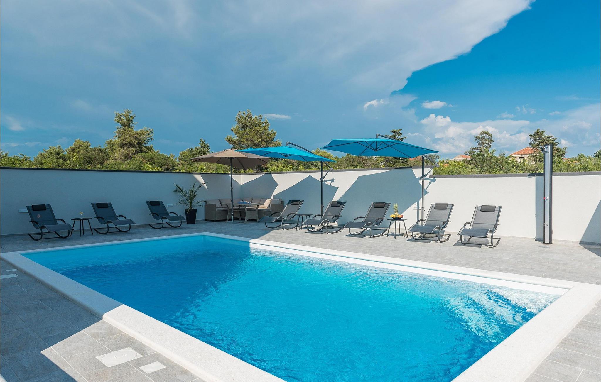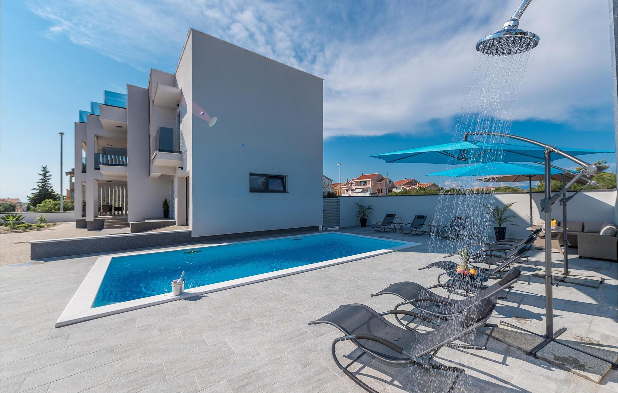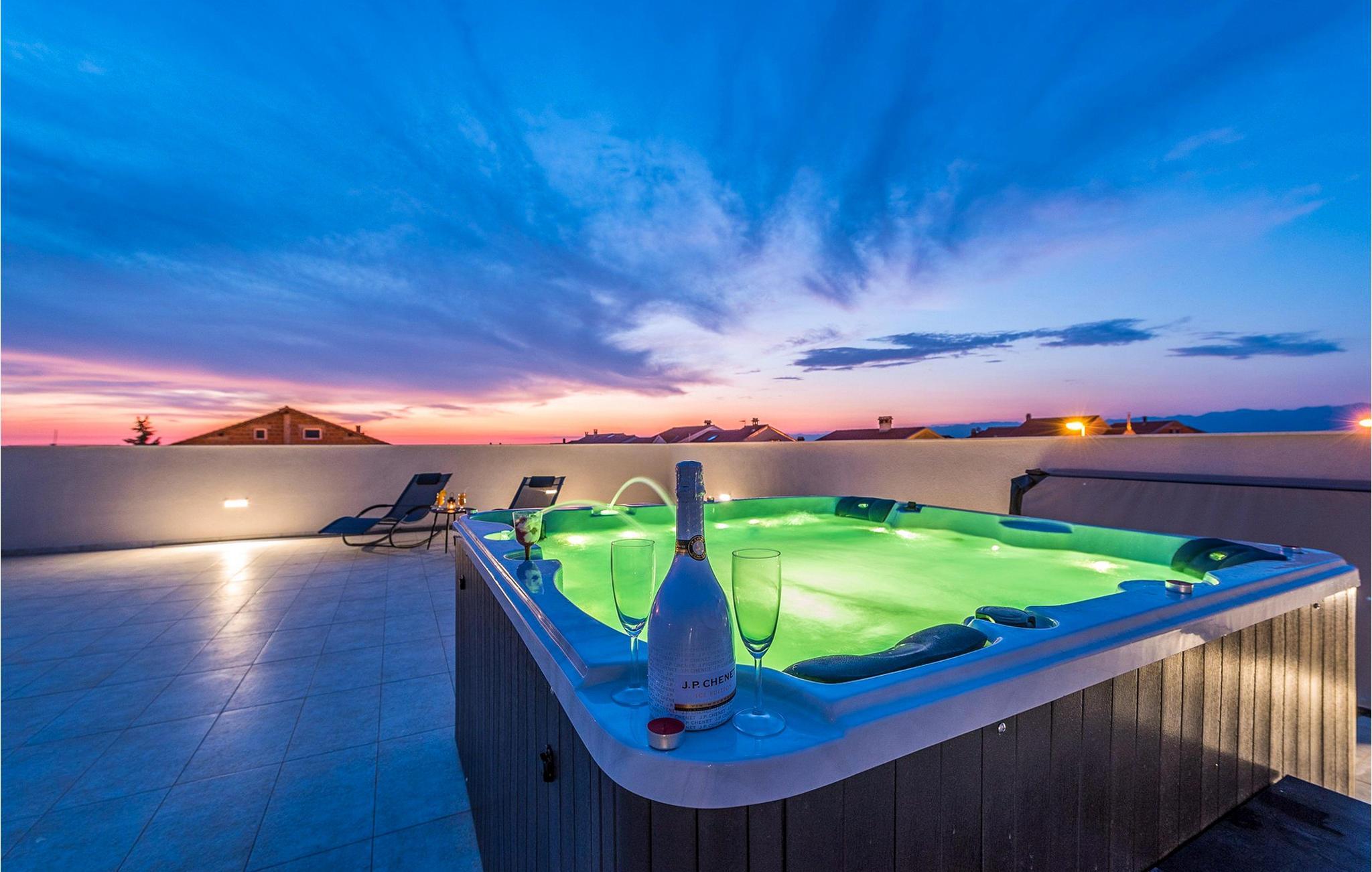 Den stilfulle Villa Nika i Zadar gir deg en fantastisk utsikt over byen og det glitrende havet. Det moderne interiøret med elegant kjøkken, romslig spiseplass og koselig stue skaper en innbydende atmosfære for ditt opphold. Lag deilige måltider på kjøkkenet, og samle deg rundt spisebordet. De lyse rommene gir deg god komfort, mens terrassen med boblebad og bassenget i hagen sørger for avslappende timer under den dalmatiske solen. Her kan du lene deg tilbake, avslutte dagen med et glass vin og nyte de pittoreske solnedgangene.