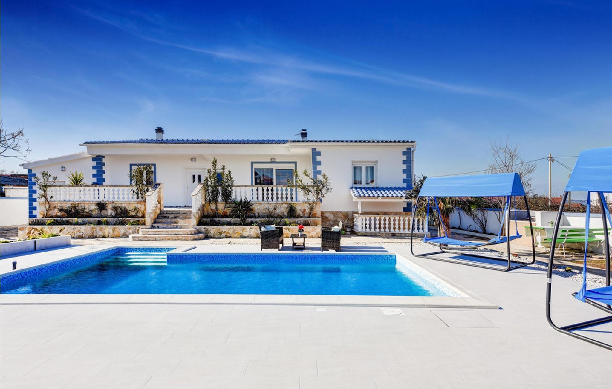 Denne romslige Villa Mateo i Zadar kombinerer moderne komfort med middelhavsstil. To romslige stuer, moderne kjøkken og elegante spiseplasser gir god plass til koselige kvelder med familie og venner. De lyse, smakfullt innredede rommene innbyr til å slappe av mens du nyter solen på balkongene eller runder av dagen med et glass vin. Det store bassenget i hagen sørger for avkjøling på varme dager, og grillplassen sørger for koselige timer i det fri.
