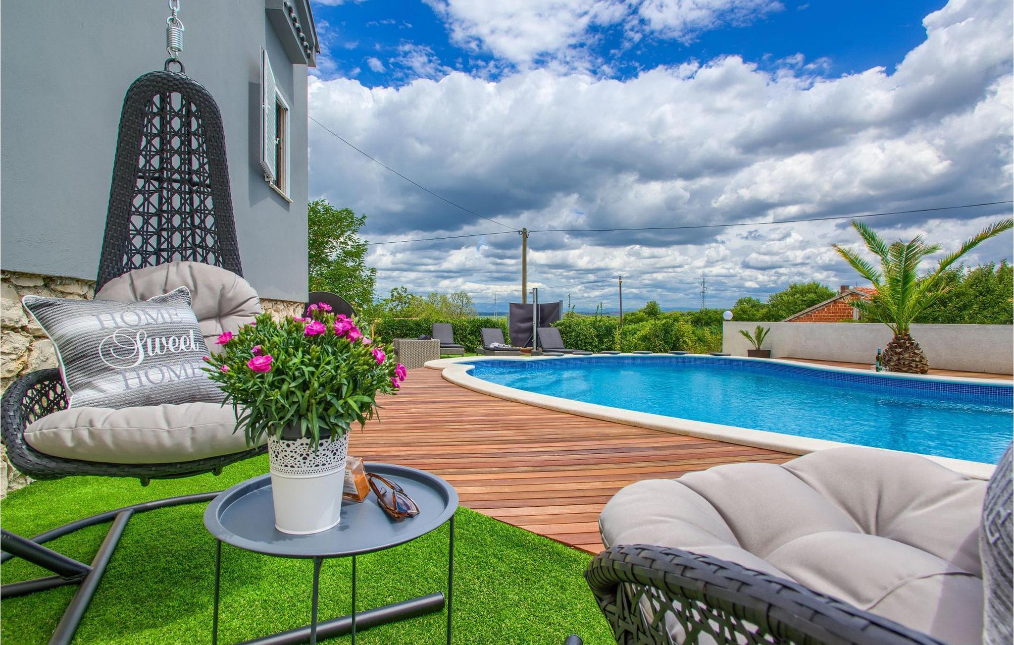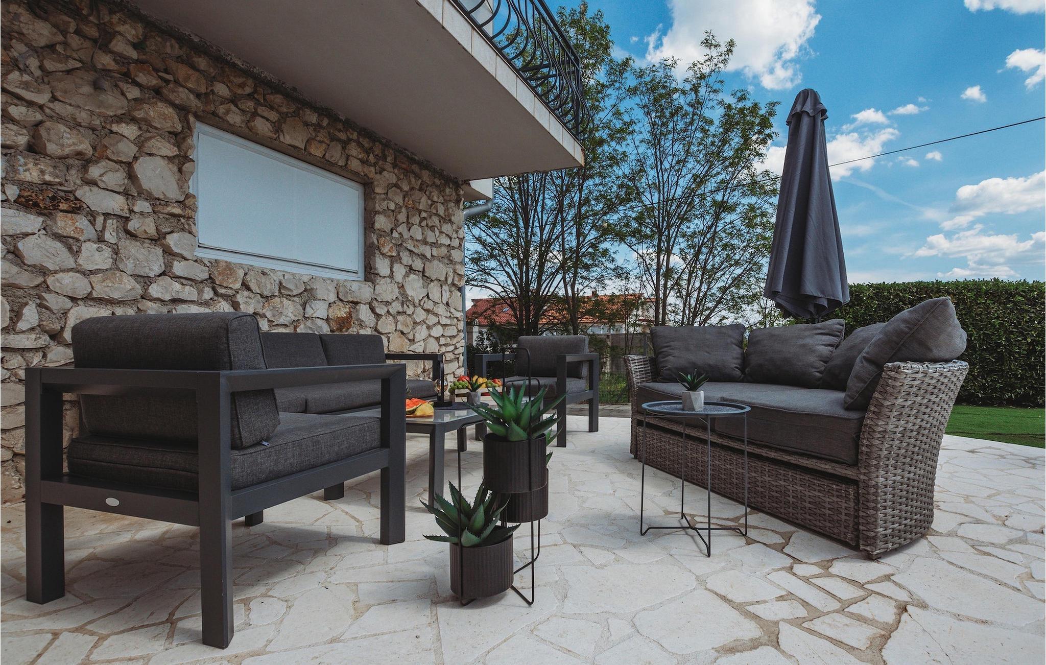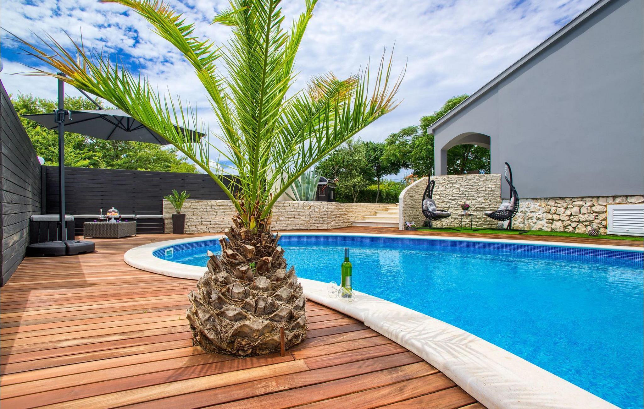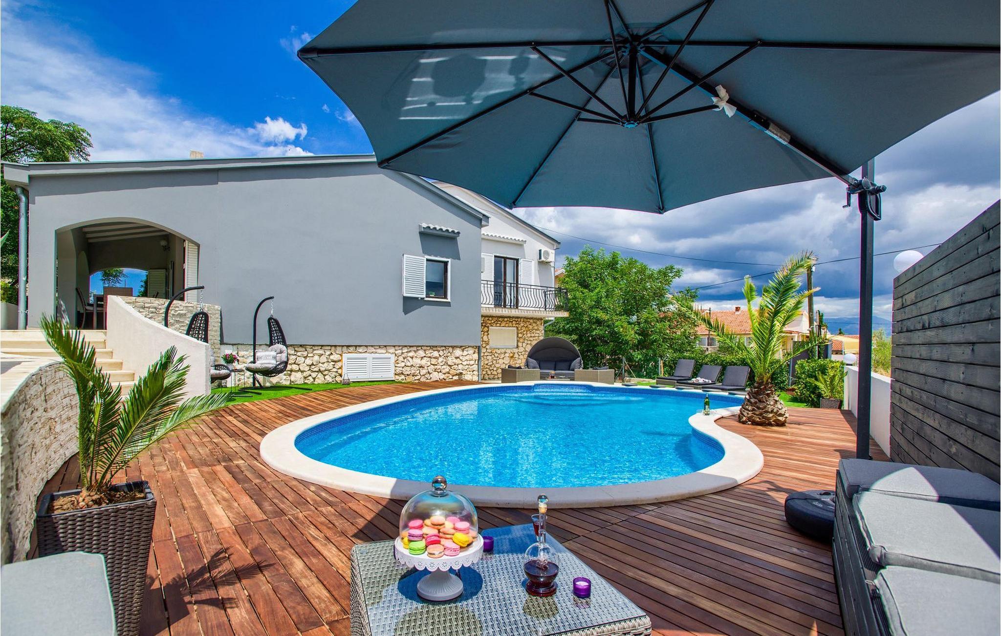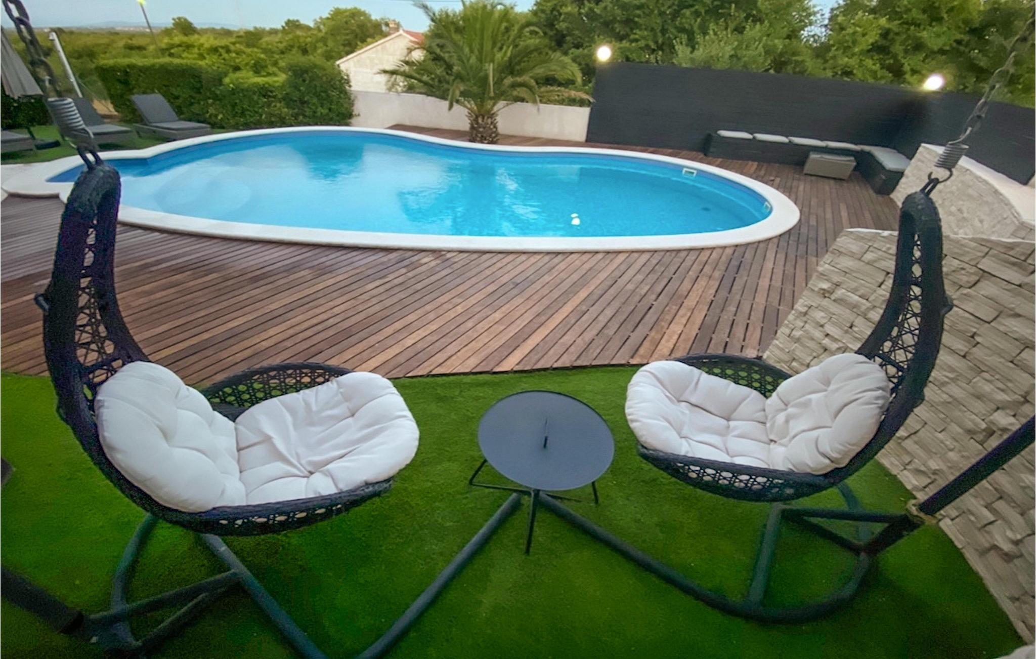 Villa Neo er et fantastisk hus i utkanten av Zadar med en maksimal kapasitet på 9 gjester. På utsiden er det et nydelig basseng med solsenger og et par salonghjørner hvor man kan sole seg, lese en god bok eller bare slappe av. Det er også en flott skyggefull hage med en trampoline slik at barna kan ha det gøy. Terrassen med spisebord og en annen sittegruppe inviterer deg til å grille fersk fisk eller kjøtt, eller rett og slett til å nyte en god frokost før du utforsker byen eller strendene.