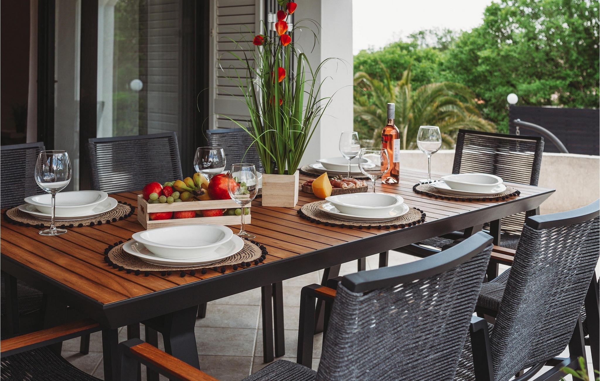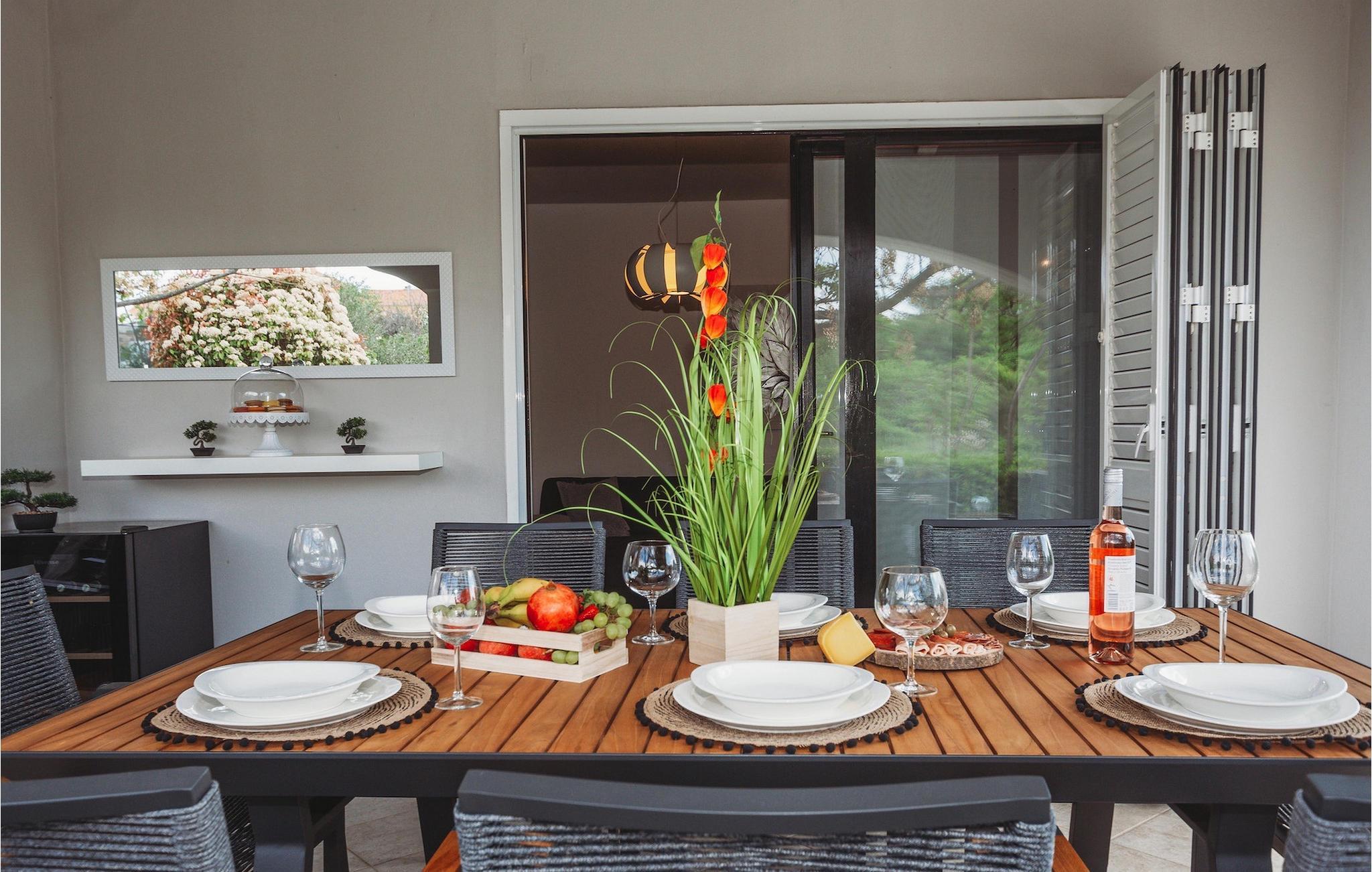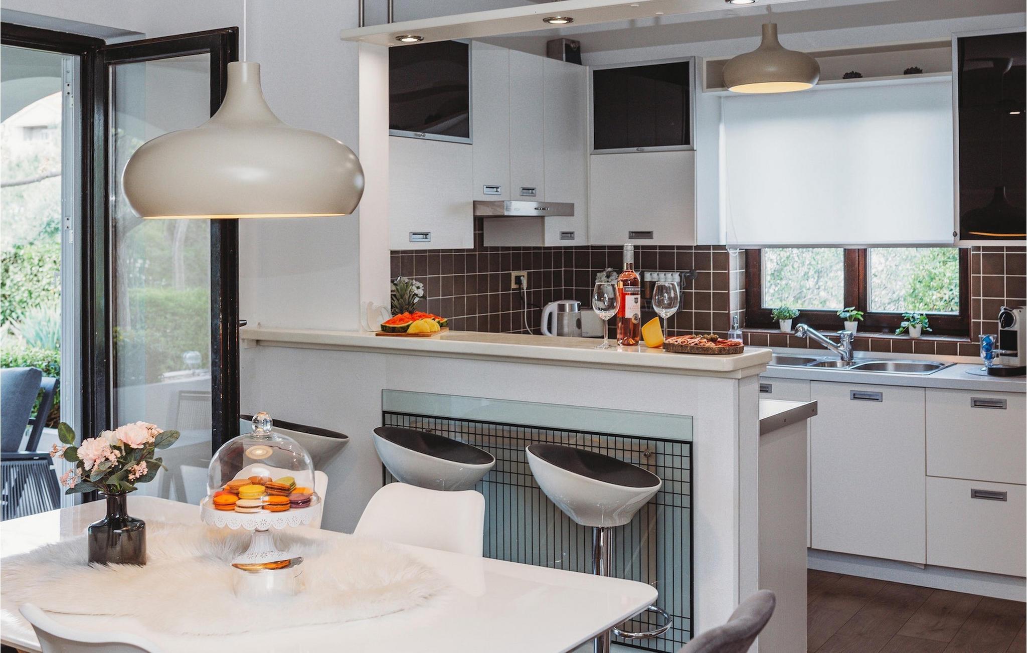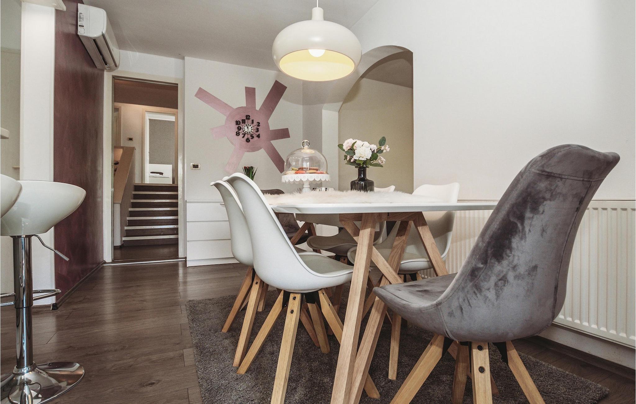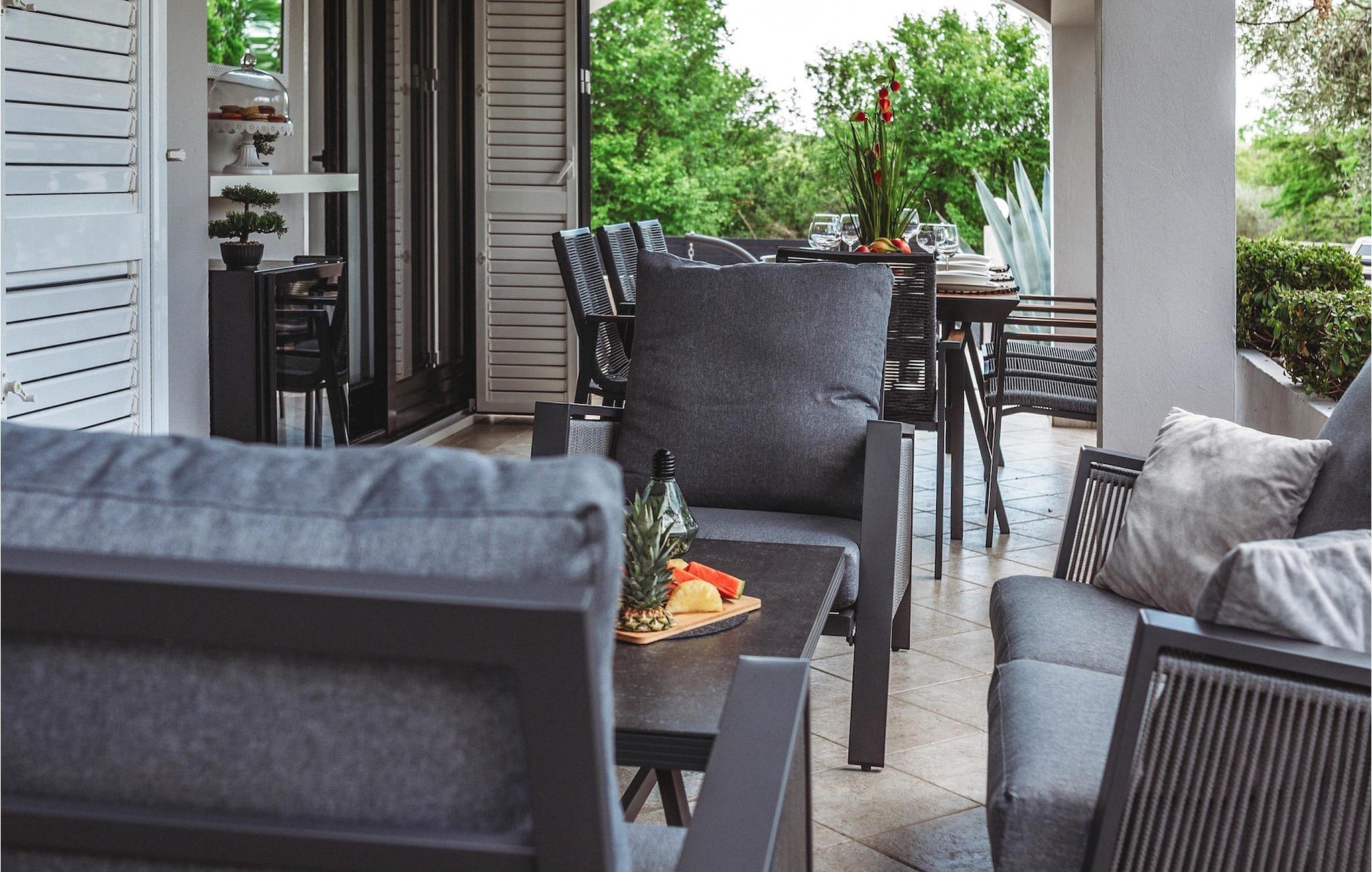 Villa Neo er et fantastisk hus i utkanten av Zadar med en maksimal kapasitet på 9 gjester. På utsiden er det et nydelig basseng med solsenger og et par salonghjørner hvor man kan sole seg, lese en god bok eller bare slappe av. Det er også en flott skyggefull hage med en trampoline slik at barna kan ha det gøy. Terrassen med spisebord og en annen sittegruppe inviterer deg til å grille fersk fisk eller kjøtt, eller rett og slett til å nyte en god frokost før du utforsker byen eller strendene.