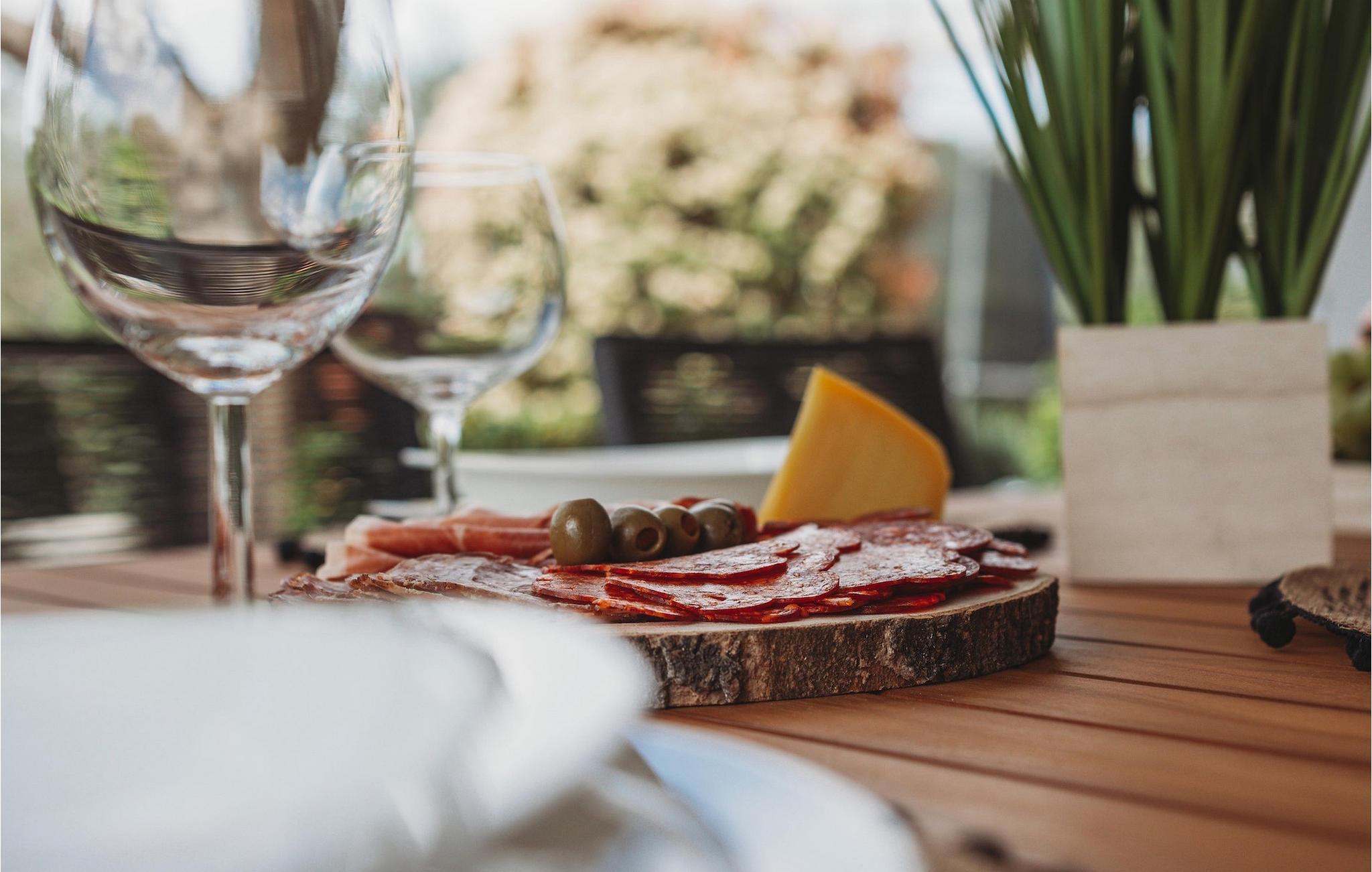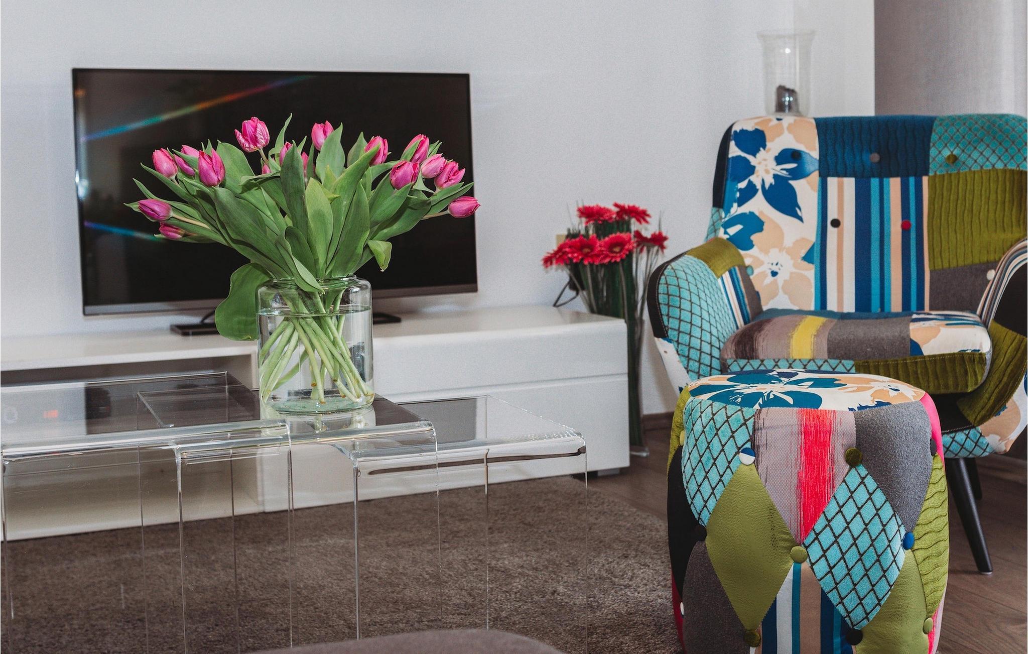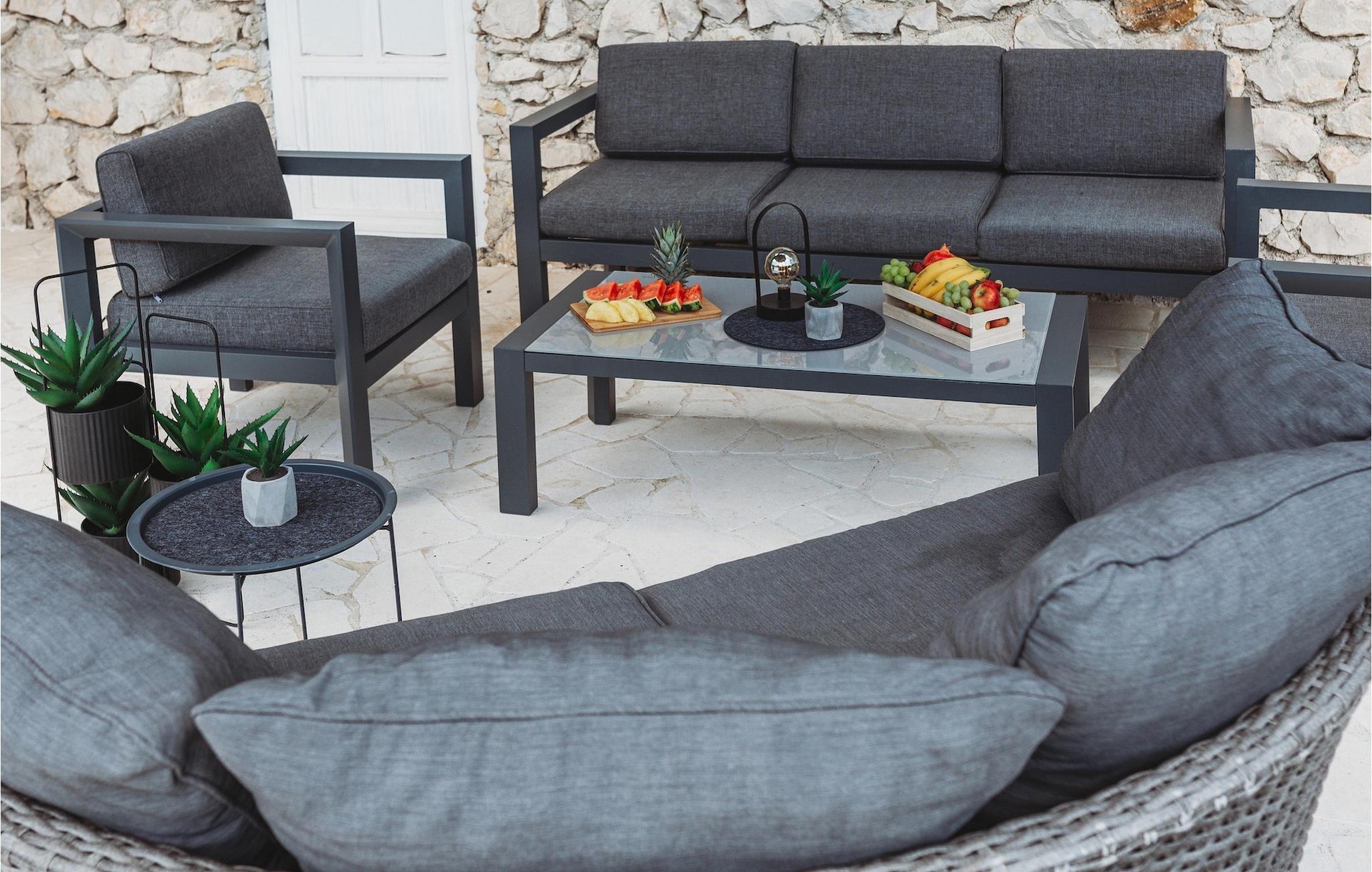 Hvis du går inn i villaen fra denne terrassen, vil du se en moderne stue og et fullt utstyrt kjøkken med spisebord og en liten bar. Alt er kjærlig innredet med moderne detaljer. Villa Neo har 3 soverom, alle med dobbeltseng, ett av dem har en ekstra enkeltseng og TV, et annet har tilgang til balkongen og TV. Alle rommene har klimaanlegg.