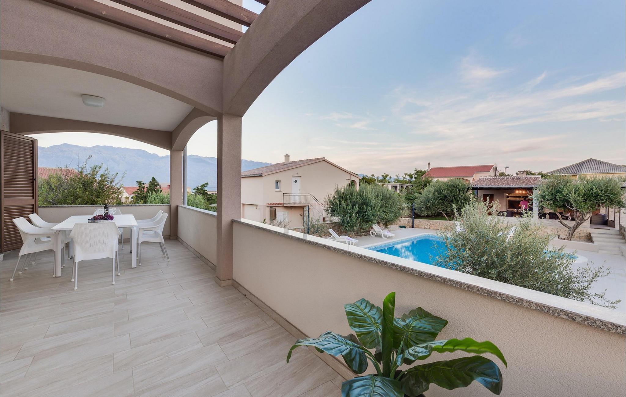 Til din disposisjon er et stort privat basseng med en grunn del for barn og en stor overbygd terrasse med grill. Villaen har plass til 10 + 1 gjester.