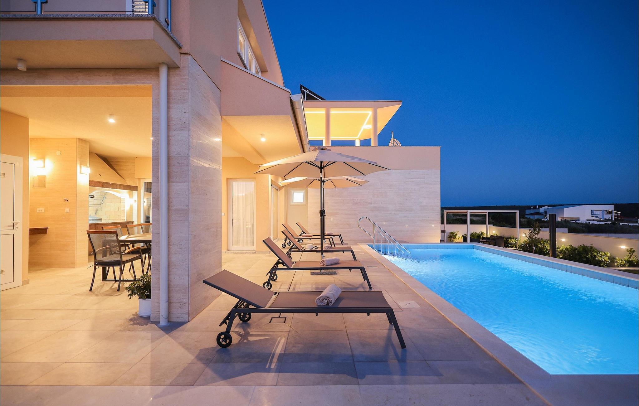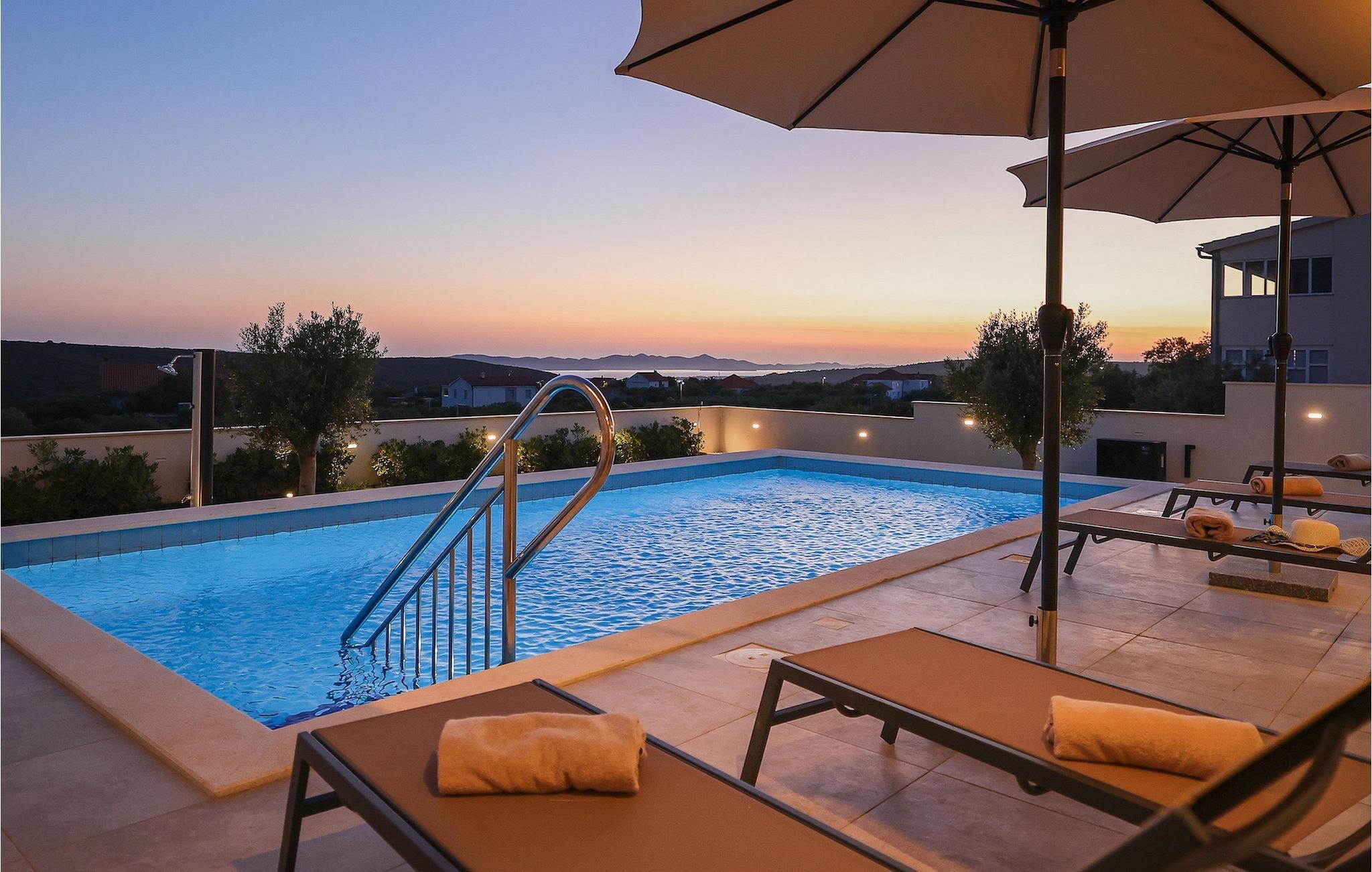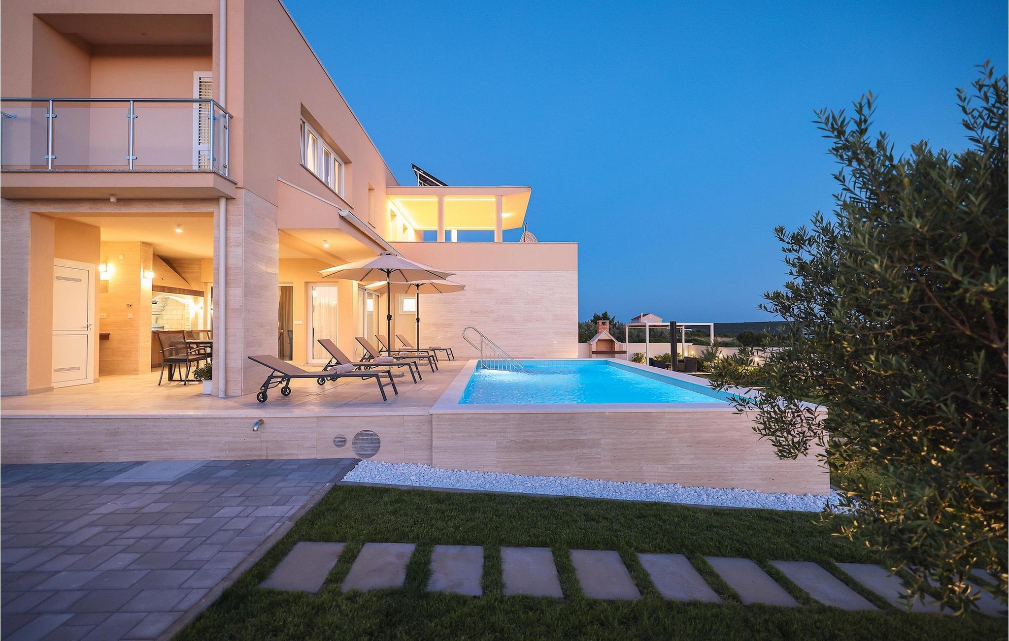 Den moderne Villa Vinka er perfekt for en ferie med familie og venner som ønsker å tilbringe mye tid sammen i vakre Dalmatia. Med havet i nærheten kan du finne roen og avslapningen du lengter etter. Det 32 m2 store bassenget vil holde deg oppfrisket på varme sommerdager mens du nyter solstrålene på en av de komfortable solsengene og nyter den vakre utsikten over det omkringliggende landskapet. Samle dine nærmeste rundt grillplassen med kullgrill og den koselige hagestuen og tilbered deilige lokale spesialiteter. Her kan du tilbringe mange koselige sommerkvelder og beundre stjernehimmelen om kvelden. Feriehuset er lyst og stilfullt innredet og har aircondition. Du vil føle deg som hjemme i stuen med spisebord og fullt utstyrt kjøkken. 4 komfortable soverom - 3 med dobbeltsenger og ett med en enkeltseng - sørger for avslappende netter. Det er også 3 stilige bad. Bestill Villa Vinka og tilbring en drømmeferie med dine kjære i solfylte Dalmatia. vakre Villa Vinka ligger i den lille landsbyen Debeljak, ikke så langt fra den berømte kystbyen Zadar. Havet og den nærmeste stranden ligger bare 4 kilometer unna i Sukosan. Oppdag de mange strendene og buktene i regionen, eller benytt anledningen til å ta en båttur til øyene Dugi Otok eller Ugljan. Gå ikke glipp av Zadar med sin historiske gamleby, den berømte handlegaten Kalelarga og havorglene. Mange kulturelle arrangementer vil forsøde oppholdet ditt i denne vakre byen og gi deg uforglemmelige øyeblikk.