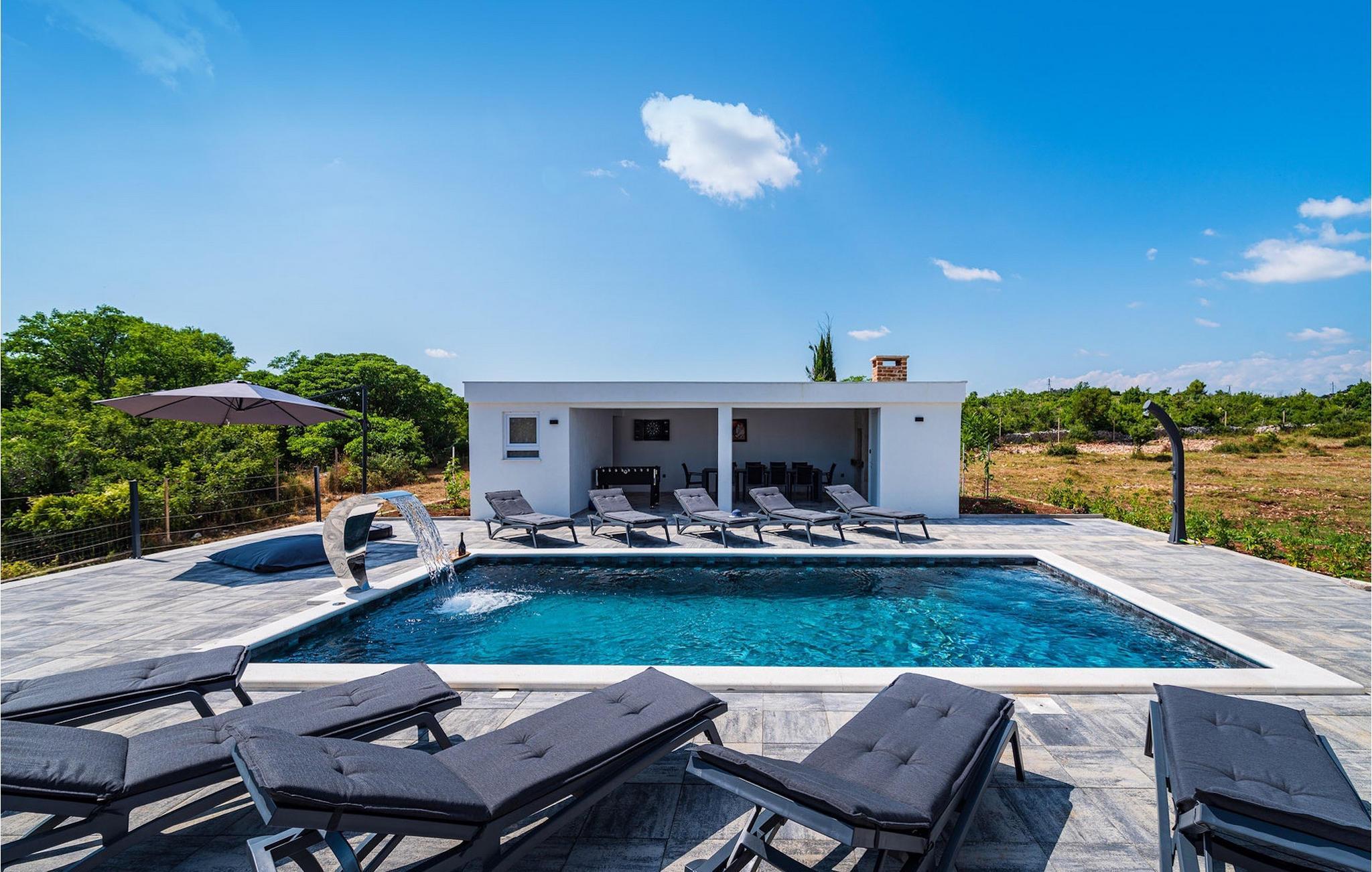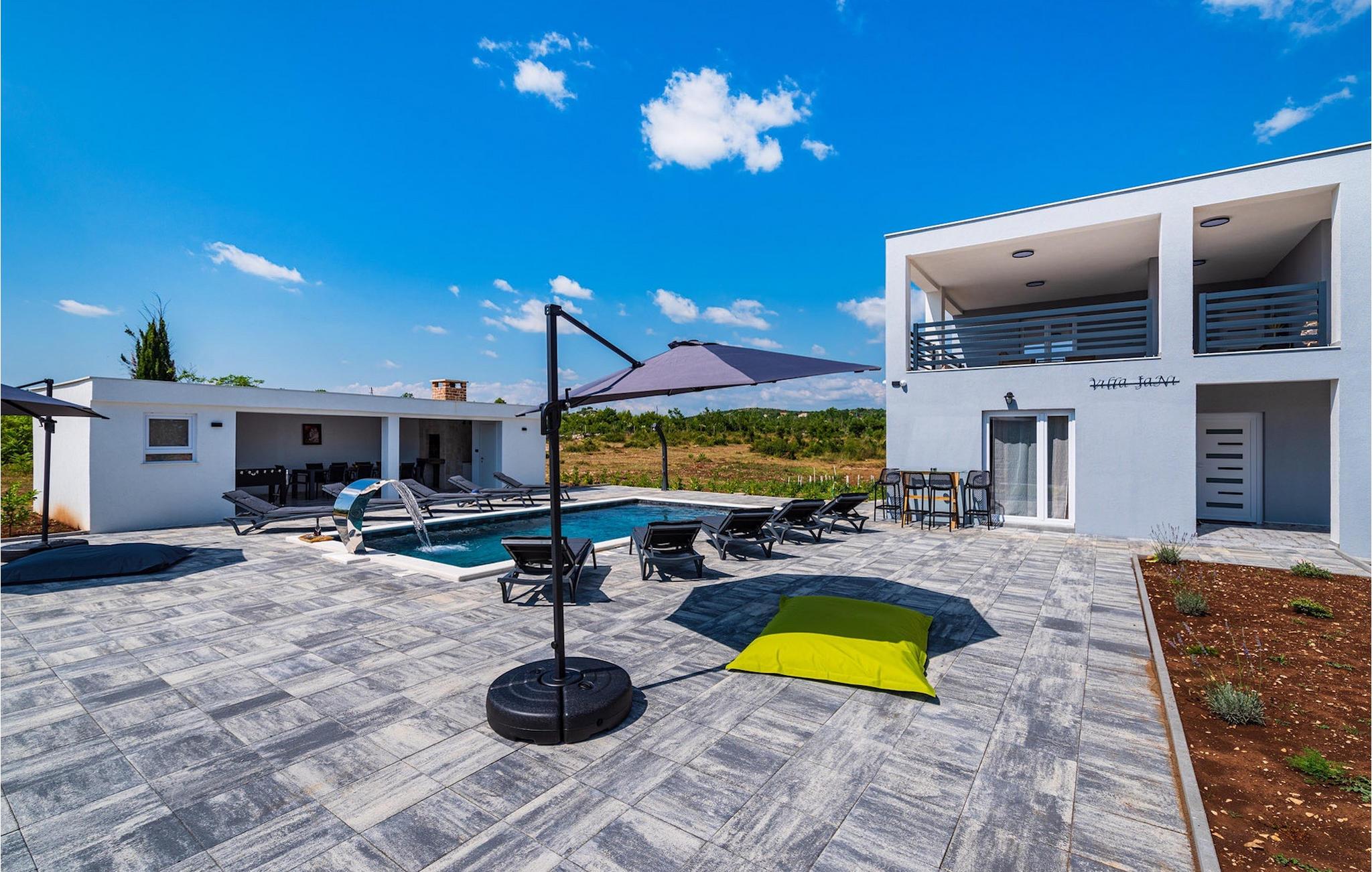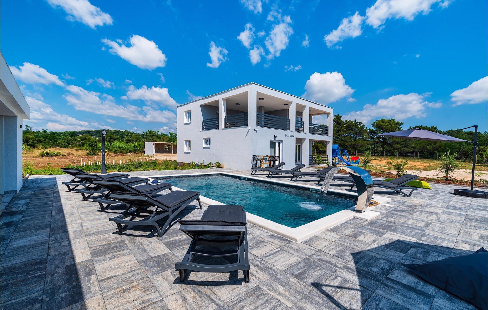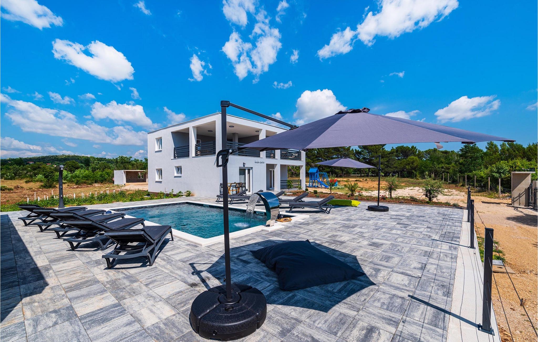 Den vakre Villa JaNi i Gornja Jagodnja er det ideelle valget for en perfekt ferie med familie og venner. Villaen er helt inngjerdet og tilbyr deg en fredelig ferie. Ta en forfriskning i det vakre bassenget på 32 m2, slapp av på solsengene ved bassenget og nyt den dalmatiske solen. Denne villaen tilbyr mange fasiliteter for hele familien. Ha det gøy med bordtennis og dart. Test styrken din på volleyballbanen. De yngste gjestene vil elske lekeplassen med sklie, husker og klatrestativ. Nyt tradisjonelle dalmatiske retter tilberedt på grillen i det overbygde området foran villaen. Villaens interiør er en ekte oase av fred og avslapning etter utendørsaktiviteter. Slapp av i badstuen i første etasje av villaen. I første etasje finner du også et åpent rom med et fullt utstyrt kjøkken med spisestue og en koselig stue for ettermiddagsmøter med dine kjære. Det er også to moderne designerbad og et separat toalett i første etasje. Villaen har 5 soverom. Soverommene gir den ønskede roen og avslapningen. Alle soverommene har klimaanlegg og TV. To soverom med dobbeltsenger ligger i villaens første etasje, mens de resterende tre soverommene med dobbeltsenger ligger i villaens andre etasje. Det er også to andre bad i første etasje. Tilbring morgenen med å våkne opp med en kaffe på terrassen i villaens første etasje. Ikke gå glipp av din drømmeferie med familien i Villa JaNi i Dalmatia Villa JaNi ligger i landsbyen Gornja Jagodnja, i nærheten av byene Benkovac og Biograd na moru. Landsbyen Gornja Jagodnja er en autentisk, pittoresk landsby på Ravnokotar-sletten, kjent for sin velutviklede bygdeturisme. Du vil bli fascinert av det gastronomiske tilbudet fra lokale husholdninger på landsbygda. Sentrum av denne fruktbare sletten ved den dalmatiske kysten er Benkovac. Historieelskere vil bli begeistret over Benkovac med sine kulturhistoriske severdigheter og arkeologiske funnsteder med gjenstander fra den neolittiske perioden. Nyt de tradisjonelle etniske festivalene eller Benkovac-markedet, og se etter håndlagde, autentiske produkter fra denne regionen i Dalmatia for å tilberede tradisjonelle retter på Villa JaNi. Gå ikke glipp av et besøk til Metrovi-familiens mausoleum, det lokale Benkovac-museet og byens bibliotek. Deretter kan du velge Biograd na moru som reisemål. Dette er en velkjent og populær sommerferieby med vakre sandstrender fulle av interessante aktiviteter. I denne dynamiske byen med to marinaer kan du seile, delta på festivaler, besøke en fornøyelsespark og nyte mange andre fasiliteter. Besøk turistsenteret Pakotana. I Pakotane kan du besøke kirkene St Justin, St Michael og St Termin. Besøk Vrana Lake Nature Park, den største naturlige innsjøen i Kroatia. Gå ikke glipp av å besøke mange øyer som Paman, Galesnjak og NP Kornati. På slutten av det dalmatiske eventyret er det uunngåelige reisemålet Zadar, Kroatias kulturelle og historiske vugge, kjent for kirken St Donata, St Stoija og St Maria, sjøorgelet og hilsenen til solen.