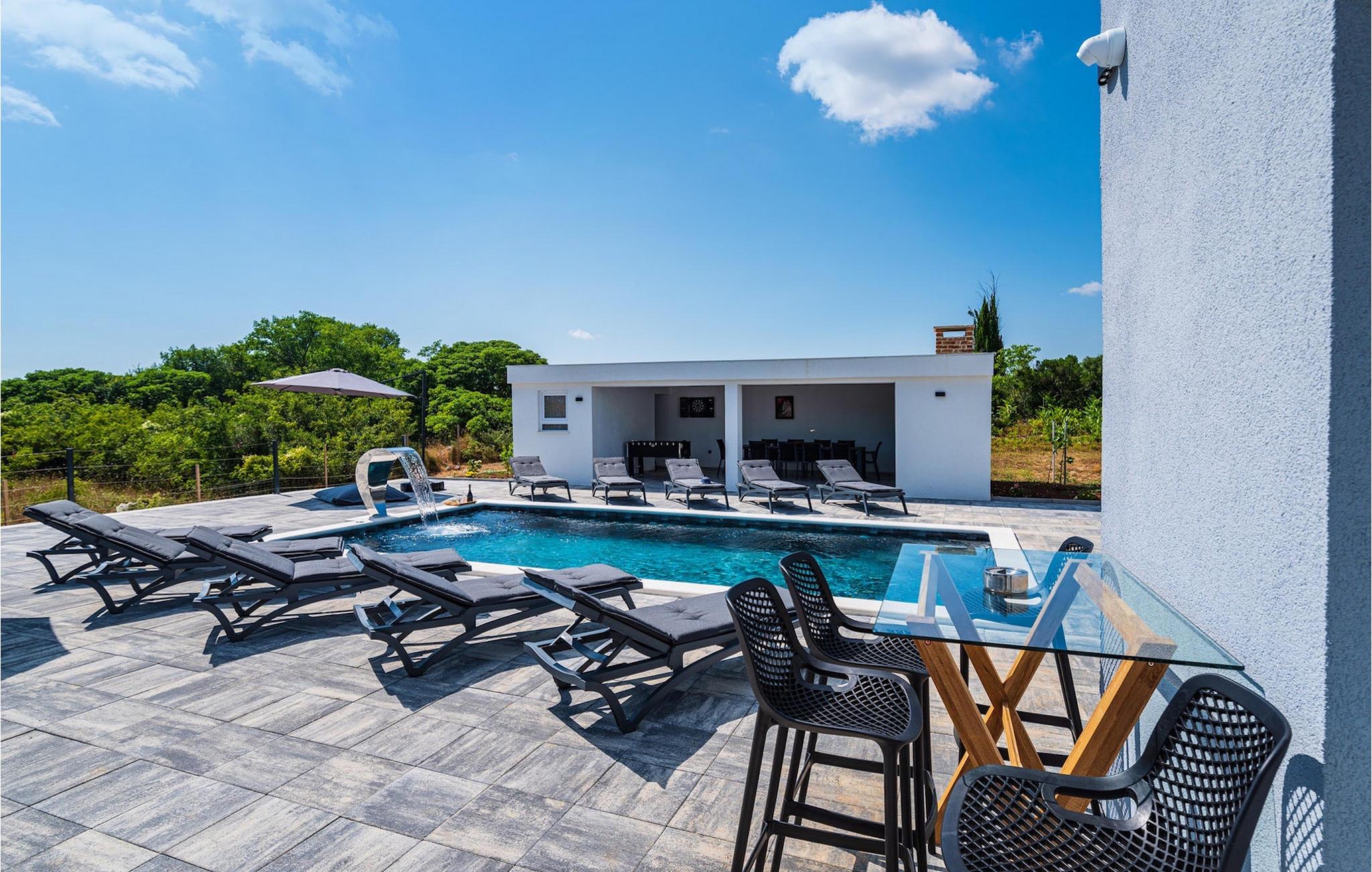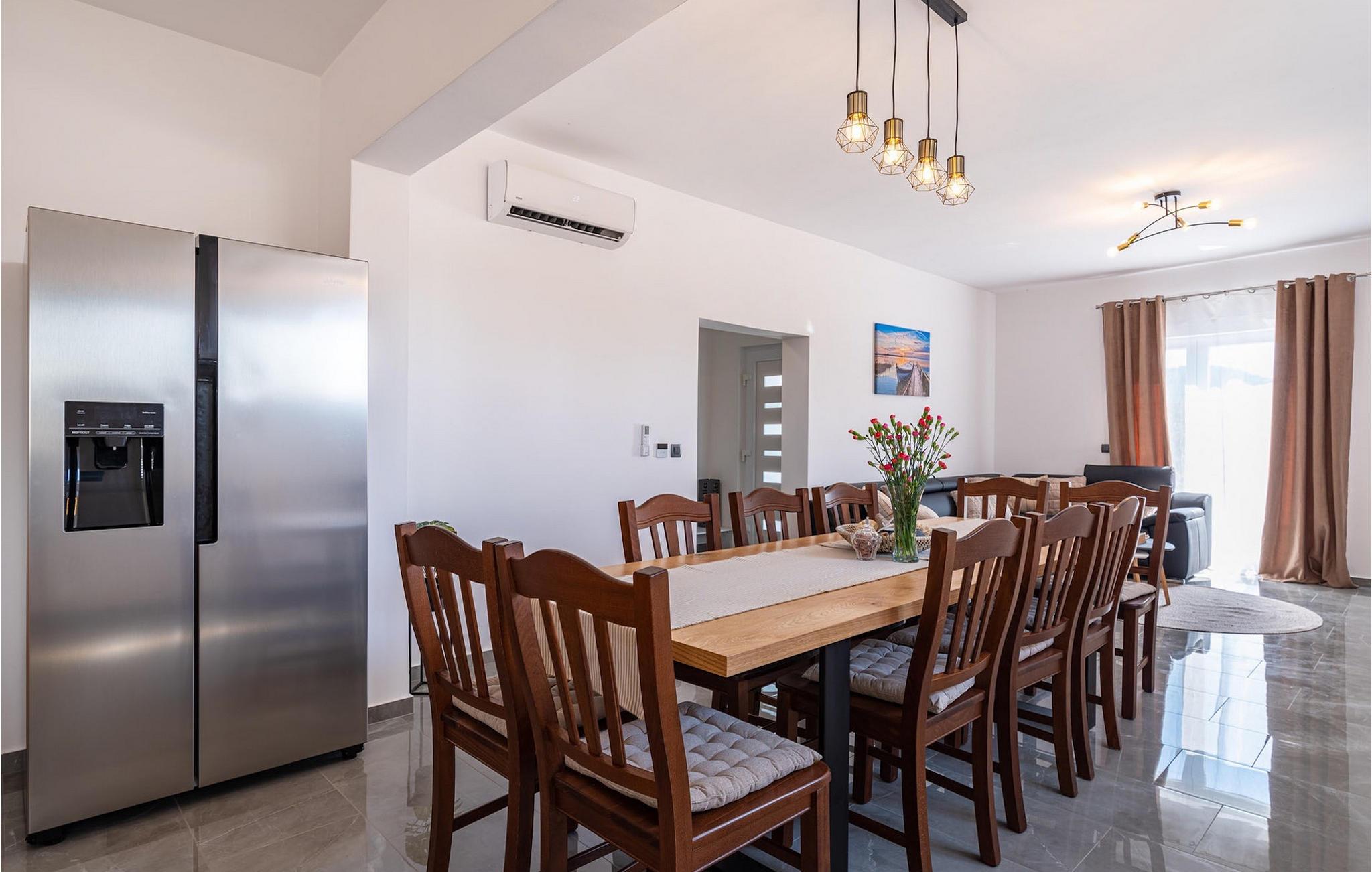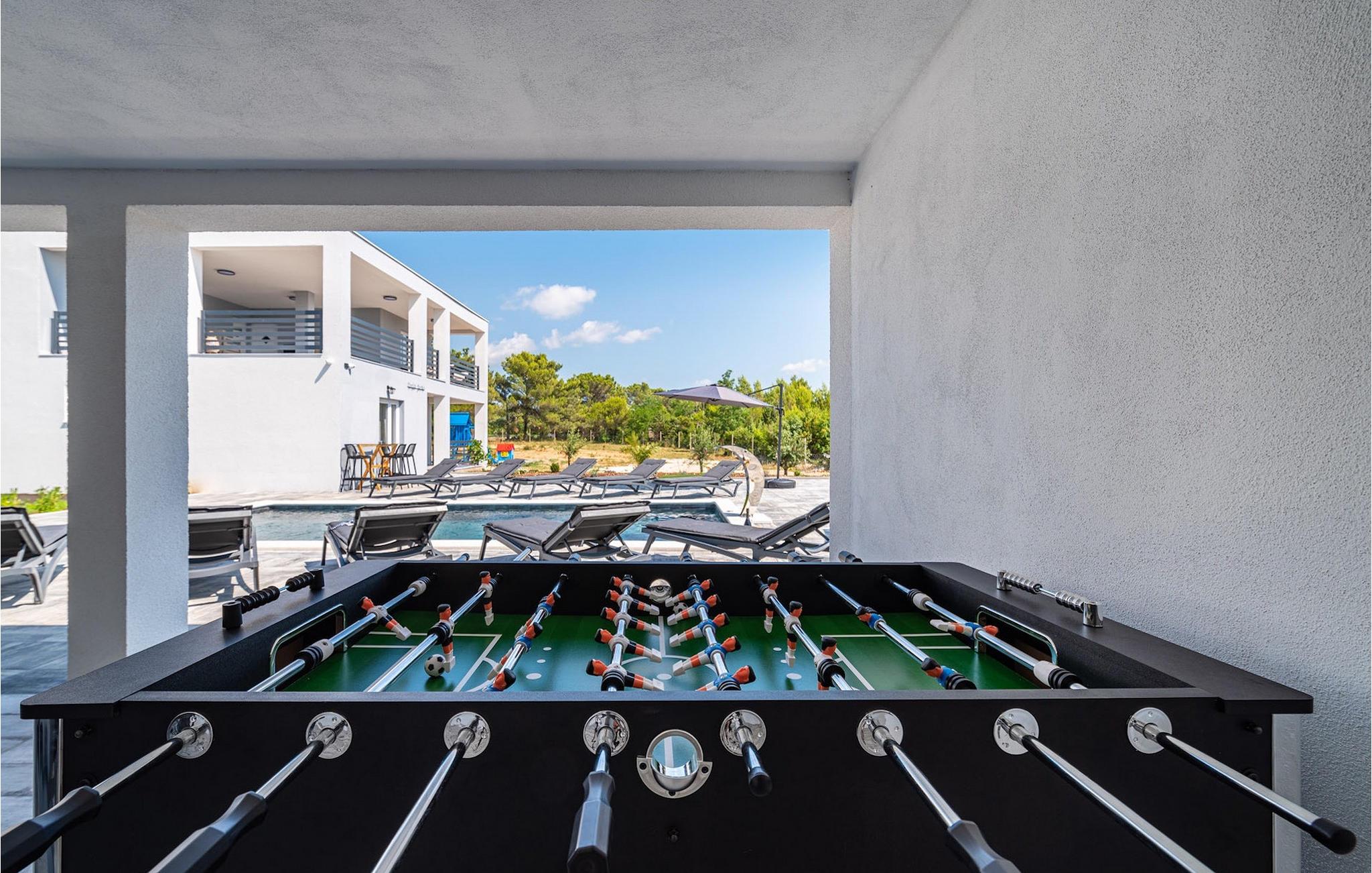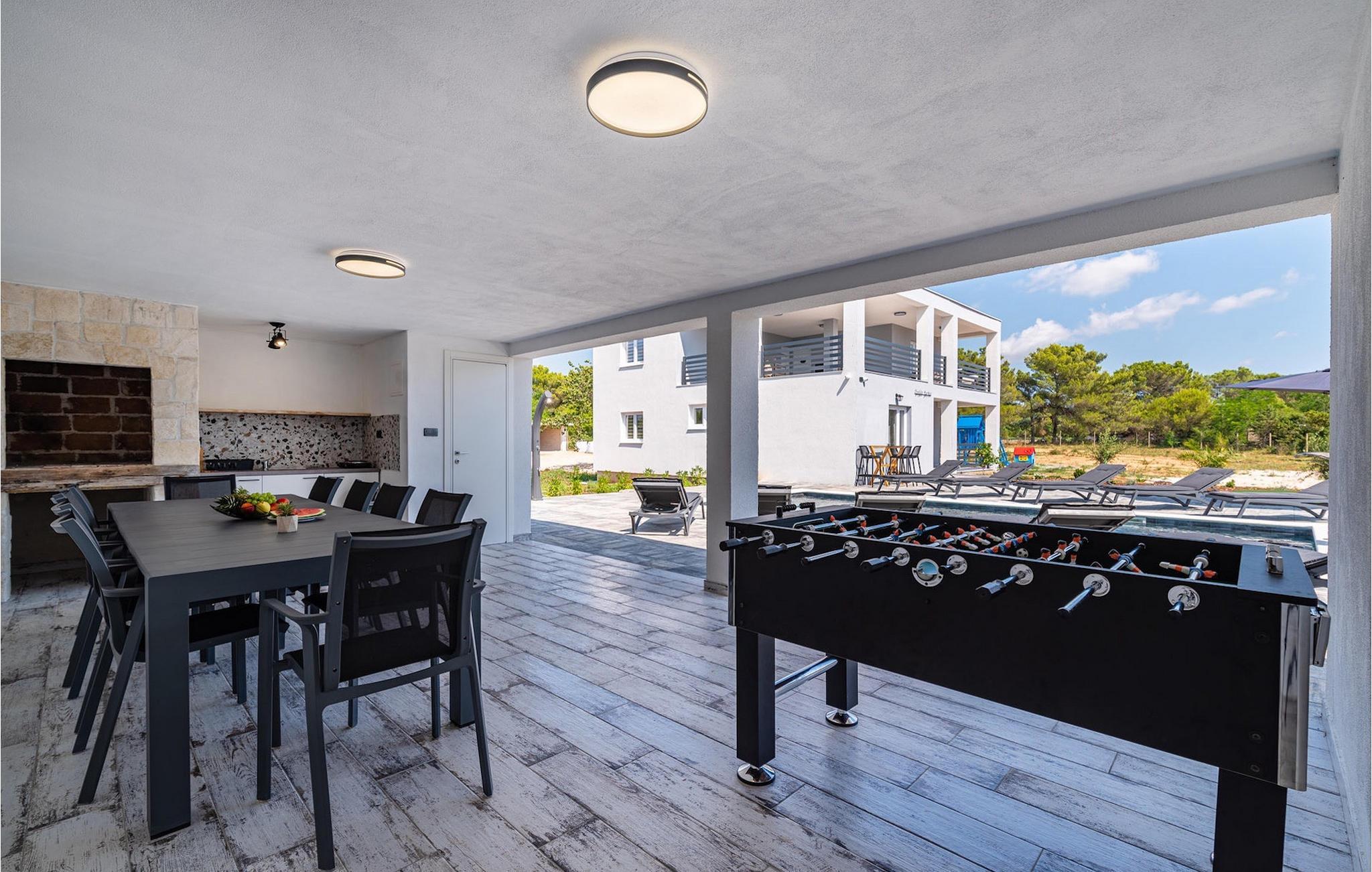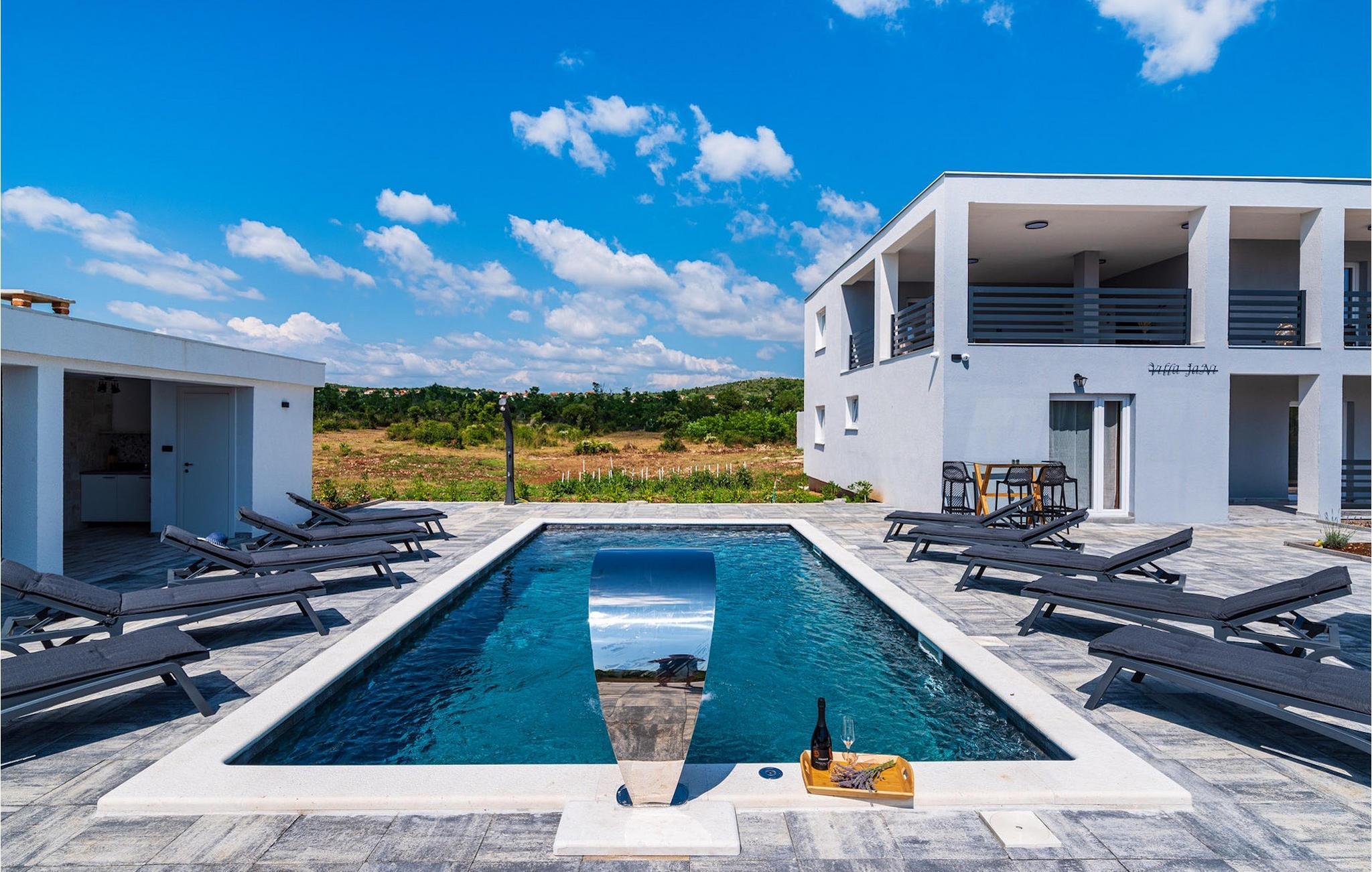 Den vakre Villa JaNi i Gornja Jagodnja er det ideelle valget for en perfekt ferie med familie og venner. Villaen er helt inngjerdet og tilbyr deg en fredelig ferie. Ta en forfriskning i det vakre bassenget på 32 m2, slapp av på solsengene ved bassenget og nyt den dalmatiske solen. Denne villaen tilbyr mange fasiliteter for hele familien. Ha det gøy med bordtennis og dart. Test styrken din på volleyballbanen. De yngste gjestene vil elske lekeplassen med sklie, husker og klatrestativ. Nyt tradisjonelle dalmatiske retter tilberedt på grillen i det overbygde området foran villaen. Villaens interiør er en ekte oase av fred og avslapning etter utendørsaktiviteter. Slapp av i badstuen i første etasje av villaen. I første etasje finner du også et åpent rom med et fullt utstyrt kjøkken med spisestue og en koselig stue for ettermiddagsmøter med dine kjære. Det er også to moderne designerbad og et separat toalett i første etasje. Villaen har 5 soverom. Soverommene gir den ønskede roen og avslapningen. Alle soverommene har klimaanlegg og TV. To soverom med dobbeltsenger ligger i villaens første etasje, mens de resterende tre soverommene med dobbeltsenger ligger i villaens andre etasje. Det er også to andre bad i første etasje. Tilbring morgenen med å våkne opp med en kaffe på terrassen i villaens første etasje. Ikke gå glipp av din drømmeferie med familien i Villa JaNi i Dalmatia Villa JaNi ligger i landsbyen Gornja Jagodnja, i nærheten av byene Benkovac og Biograd na moru. Landsbyen Gornja Jagodnja er en autentisk, pittoresk landsby på Ravnokotar-sletten, kjent for sin velutviklede bygdeturisme. Du vil bli fascinert av det gastronomiske tilbudet fra lokale husholdninger på landsbygda. Sentrum av denne fruktbare sletten ved den dalmatiske kysten er Benkovac. Historieelskere vil bli begeistret over Benkovac med sine kulturhistoriske severdigheter og arkeologiske funnsteder med gjenstander fra den neolittiske perioden. Nyt de tradisjonelle etniske festivalene eller Benkovac-markedet, og se etter håndlagde, autentiske produkter fra denne regionen i Dalmatia for å tilberede tradisjonelle retter på Villa JaNi. Gå ikke glipp av et besøk til Metrovi-familiens mausoleum, det lokale Benkovac-museet og byens bibliotek. Deretter kan du velge Biograd na moru som reisemål. Dette er en velkjent og populær sommerferieby med vakre sandstrender fulle av interessante aktiviteter. I denne dynamiske byen med to marinaer kan du seile, delta på festivaler, besøke en fornøyelsespark og nyte mange andre fasiliteter. Besøk turistsenteret Pakotana. I Pakotane kan du besøke kirkene St Justin, St Michael og St Termin. Besøk Vrana Lake Nature Park, den største naturlige innsjøen i Kroatia. Gå ikke glipp av å besøke mange øyer som Paman, Galesnjak og NP Kornati. På slutten av det dalmatiske eventyret er det uunngåelige reisemålet Zadar, Kroatias kulturelle og historiske vugge, kjent for kirken St Donata, St Stoija og St Maria, sjøorgelet og hilsenen til solen.