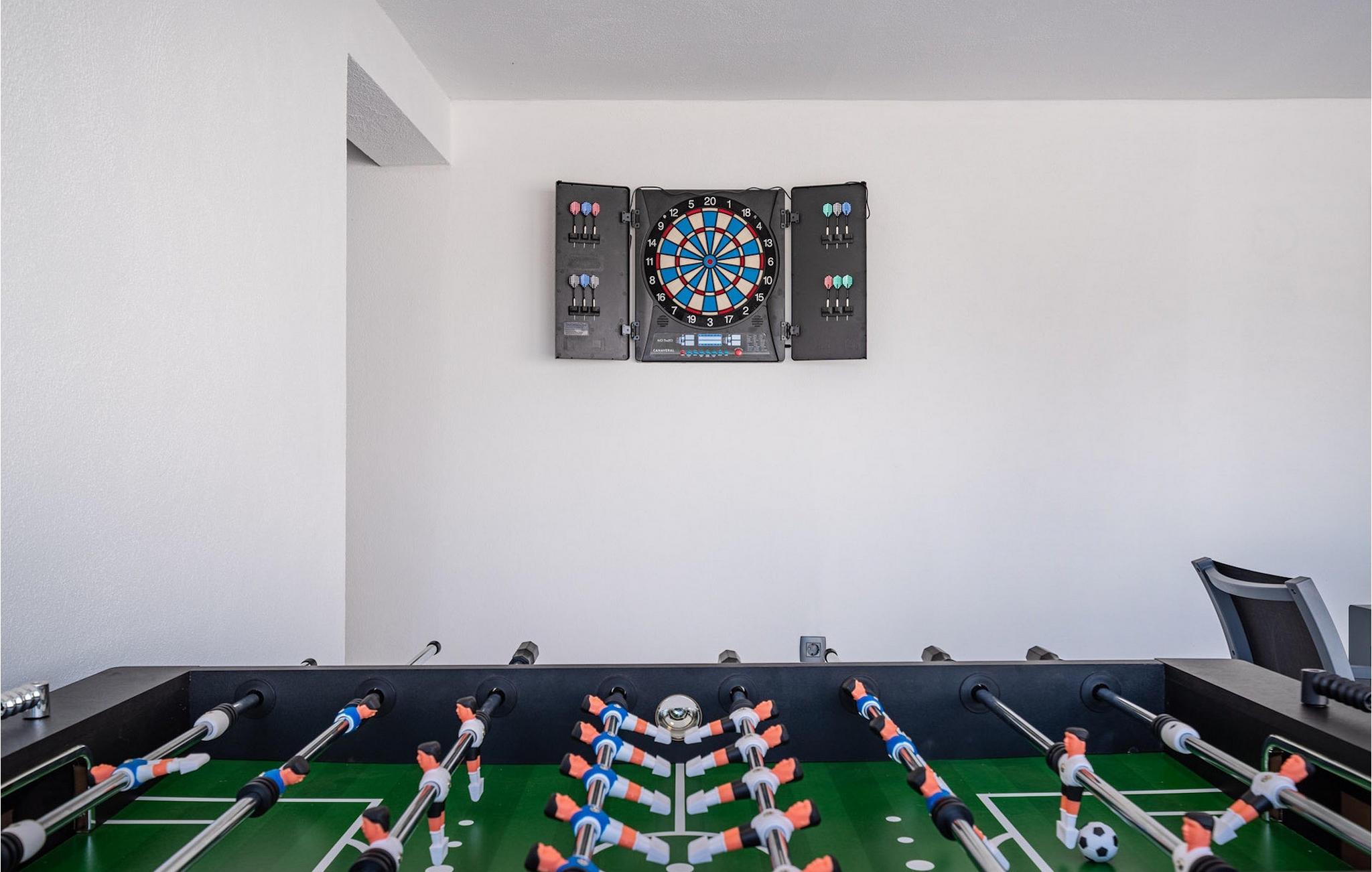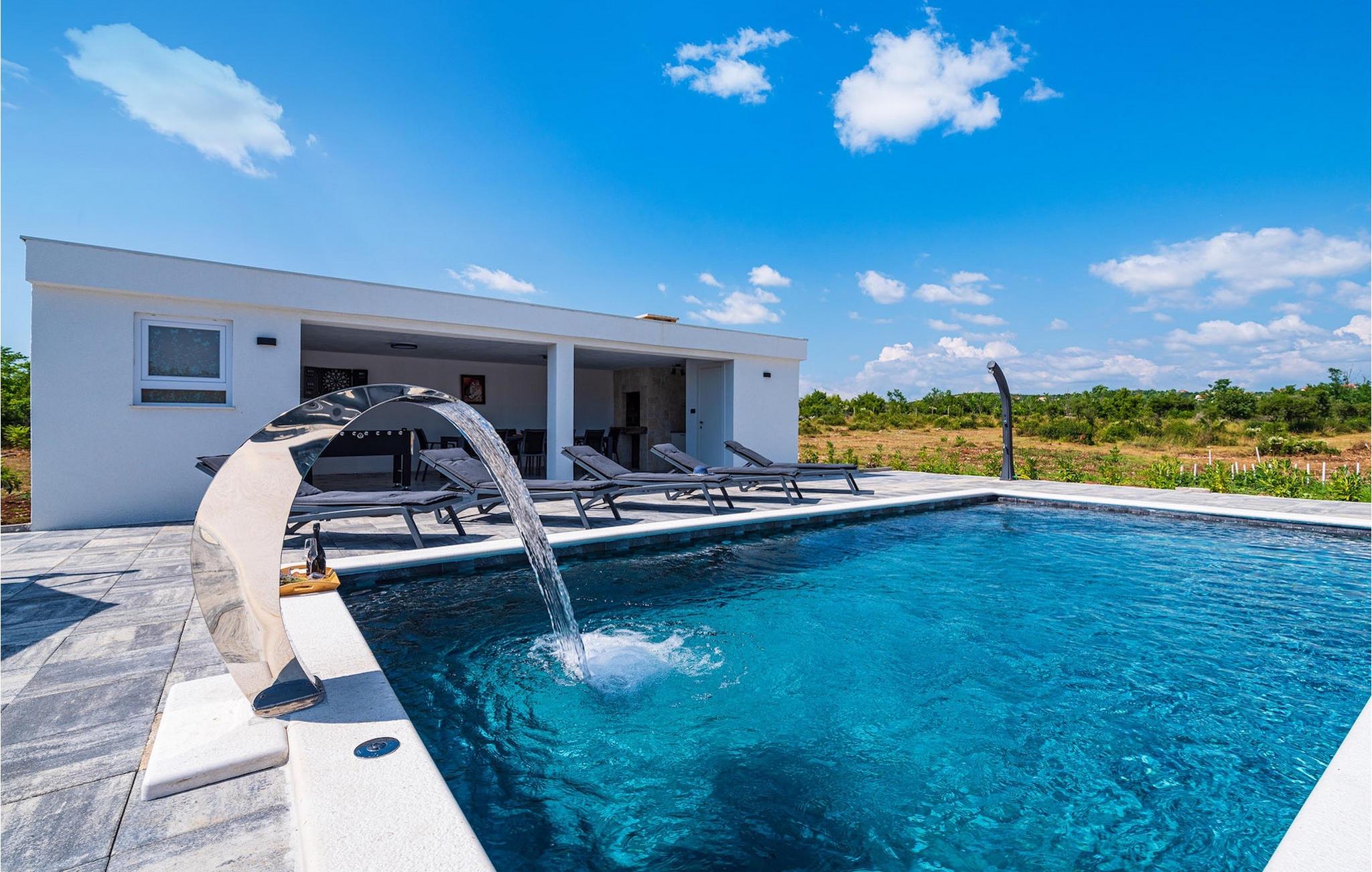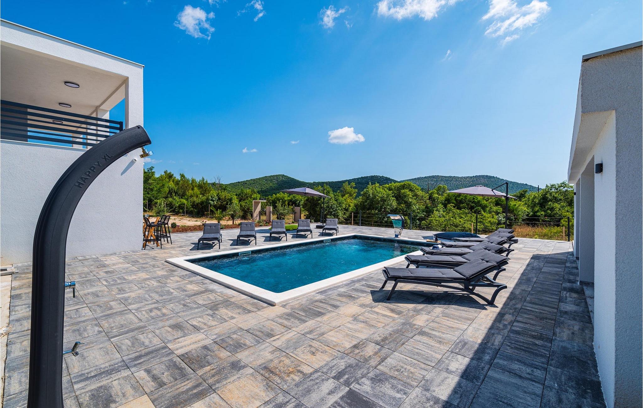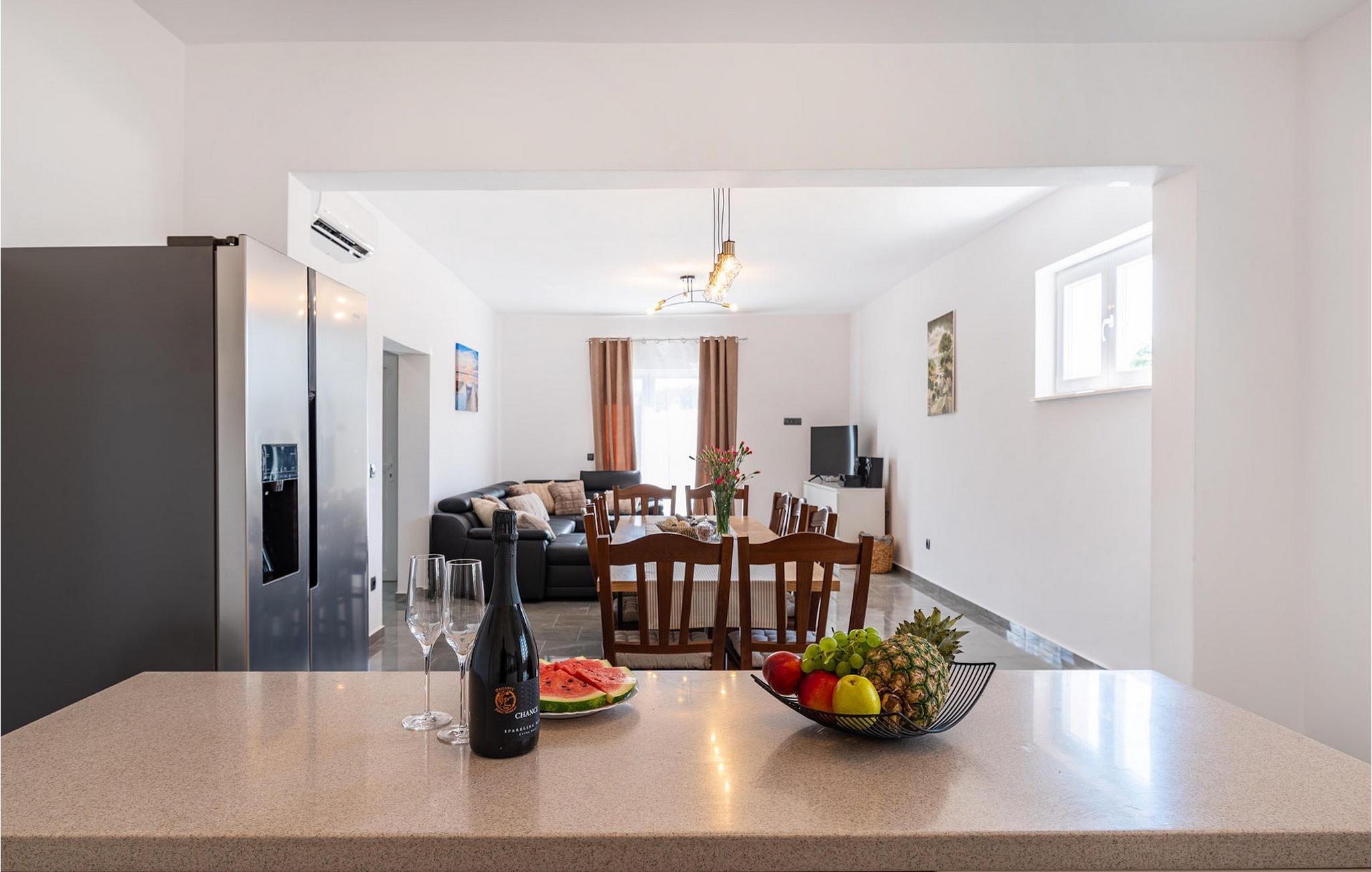 Den vakre Villa JaNi i Gornja Jagodnja er det ideelle valget for en perfekt ferie med familie og venner. Villaen er helt inngjerdet og tilbyr deg en fredelig ferie. Ta en forfriskning i det vakre bassenget på 32 m2, slapp av på solsengene ved bassenget og nyt den dalmatiske solen. Denne villaen tilbyr mange fasiliteter for hele familien. Ha det gøy med bordtennis og dart. Test styrken din på volleyballbanen. De yngste gjestene vil elske lekeplassen med sklie, husker og klatrestativ. Nyt tradisjonelle dalmatiske retter tilberedt på grillen i det overbygde området foran villaen. Villaens interiør er en ekte oase av fred og avslapning etter utendørsaktiviteter. Slapp av i badstuen i første etasje av villaen. I første etasje finner du også et åpent rom med et fullt utstyrt kjøkken med spisestue og en koselig stue for ettermiddagsmøter med dine kjære. Det er også to moderne designerbad og et separat toalett i første etasje. Villaen har 5 soverom. Soverommene gir den ønskede roen og avslapningen. Alle soverommene har klimaanlegg og TV. To soverom med dobbeltsenger ligger i villaens første etasje, mens de resterende tre soverommene med dobbeltsenger ligger i villaens andre etasje. Det er også to andre bad i første etasje. Tilbring morgenen med å våkne opp med en kaffe på terrassen i villaens første etasje. Ikke gå glipp av din drømmeferie med familien i Villa JaNi i Dalmatia Villa JaNi ligger i landsbyen Gornja Jagodnja, i nærheten av byene Benkovac og Biograd na moru. Landsbyen Gornja Jagodnja er en autentisk, pittoresk landsby på Ravnokotar-sletten, kjent for sin velutviklede bygdeturisme. Du vil bli fascinert av det gastronomiske tilbudet fra lokale husholdninger på landsbygda. Sentrum av denne fruktbare sletten ved den dalmatiske kysten er Benkovac. Historieelskere vil bli begeistret over Benkovac med sine kulturhistoriske severdigheter og arkeologiske funnsteder med gjenstander fra den neolittiske perioden. Nyt de tradisjonelle etniske festivalene eller Benkovac-markedet, og se etter håndlagde, autentiske produkter fra denne regionen i Dalmatia for å tilberede tradisjonelle retter på Villa JaNi. Gå ikke glipp av et besøk til Metrovi-familiens mausoleum, det lokale Benkovac-museet og byens bibliotek. Deretter kan du velge Biograd na moru som reisemål. Dette er en velkjent og populær sommerferieby med vakre sandstrender fulle av interessante aktiviteter. I denne dynamiske byen med to marinaer kan du seile, delta på festivaler, besøke en fornøyelsespark og nyte mange andre fasiliteter. Besøk turistsenteret Pakotana. I Pakotane kan du besøke kirkene St Justin, St Michael og St Termin. Besøk Vrana Lake Nature Park, den største naturlige innsjøen i Kroatia. Gå ikke glipp av å besøke mange øyer som Paman, Galesnjak og NP Kornati. På slutten av det dalmatiske eventyret er det uunngåelige reisemålet Zadar, Kroatias kulturelle og historiske vugge, kjent for kirken St Donata, St Stoija og St Maria, sjøorgelet og hilsenen til solen.