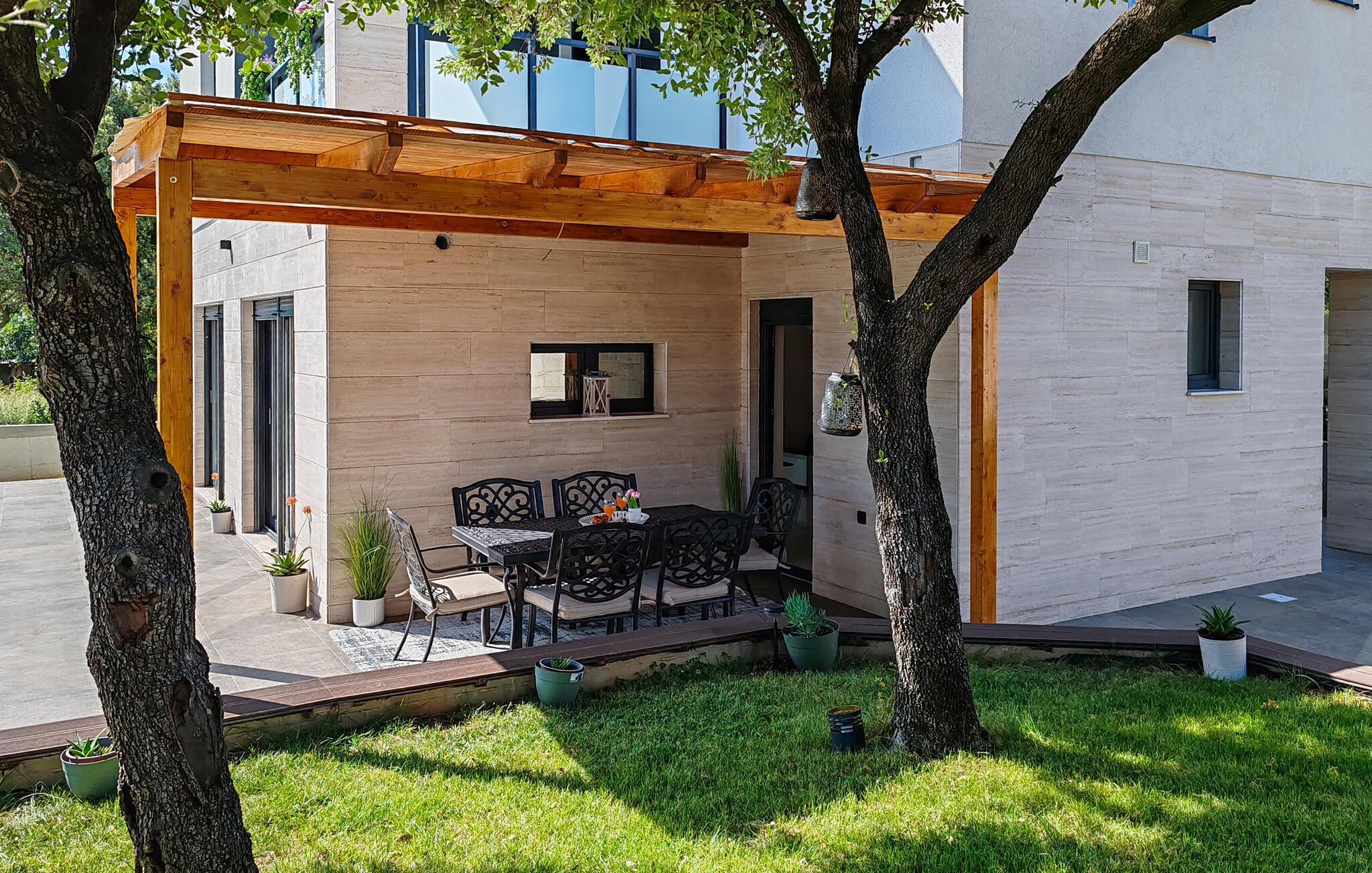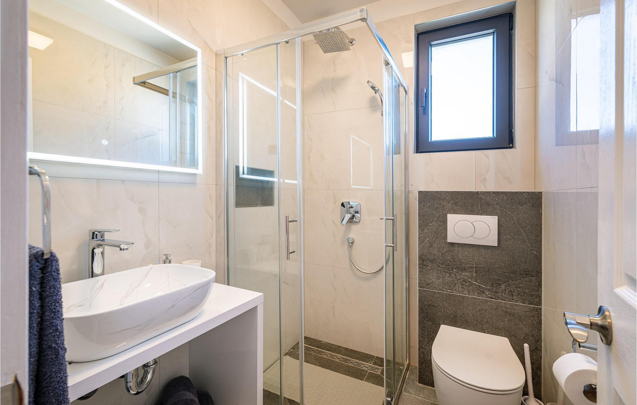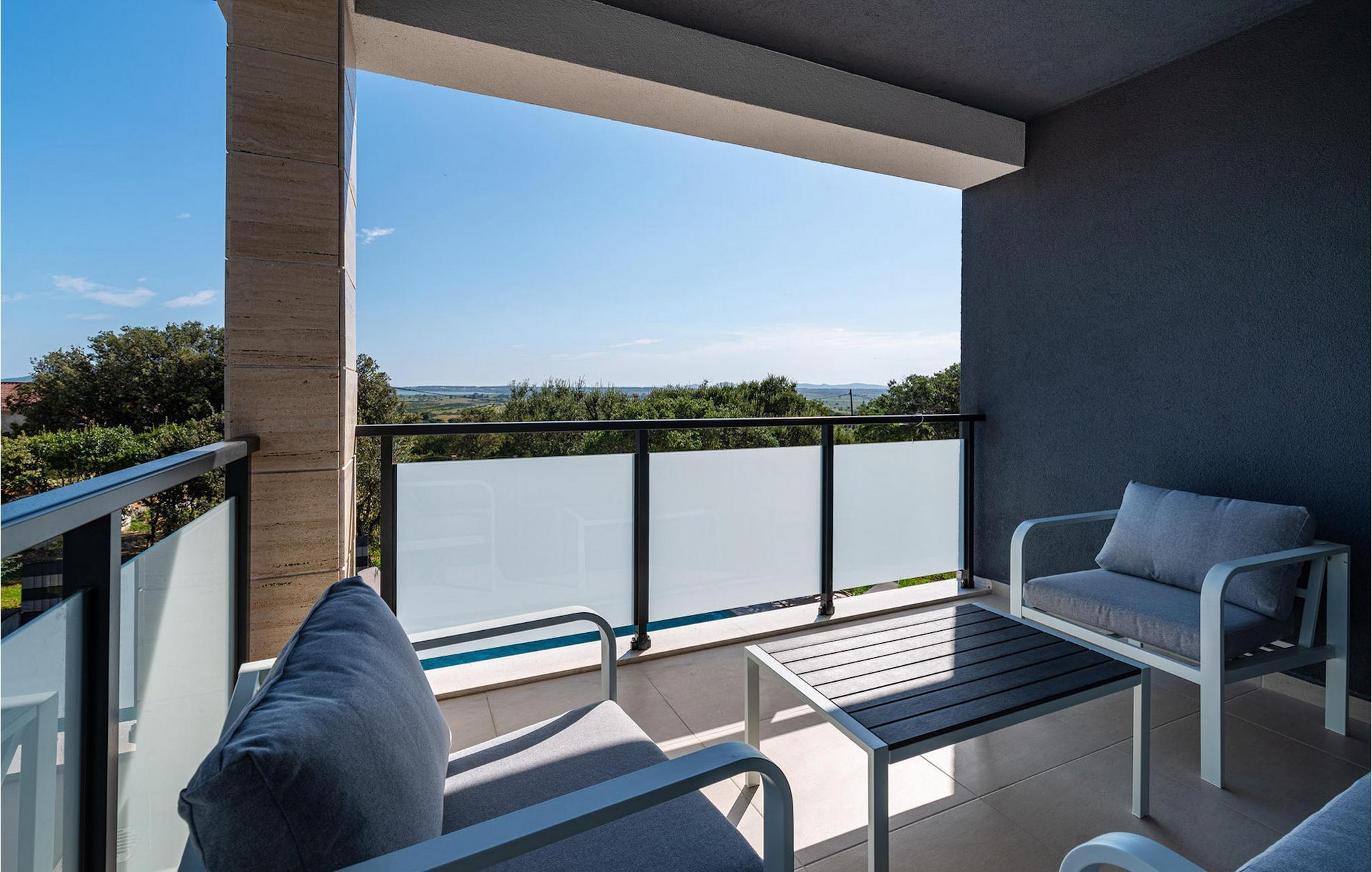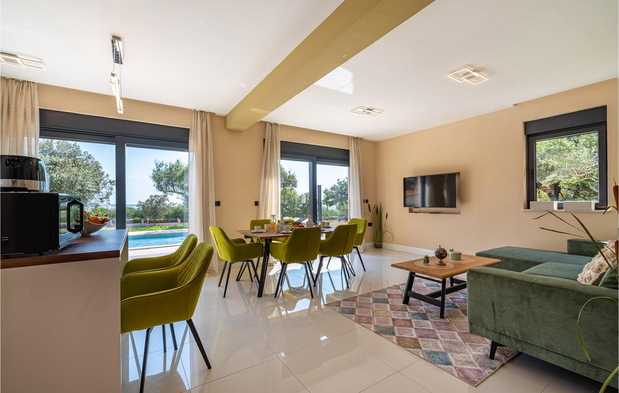 Villa Krstina ønsker deg velkommen til en vakker hage med en grønn plen der barna kan boltre seg før de hopper i det forfriskende private bassenget. Rundt bassenget kan du nyte solen på 6 solsenger. Flere trær sørger for skyggefulle steder på plenen der du kan slappe av. Ved siden av villaen står et spisebord for opptil 6 personer, perfekt for en herlig lunsj i det fri med utsikt over det glitrende bassenget. Inne i villaen flommer stuen med TV over av naturlig lys, og det samme gjør kjøkkenet og spisestuen i samme rom, takket være de store terrassedørene. Spiseplassen for opptil 8 personer ligger rett ved siden av en av de store glassdørene og har utsikt over gårdsplassen. Et av badene ligger også i første etasje. I andre etasje er det tre komfortable soverom med dobbeltseng og ytterligere to bad. Balkongen med egen sittegruppe er perfekt for å nyte morgenkaffen eller se på solnedgangen sammen. Villa Krstina er et godt valg for en morsom familieferie i Dalmatia. Villa Krstina ligger i Vrana, 7 km fra stranden og bare 1 km fra nærmeste butikk, restaurant og kafé. I naturparken Vrana Lake Nature Park kan du gå turer i den vakre naturen. Det finnes 95 lovbeskyttede arter i parkområdet. Det gamle sentrum av Vrana ble bygget i middelalderen i umiddelbar nærhet av innsjøen. Bare 8 kilometer fra villaen kan du besøke et morsomt badeland for deg og barna dine. Byen Zadar, ca. 45 minutter unna, er et fantastisk reisemål for en dagstur med familien. Byen er kjent for sine romerske og venetianske ruiner. Det finnes flere venetianske porter i bymuren. Du kan besøke en rekke kirker fra ulike århundrer og beundre kunsten og arkitekturen. En unik attraksjon som du ikke må gå glipp av, og som Zadar er kjent for, er Havorgelet. Denne strukturen består av trappetrinn langs kysten som spiller en melodi avhengig av hvordan bølgene treffer dem. En av de nyeste attraksjonene i byen er glassmuseet. Det inneholder en av de beste samlingene av romersk glass utenfor Italia, med blant annet beger, kanner og kolber fra arkeologiske funnsteder i Dalmatia.
