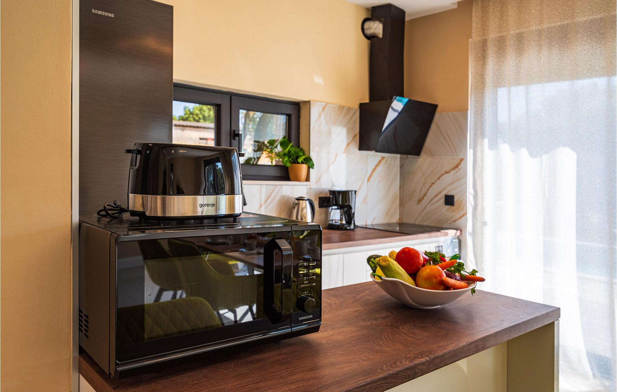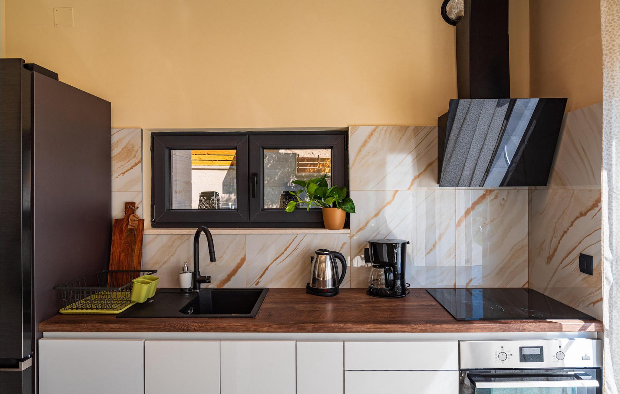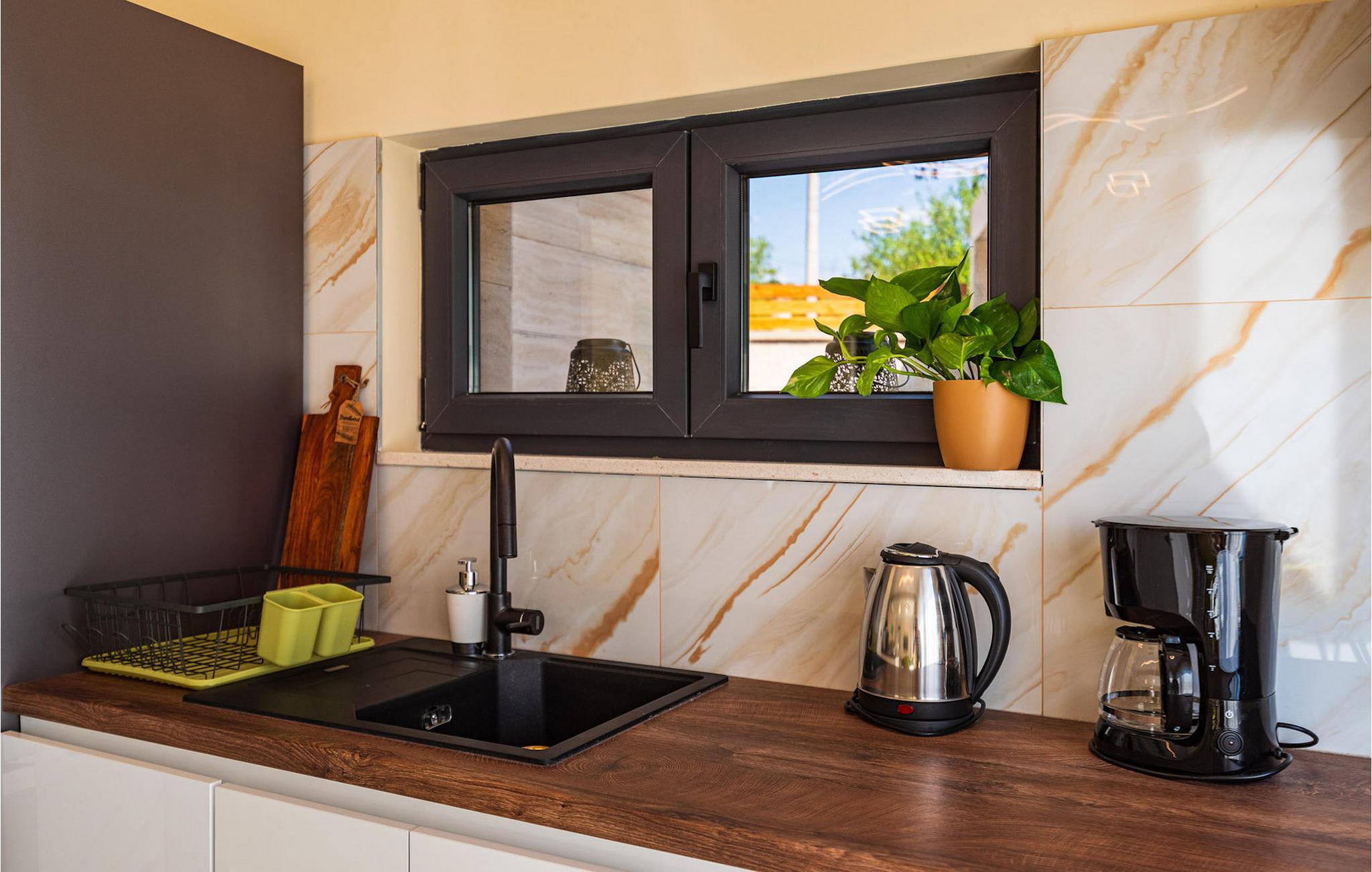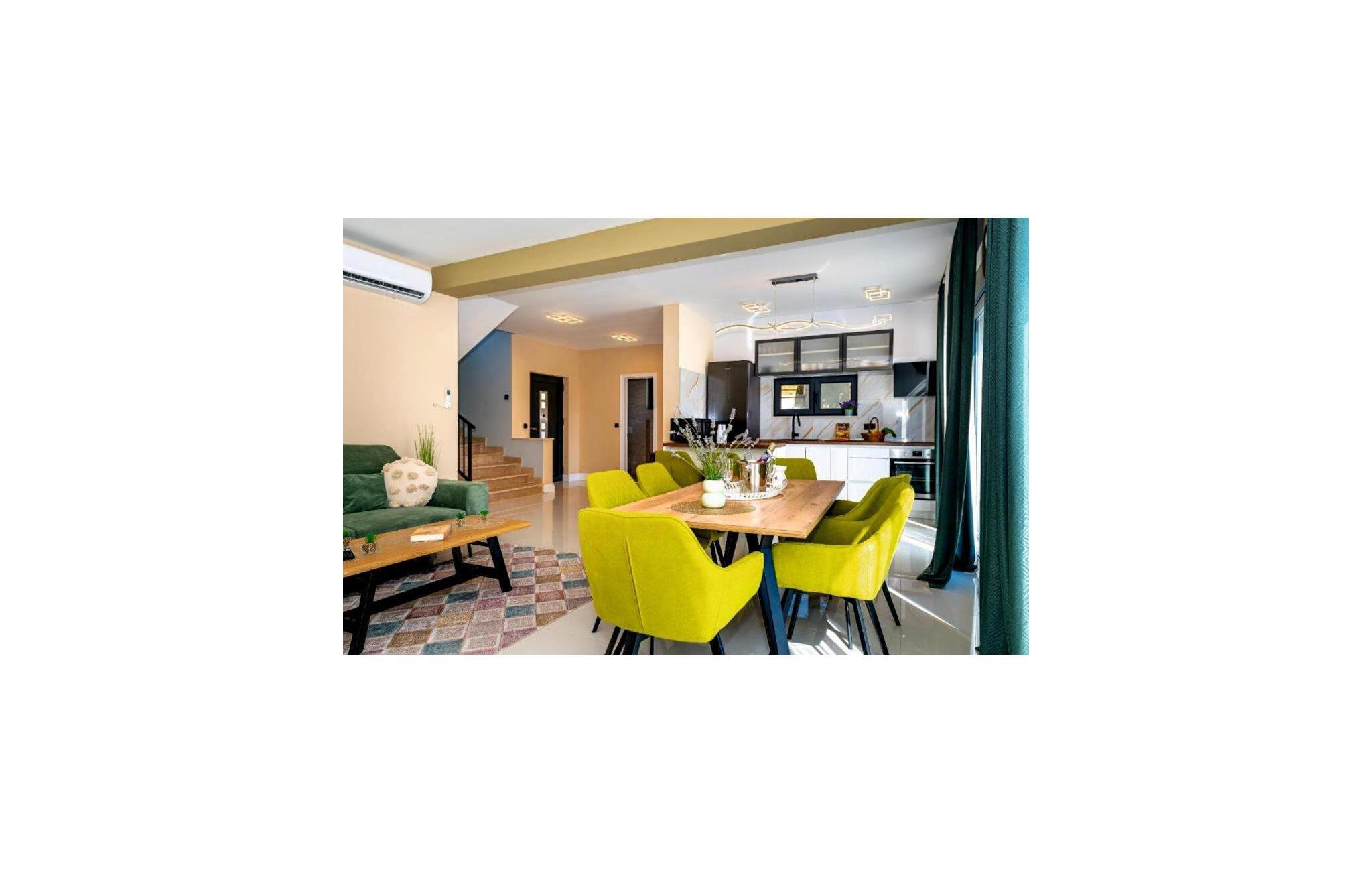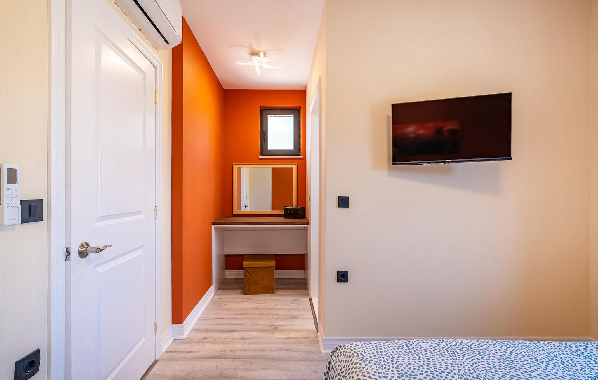 Villa Krstina ønsker deg velkommen til en vakker hage med en grønn plen der barna kan boltre seg før de hopper i det forfriskende private bassenget. Rundt bassenget kan du nyte solen på 6 solsenger. Flere trær sørger for skyggefulle steder på plenen der du kan slappe av. Ved siden av villaen står et spisebord for opptil 6 personer, perfekt for en herlig lunsj i det fri med utsikt over det glitrende bassenget. Inne i villaen flommer stuen med TV over av naturlig lys, og det samme gjør kjøkkenet og spisestuen i samme rom, takket være de store terrassedørene. Spiseplassen for opptil 8 personer ligger rett ved siden av en av de store glassdørene og har utsikt over gårdsplassen. Et av badene ligger også i første etasje. I andre etasje er det tre komfortable soverom med dobbeltseng og ytterligere to bad. Balkongen med egen sittegruppe er perfekt for å nyte morgenkaffen eller se på solnedgangen sammen. Villa Krstina er et godt valg for en morsom familieferie i Dalmatia. Villa Krstina ligger i Vrana, 7 km fra stranden og bare 1 km fra nærmeste butikk, restaurant og kafé. I naturparken Vrana Lake Nature Park kan du gå turer i den vakre naturen. Det finnes 95 lovbeskyttede arter i parkområdet. Det gamle sentrum av Vrana ble bygget i middelalderen i umiddelbar nærhet av innsjøen. Bare 8 kilometer fra villaen kan du besøke et morsomt badeland for deg og barna dine. Byen Zadar, ca. 45 minutter unna, er et fantastisk reisemål for en dagstur med familien. Byen er kjent for sine romerske og venetianske ruiner. Det finnes flere venetianske porter i bymuren. Du kan besøke en rekke kirker fra ulike århundrer og beundre kunsten og arkitekturen. En unik attraksjon som du ikke må gå glipp av, og som Zadar er kjent for, er Havorgelet. Denne strukturen består av trappetrinn langs kysten som spiller en melodi avhengig av hvordan bølgene treffer dem. En av de nyeste attraksjonene i byen er glassmuseet. Det inneholder en av de beste samlingene av romersk glass utenfor Italia, med blant annet beger, kanner og kolber fra arkeologiske funnsteder i Dalmatia.