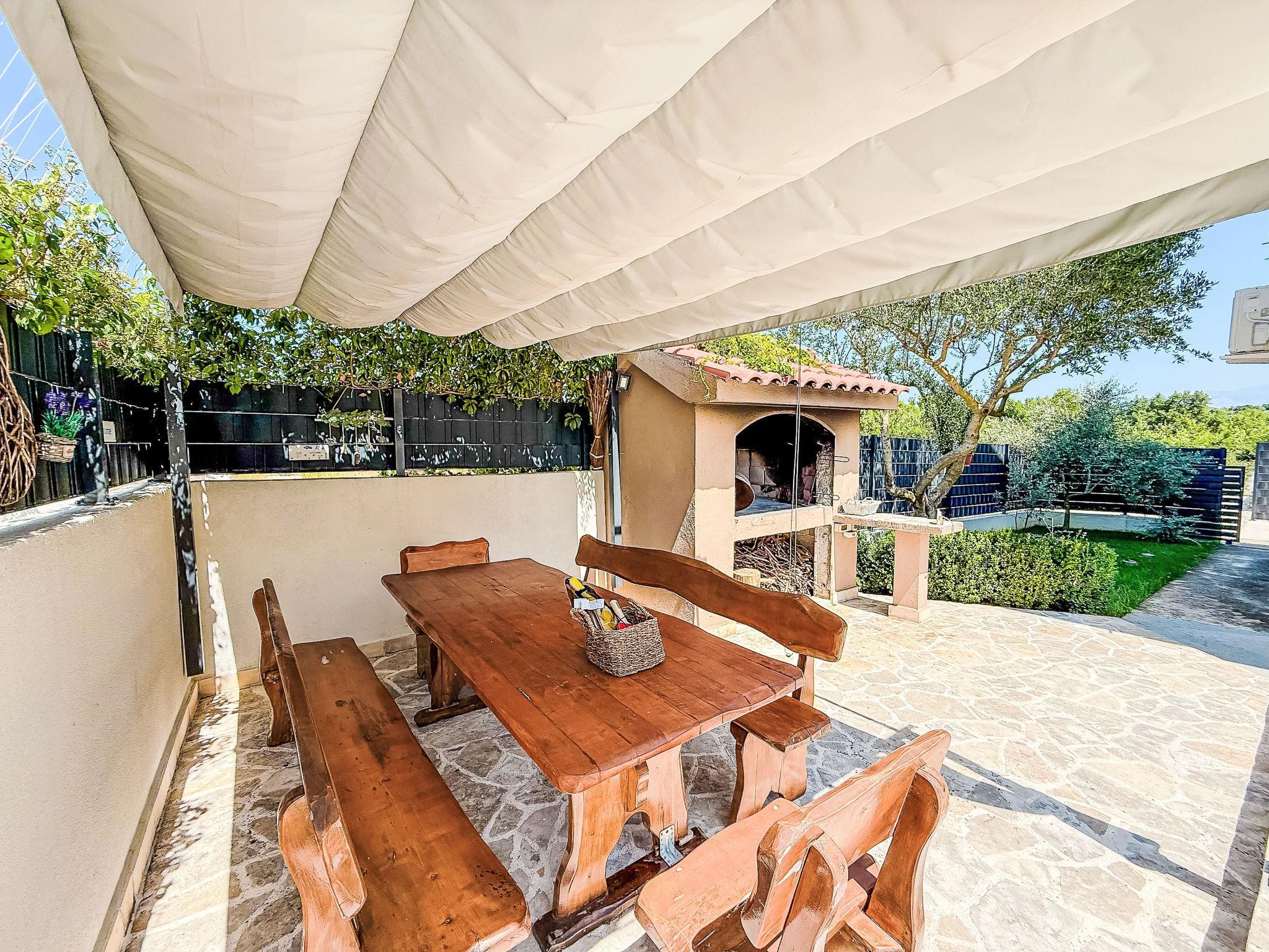 6-room house 150 m2 on 3 levels, south-west facing position. Living/dining room 37 m2 with satellite TV (flat screen), air conditioning. Exit to the terrace. Open kitchen (oven, dishwasher, 4 ceramic glass hob hotplates, microwave, freezer, electric coffee machine). Sep. WC. On the lower ground floor: 2 rooms, each room with 2 beds (90 cm, length 200 cm), air conditioning. 2 showers/WC. Upper floor: 1 room with 1 french bed (160 cm, length 200 cm), air conditioning. 1 room with 1 french bed (160 cm, length 200 cm), air conditioning. Exit to the terrace. 1 room with 1 french bed (180 cm, length 200 cm), air conditioning. Exit to the terrace. Bath/shower/WC. No heating option. 2 terraces 9 m2, covered. Terrace furniture, deck chairs. View of the swimming pool. Facilities: hair dryer. Internet (WiFi, free). 1 small pet/ dog allowed.